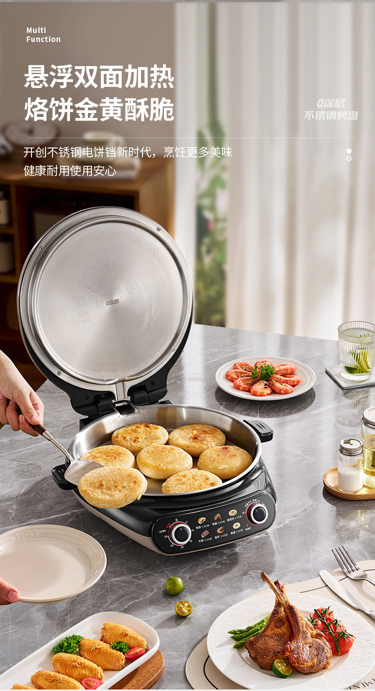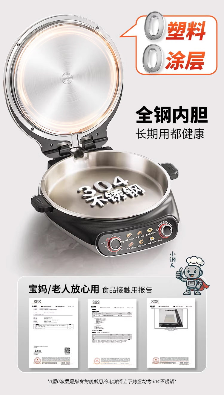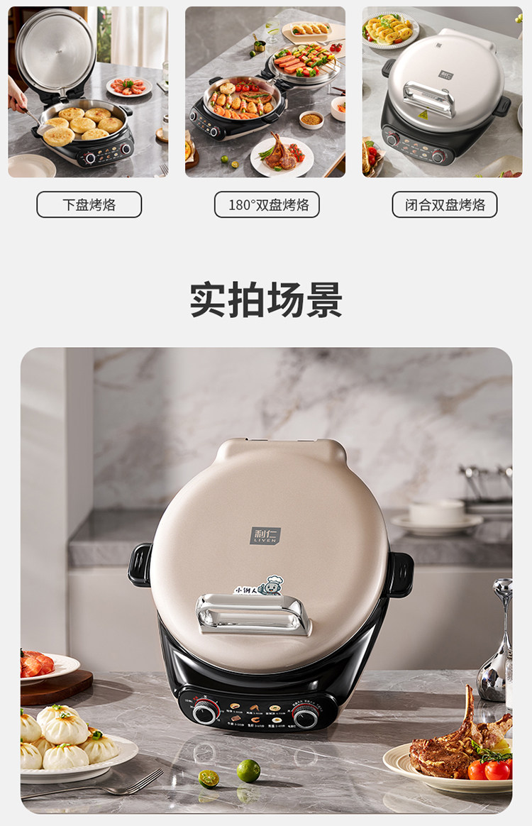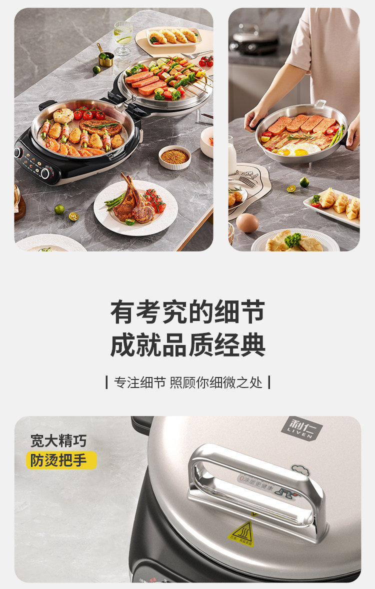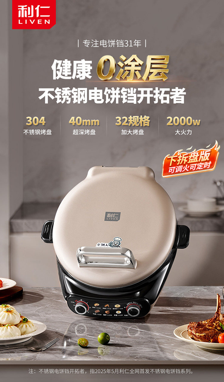 Liren Xiaogangren Stainless Steel Electric Pancake Pan, 0-Coating, Household Double-Sided Heating Pancake and Flatbread Pan, Detachable and Washable, New Model