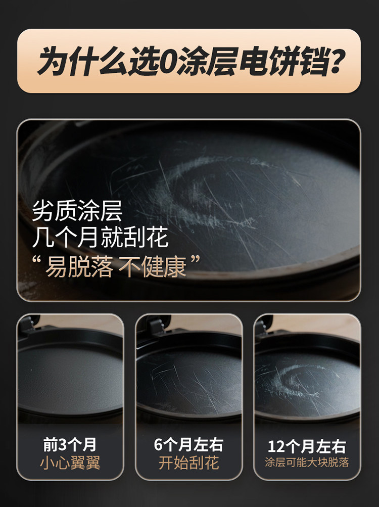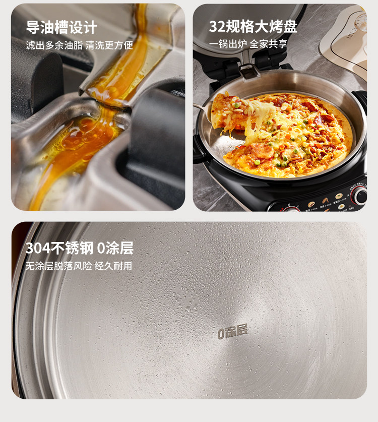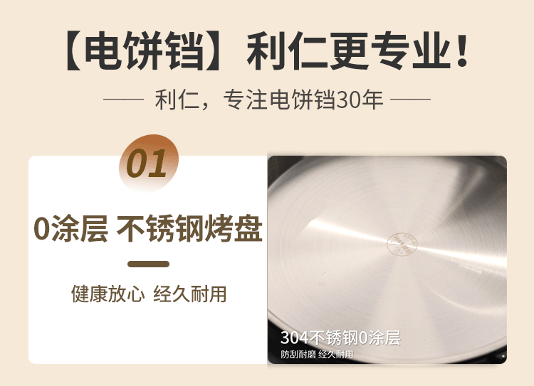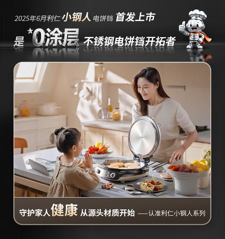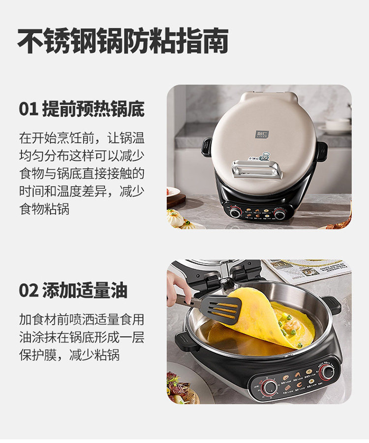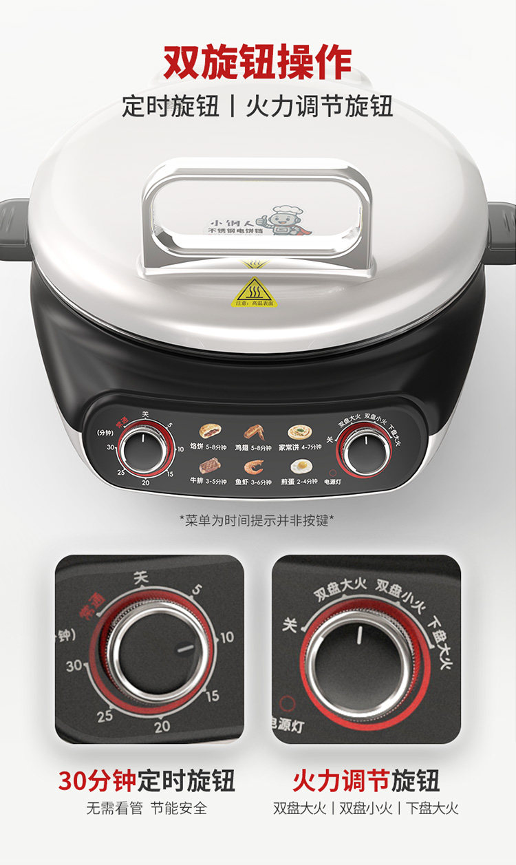 Liren Xiaogangren Stainless Steel Electric Pancake Pan, 0-Coating, Household Double-Sided Heating Pancake and Flatbread Pan, Detachable and Washable, New Model