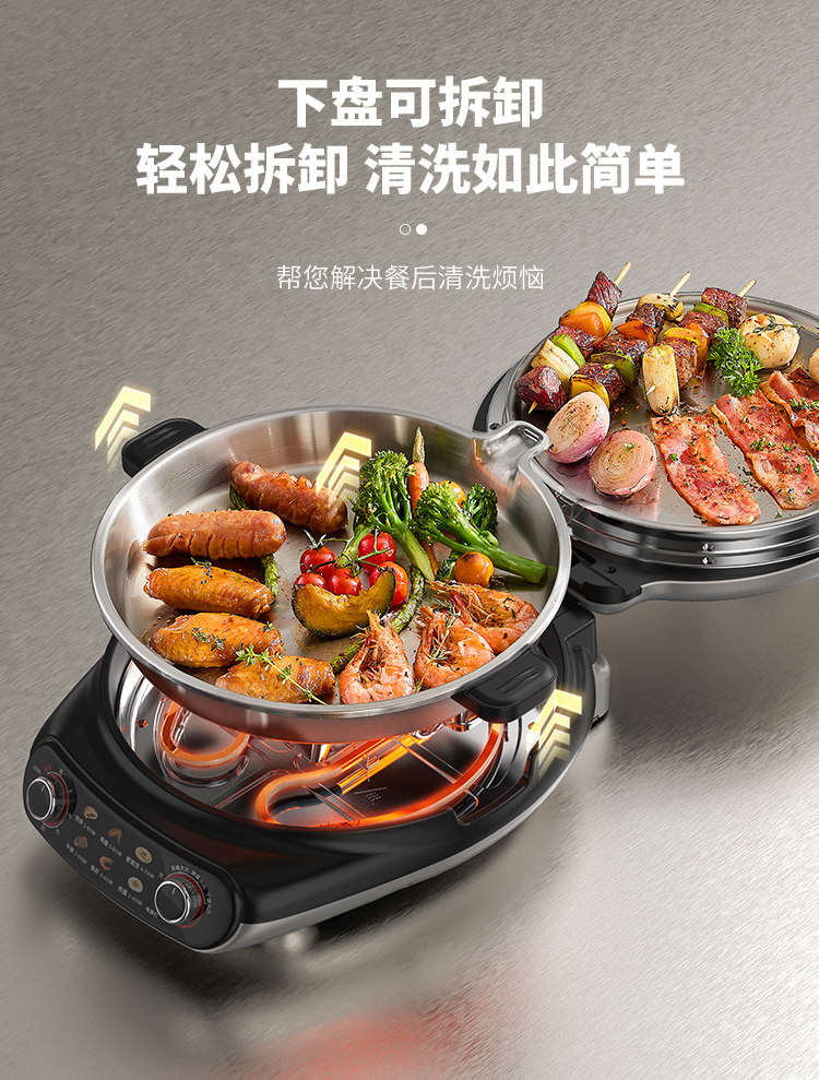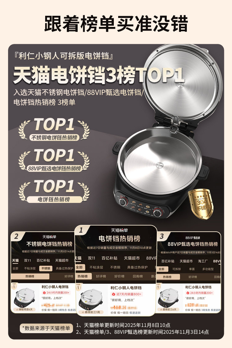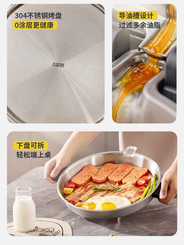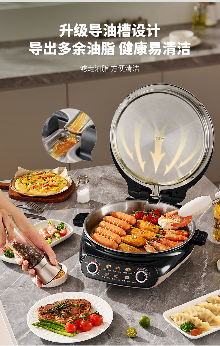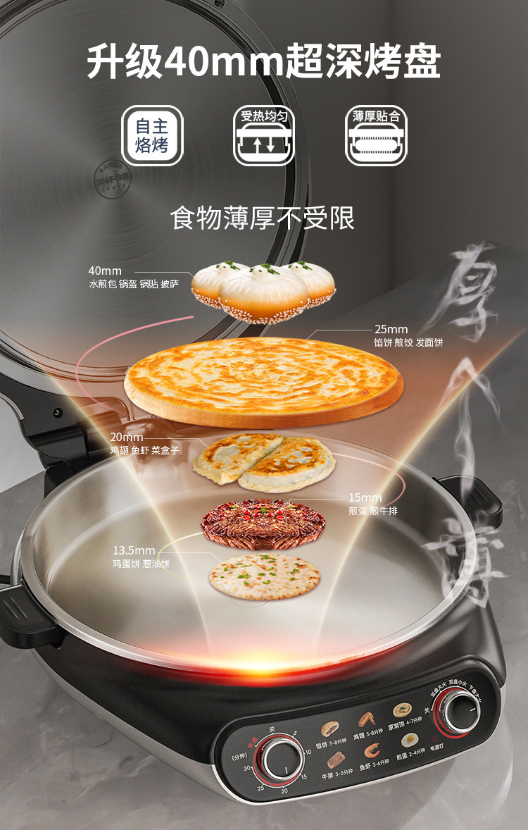 Liren Xiaogangren Stainless Steel Electric Pancake Pan, 0-Coating, Household Double-Sided Heating Pancake and Flatbread Pan, Detachable and Washable, New Model