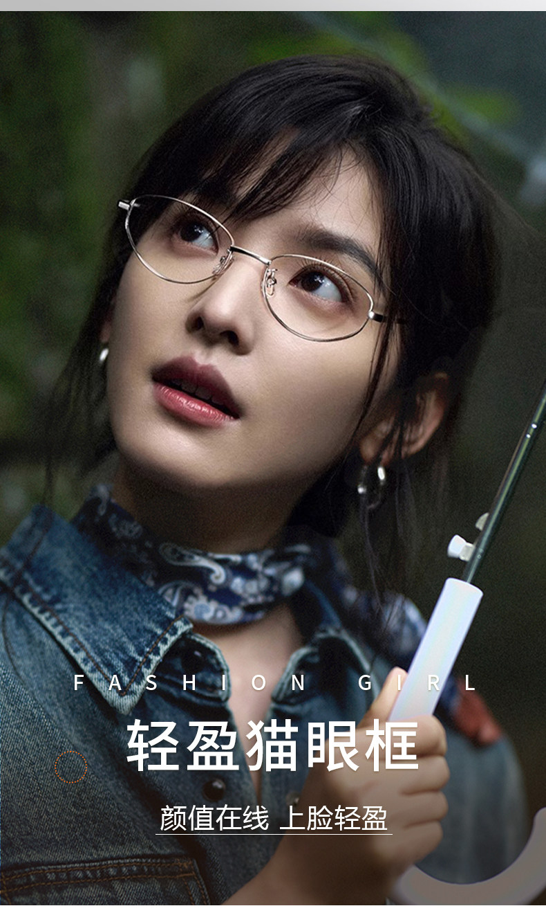 Zhang Ruonan's Same Style Ultra-Light Titanium Cat-Eye Glasses for Women with Myopia, Can Be Customized with High Prescription, Suitable for Nerdy Style Without Makeup
