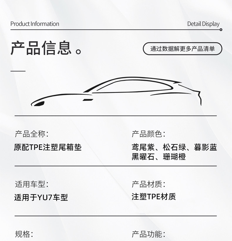 | Model | Suitable for Yu7 Injection Molded Tpe Trunk Mat |