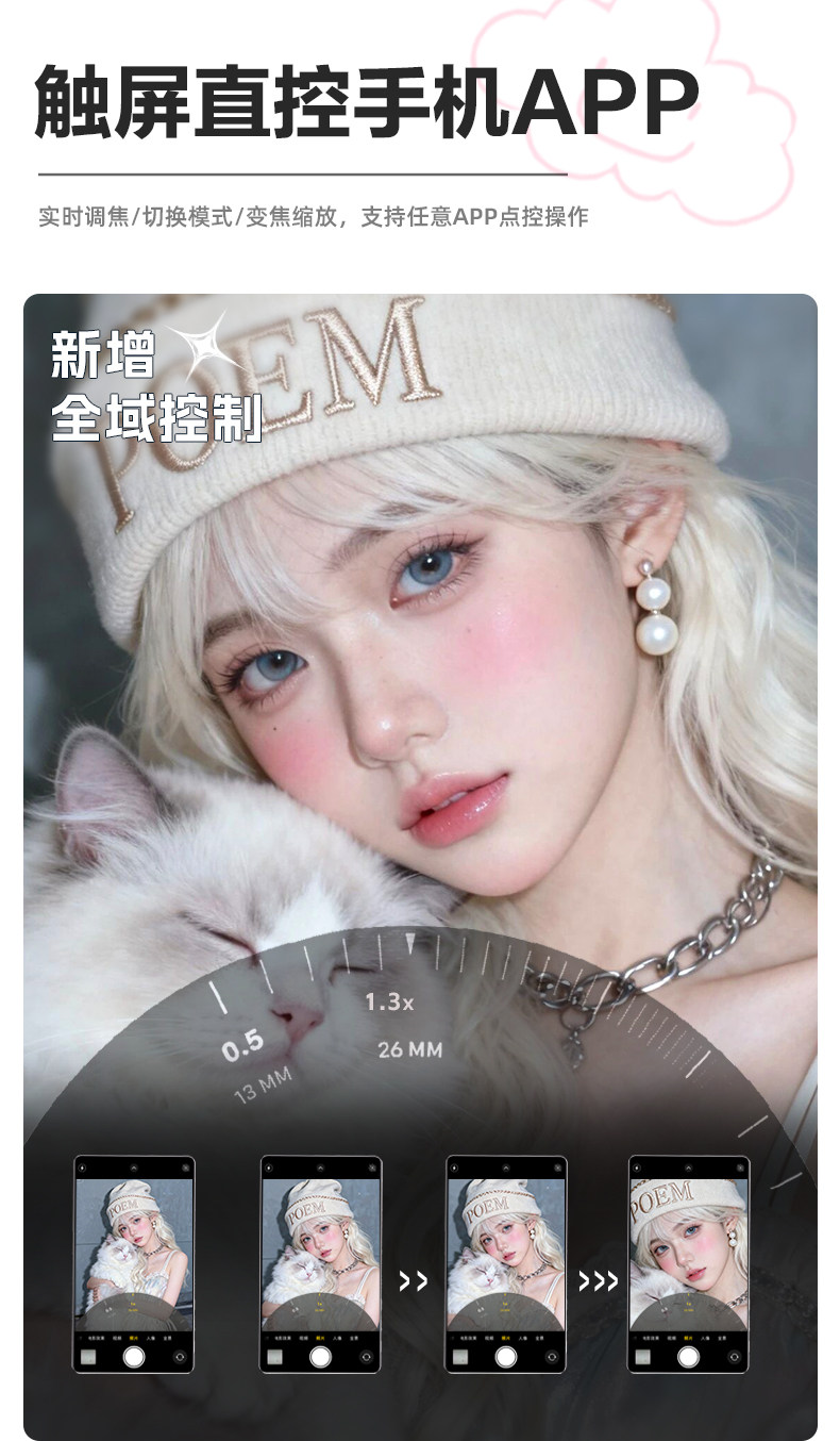 Shimbol P4 Mobile Phone Rear Magnetic Selfie Display Auxiliary Shooting Touch Screen Zoom Photo Taking Screen Mirroring Device Compatible with Apple and Android Selfie Gadget
