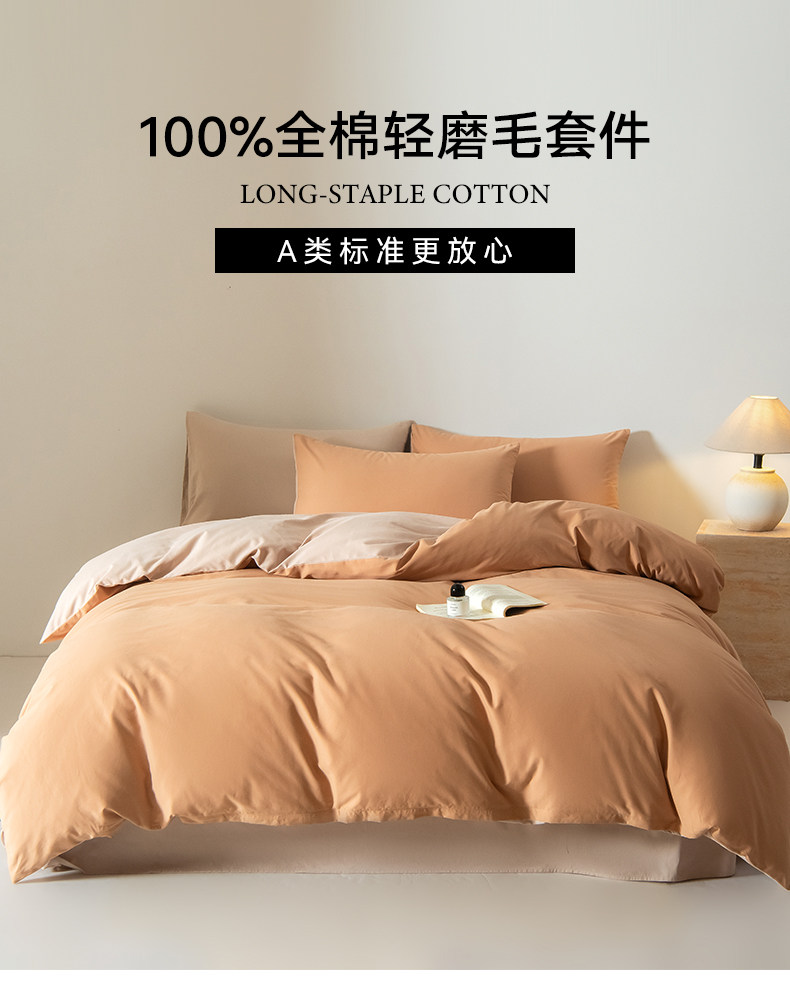 Thickened 100-Count Long-Staple Cotton Brushed Four-Piece Set, Pure Cotton Bed Sheet and Duvet Cover, New Autumn and Winter Bedding Three-Piece Set 4
