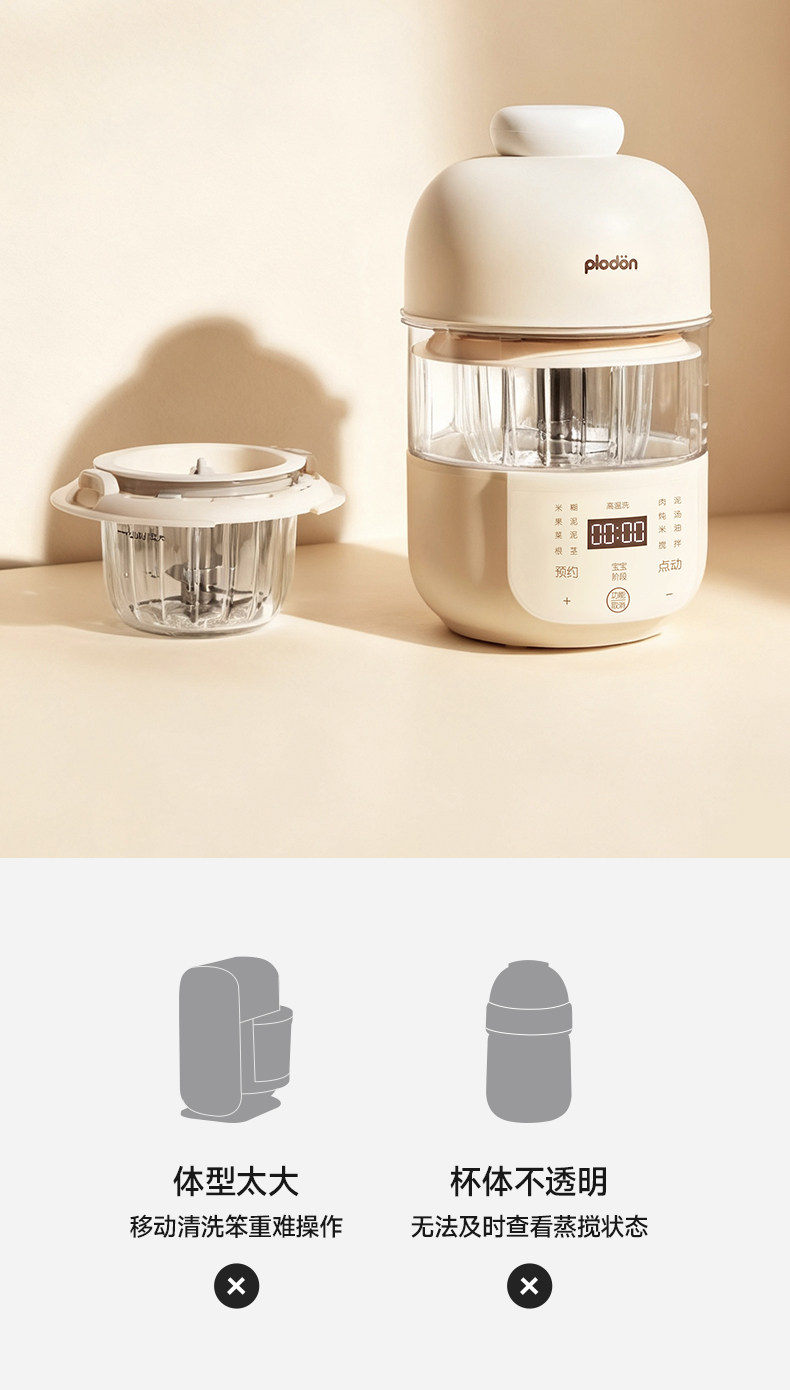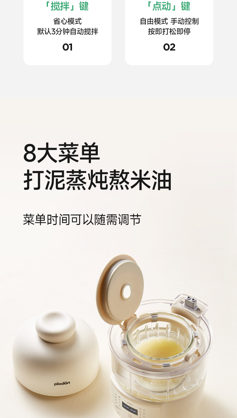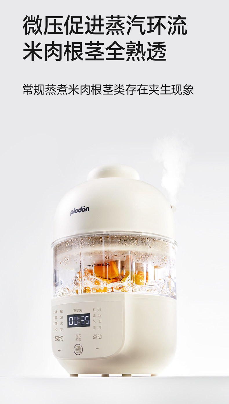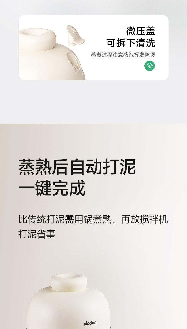 Plodon Multi-Function Food Processor for Baby Food, Automatic Blending and Cooking, Small Rice Paste Machine