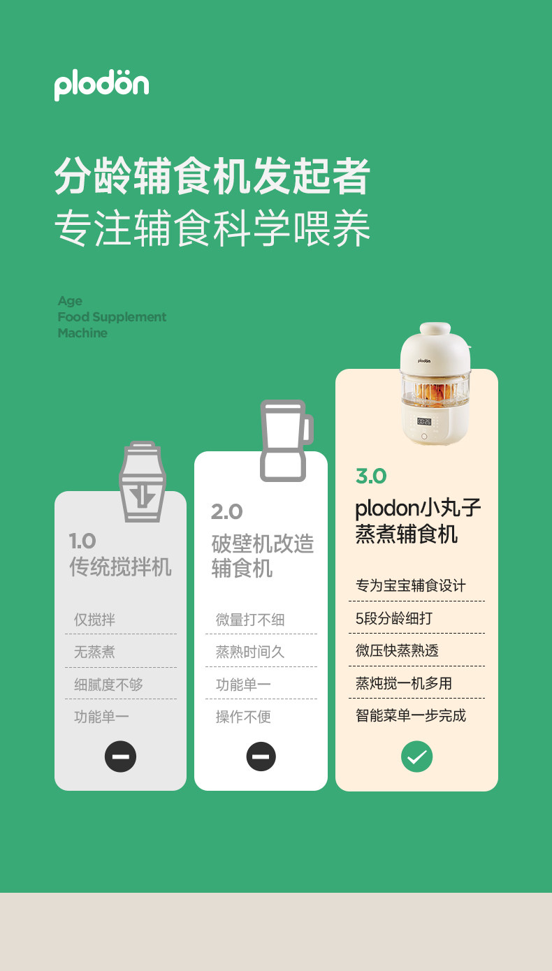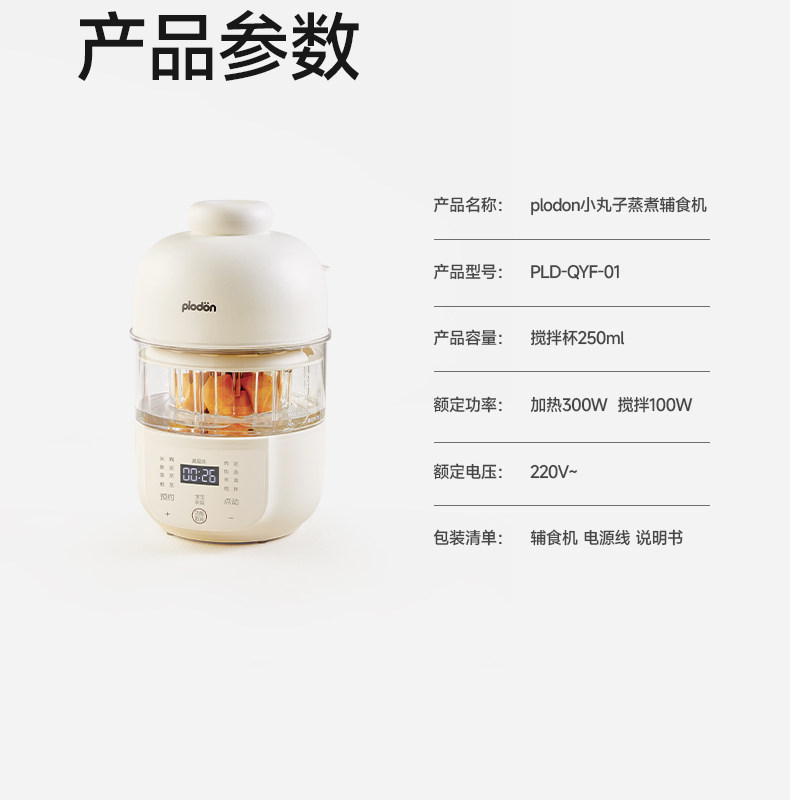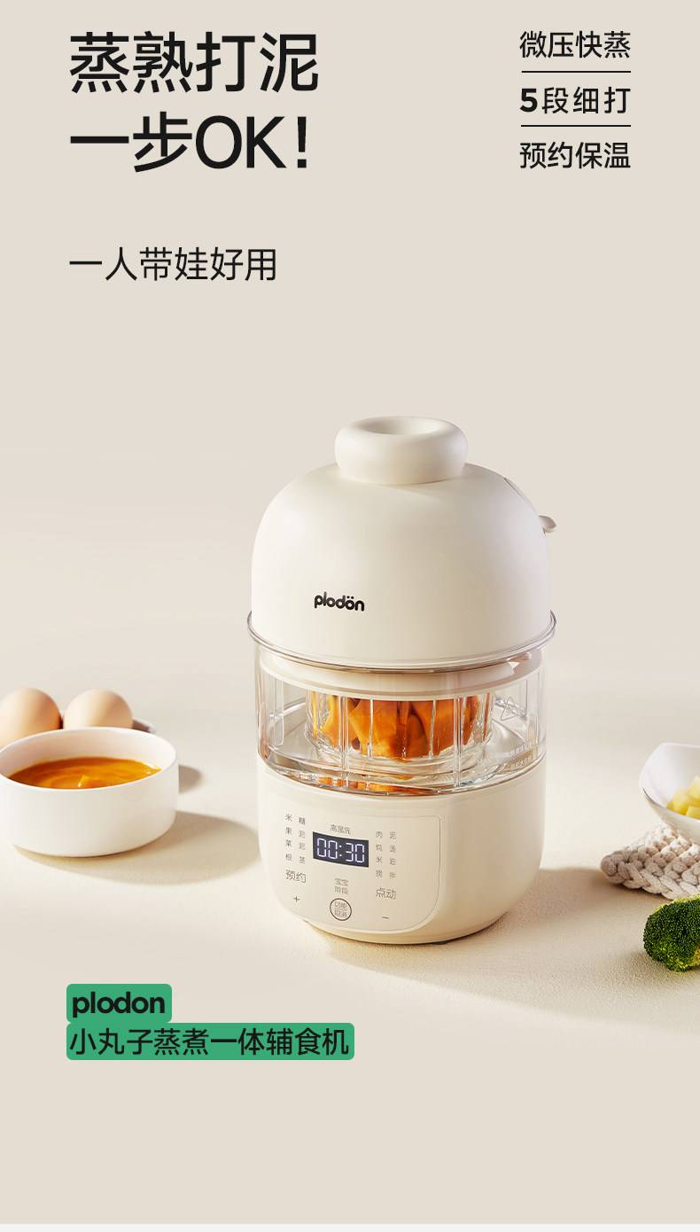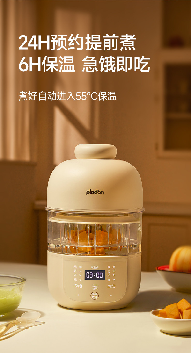 Plodon Multi-Function Food Processor for Baby Food, Automatic Blending and Cooking, Small Rice Paste Machine