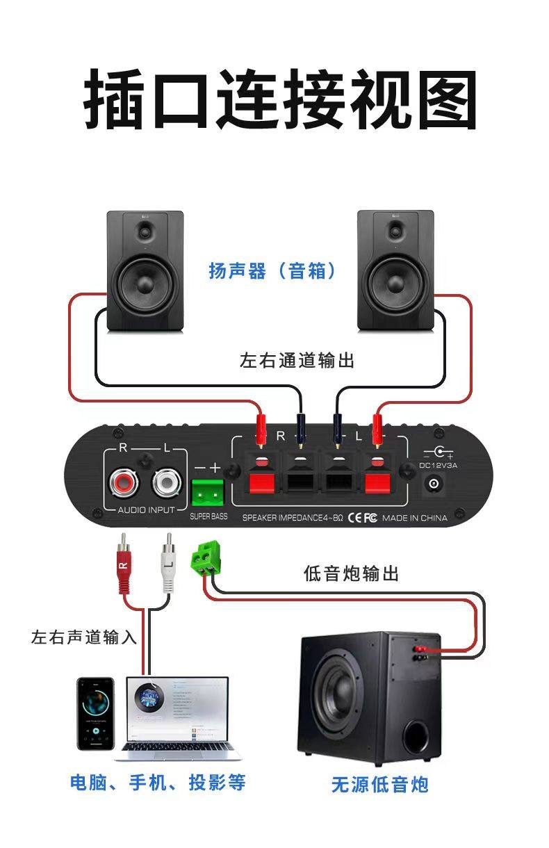 | Color Classification | Left and Right Channels + Subwoofer, No Bluetooth, 12V3A Power Supply,Left and Right Channels + Subwoofer + Bluetooth 12V3A Power Supply,Left and Right Channels + Subwoofer + Bluetooth 12V5A Power Supply,Mini Bluetooth Amplifier, Subwoofer-Free, 12V 2A Power Supply,USB Bluetooth Radio All-In-One Amplifier,12V-24V Power Amplifier Module + Bluetooth + Subwoofer |
