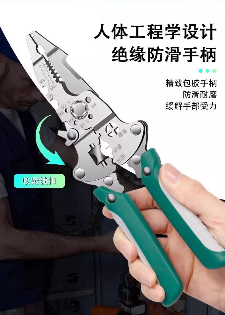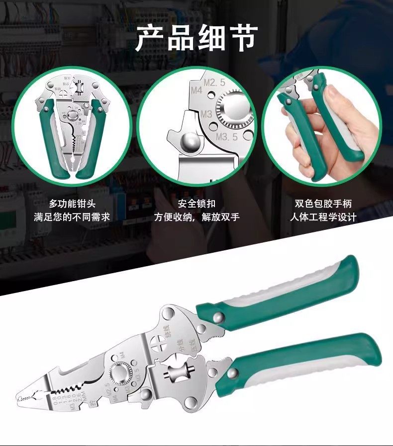 Multifunctional Wire Stripper, Wire Cutter, Wire Splitter, Wire Breaker, Stripping Pliers, Scissors, Foldable Electrician's Special Tool