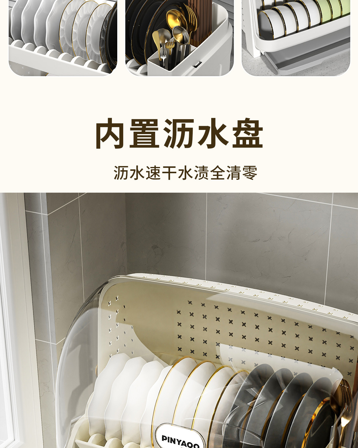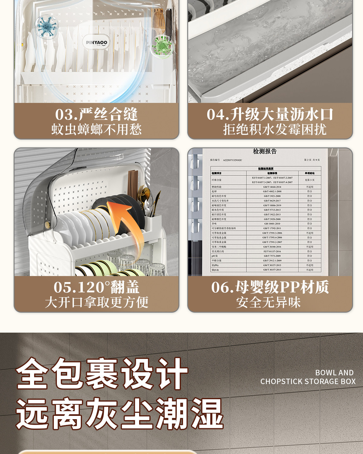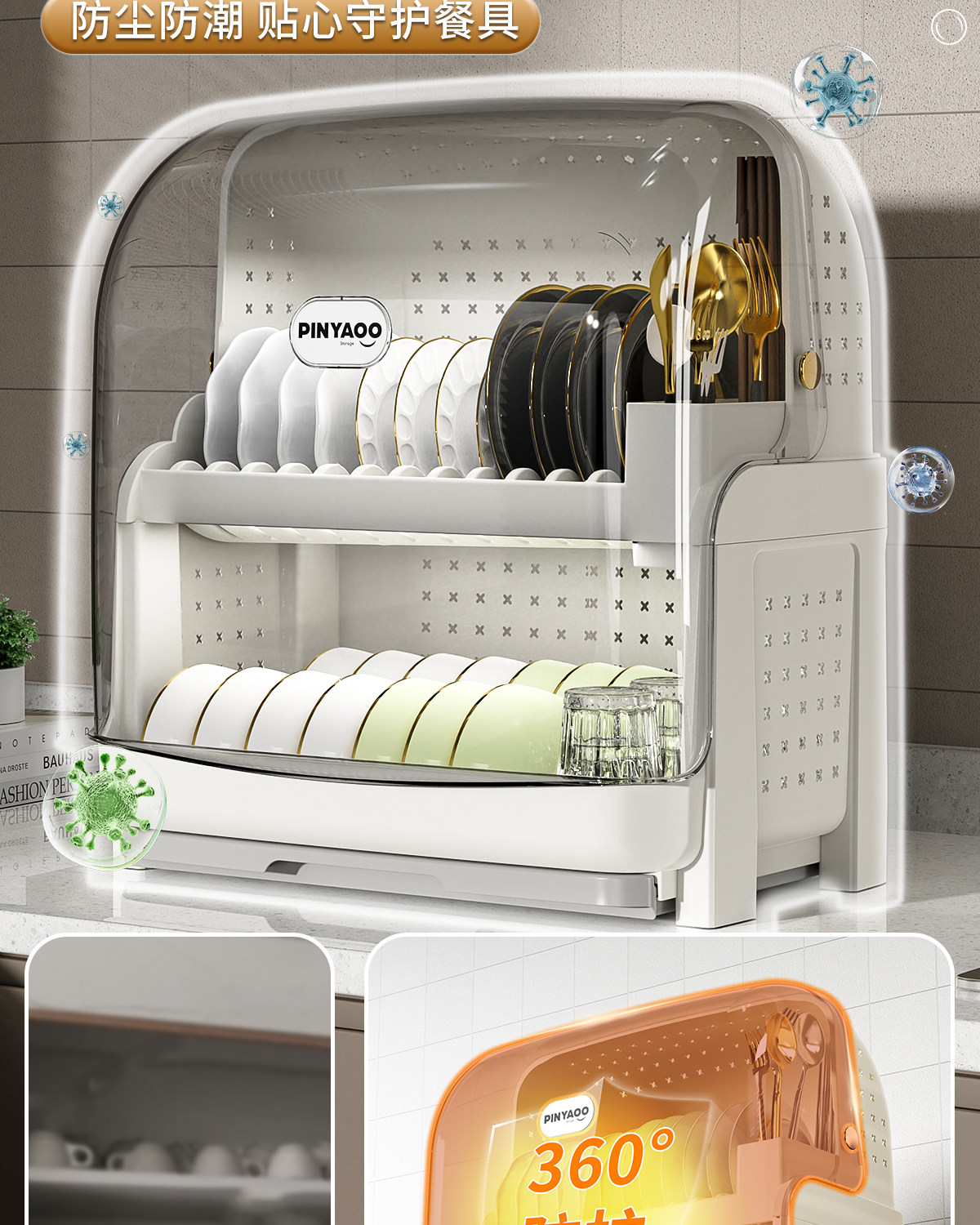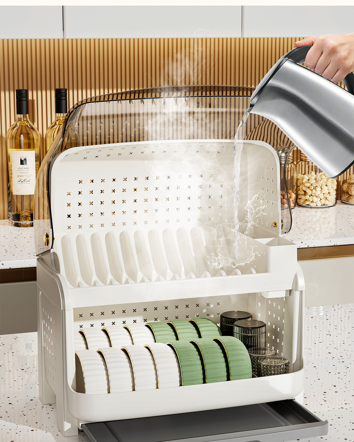 Kitchen Dish Rack, Bowl and Chopstick Storage Box, Multifunctional with Lid, Household Dish Drainer, Plastic Double-Layer Cupboard