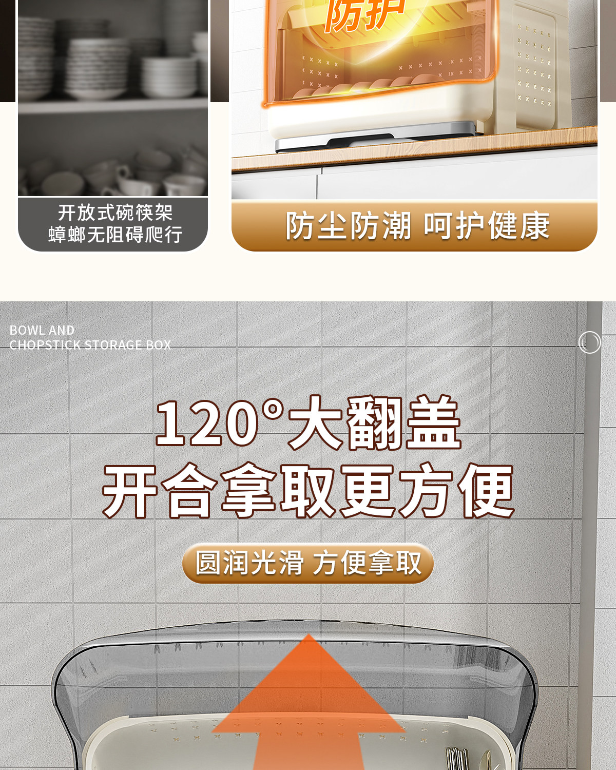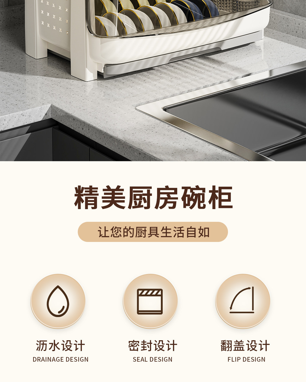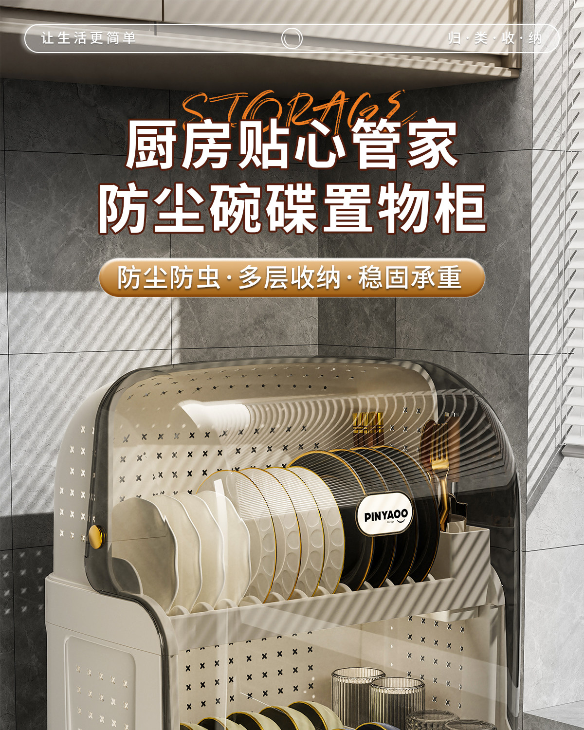 Kitchen Dish Rack, Bowl and Chopstick Storage Box, Multifunctional with Lid, Household Dish Drainer, Plastic Double-Layer Cupboard