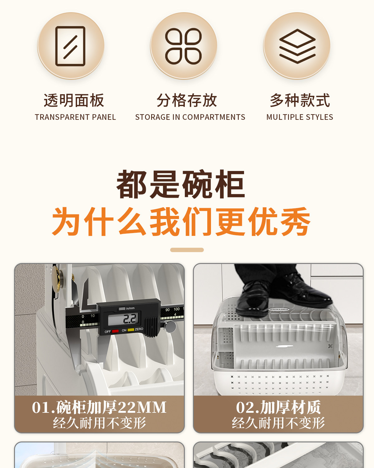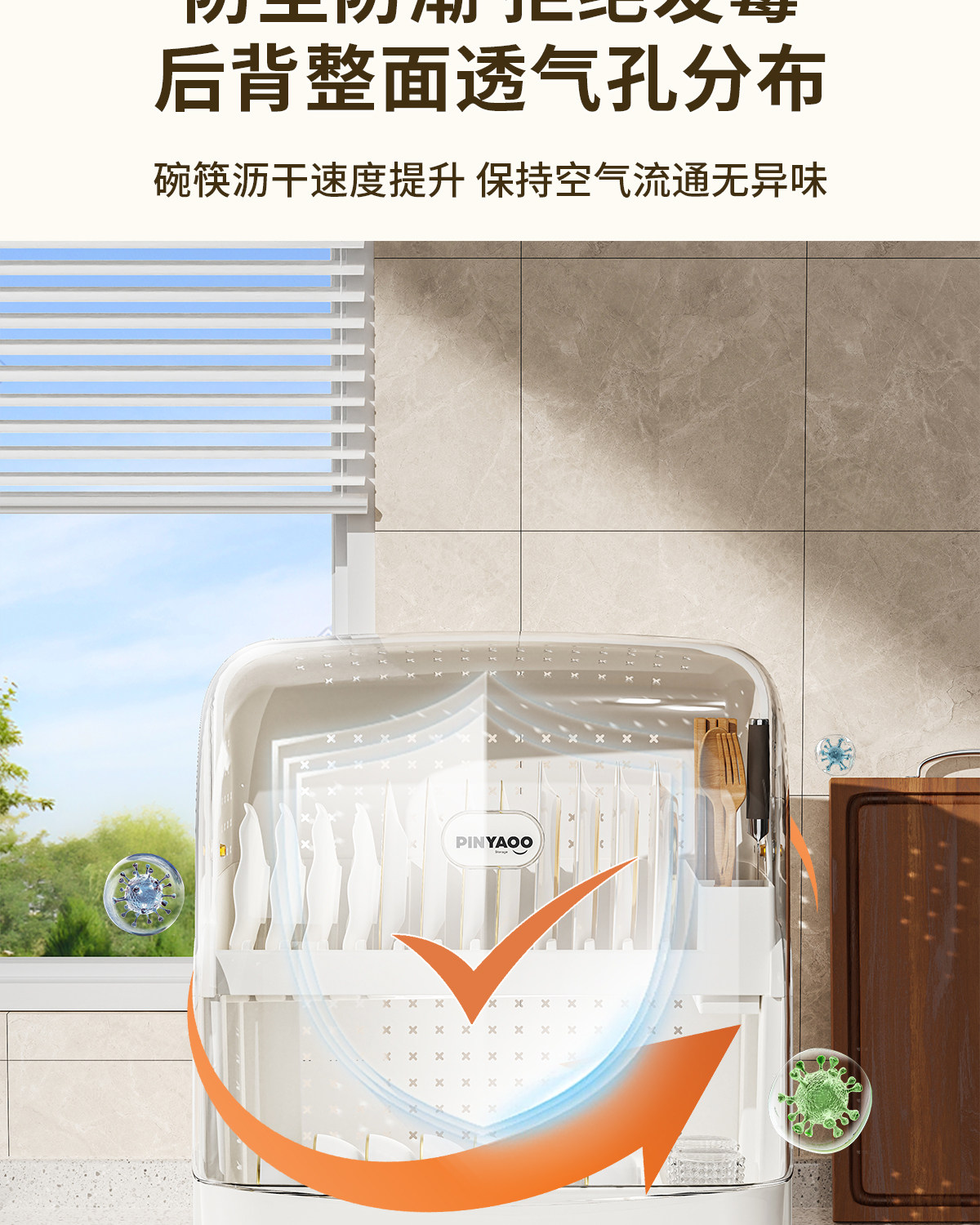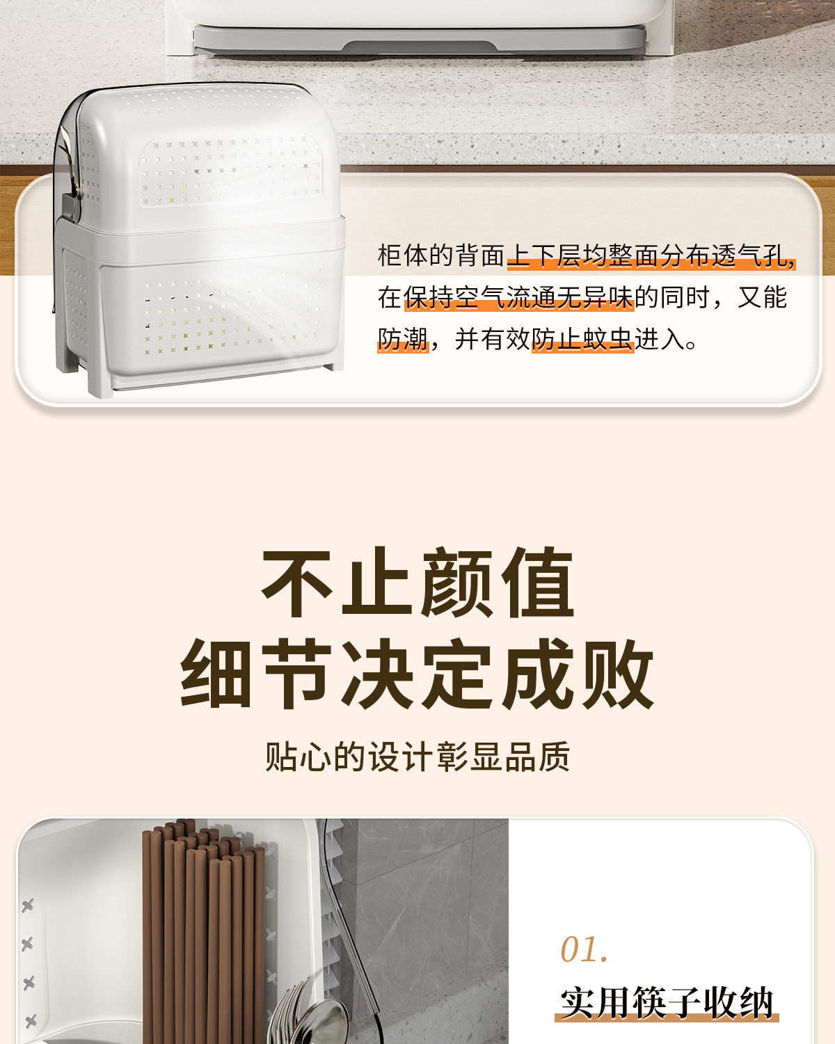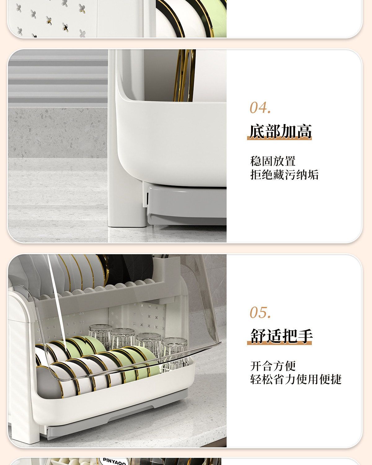Kitchen Dish Rack, Bowl and Chopstick Storage Box, Multifunctional with Lid, Household Dish Drainer, Plastic Double-Layer Cupboard