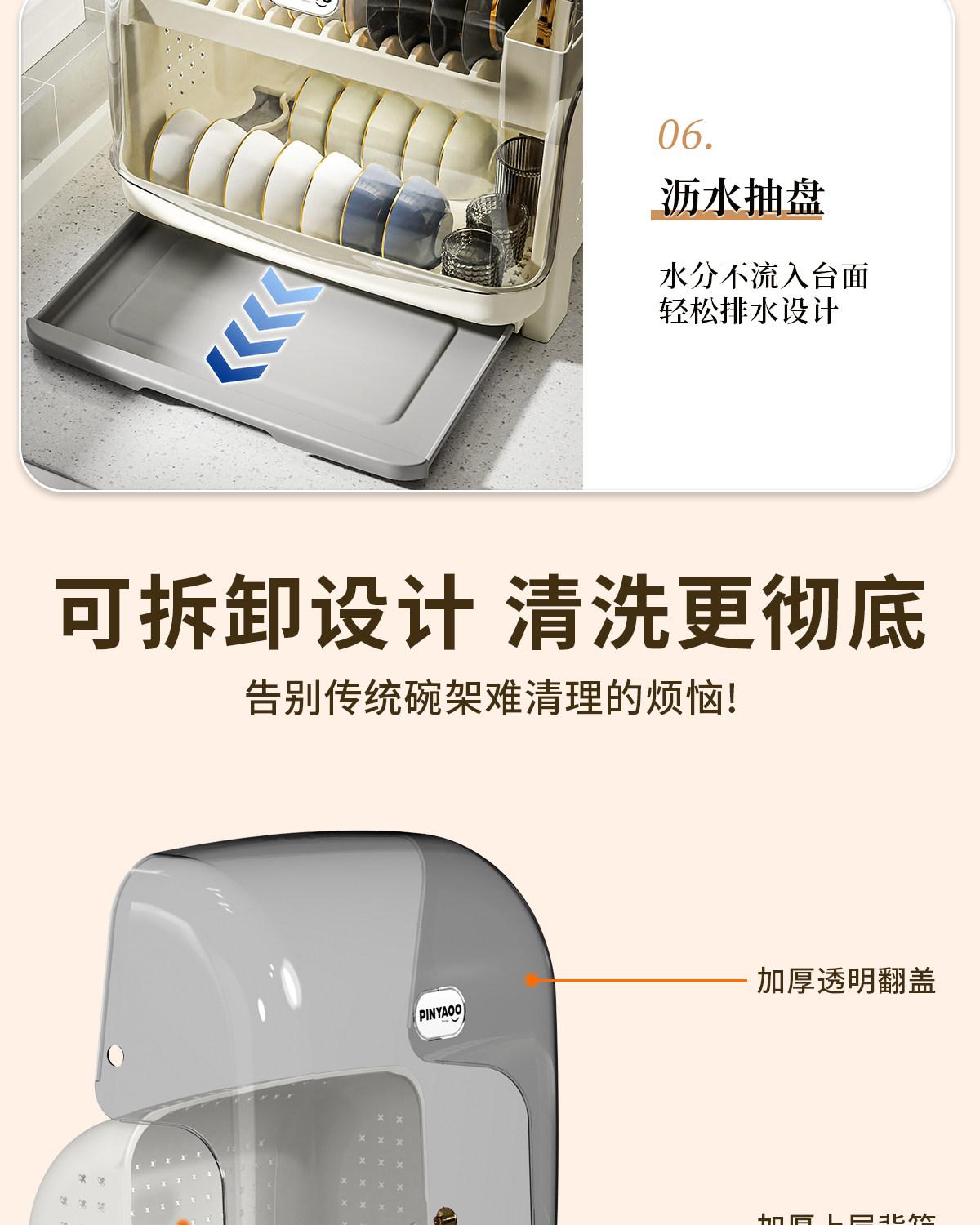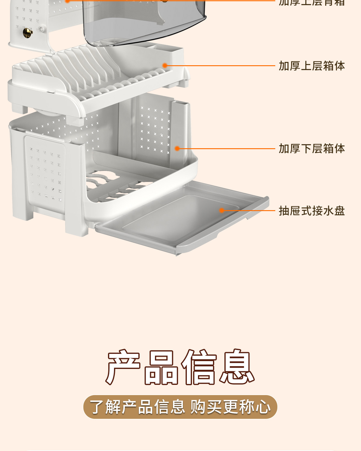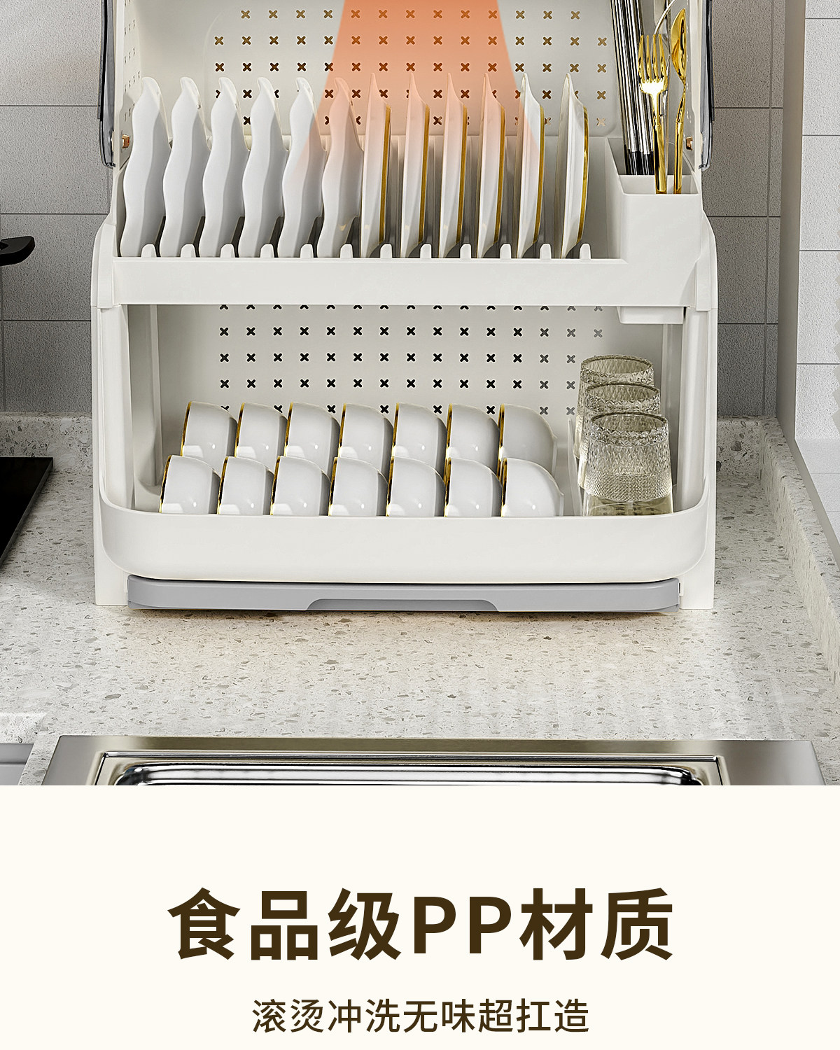 | Color Classification | Upgraded Double-Layer Dish Rack [Black Transparent Extra Large] with Bottom Drain Tray,Upgraded Double-Layer Dish Rack [Extra Large, Tea-Tinted] with Bottom Drain Tray,Upgraded Double-Layer Dish Storage Rack [Green Extra Large Size] with Bottom Drain Tray,Upgraded Double-Layer Dish Storage Rack [Blue Antibacterial Model] with Bottom Drain Tray |