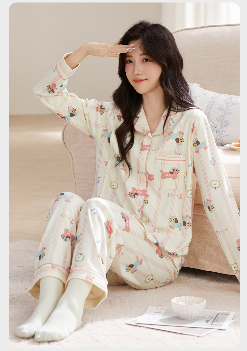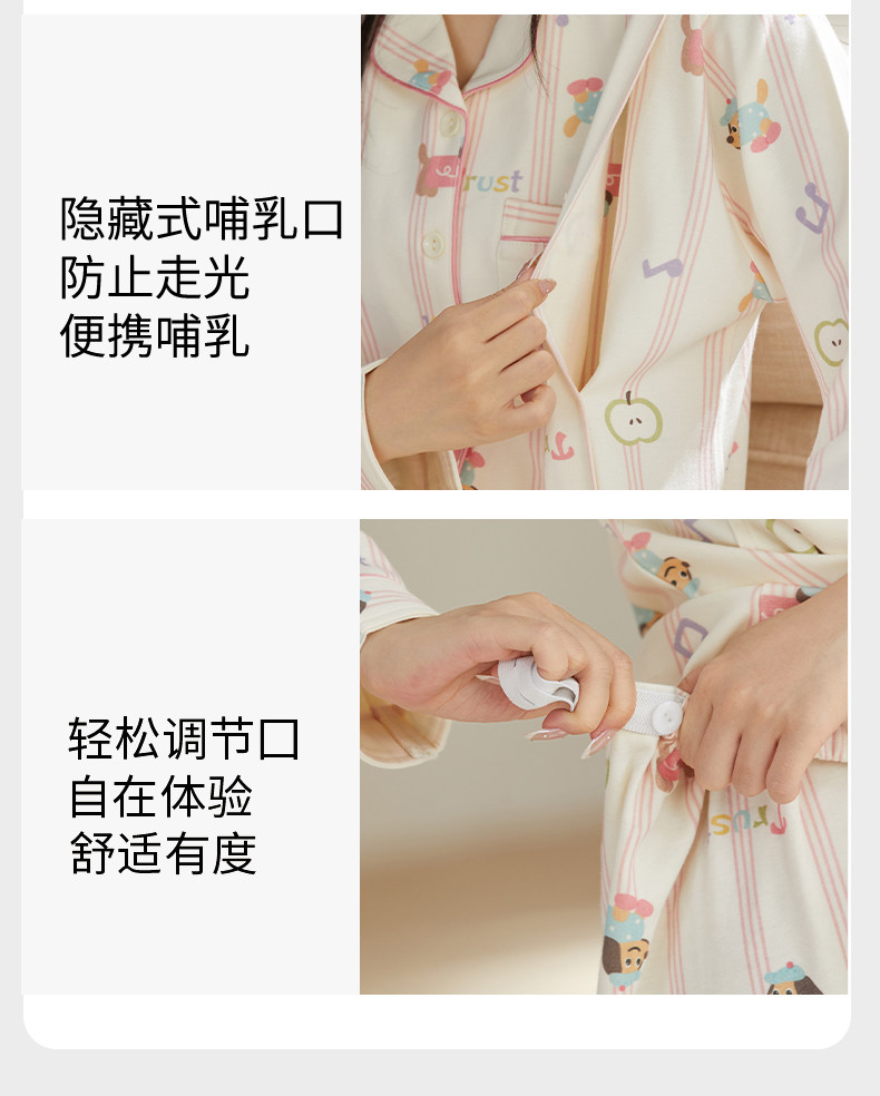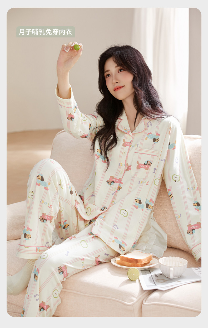 Jingqi Postpartum Clothing for Autumn and Winter, 100% Pure Cotton, November Postpartum Maternity Ultra-Soft Pajamas, Nursing and Going-Out Home Wear