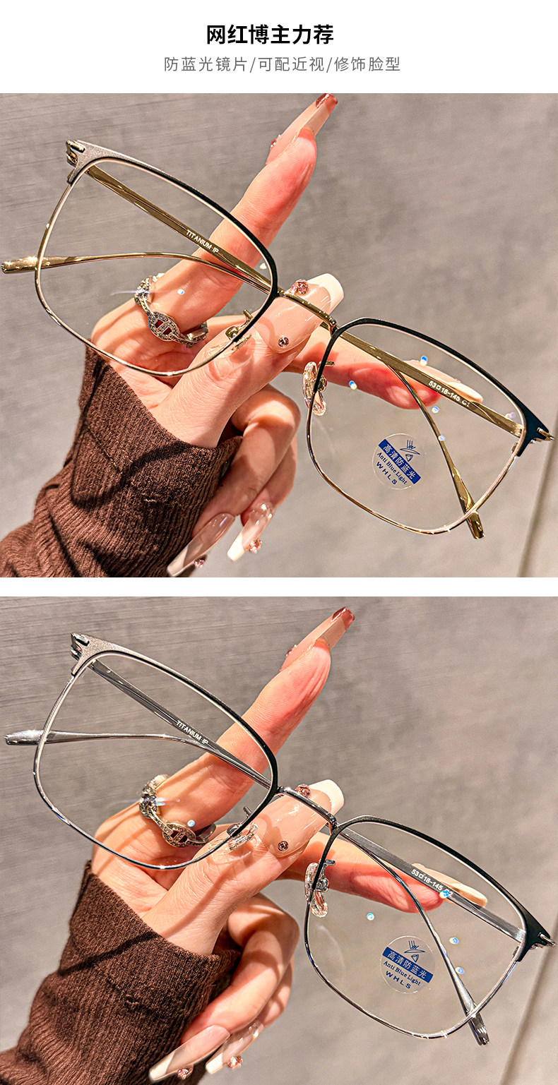 Ultra-Light Titanium Black-Gold Glasses Frame for Men with Myopia, Can Be Customized with Prescription, Elegant and Intellectual, Makes Big Faces Look Slimmer, Eyeglass Frame for Women