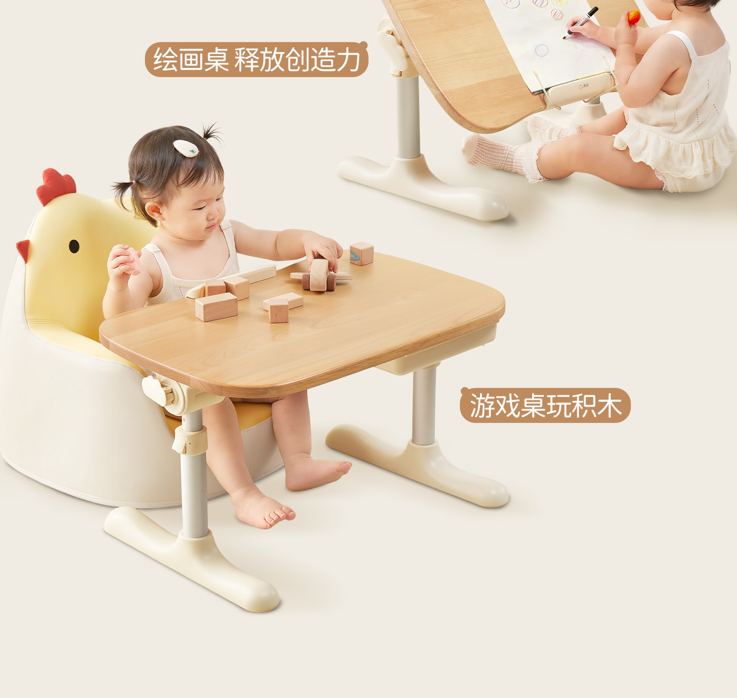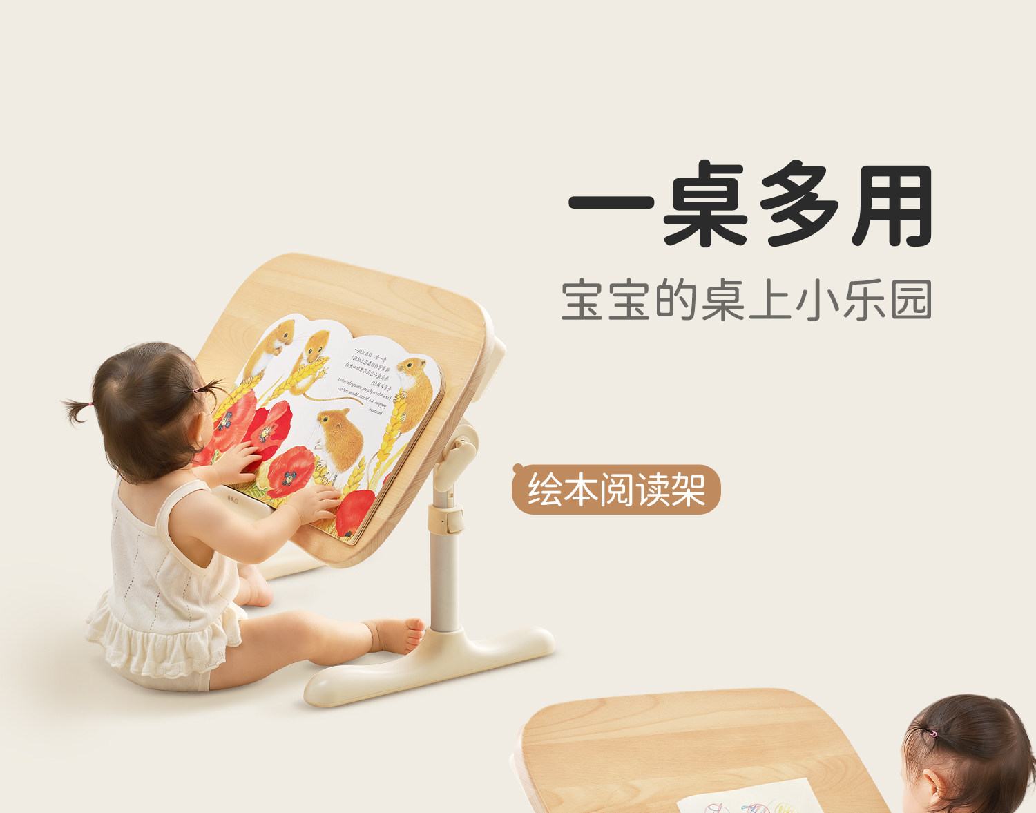 Saijing R3 Solid Wood Peanut Table Foldable Reading Stand Children's Study Table Multifunctional Baby Desk Small Table Small Apartment Baby Reading Stand Adjustable Toy Table Toddler Picture Book Reading Stand