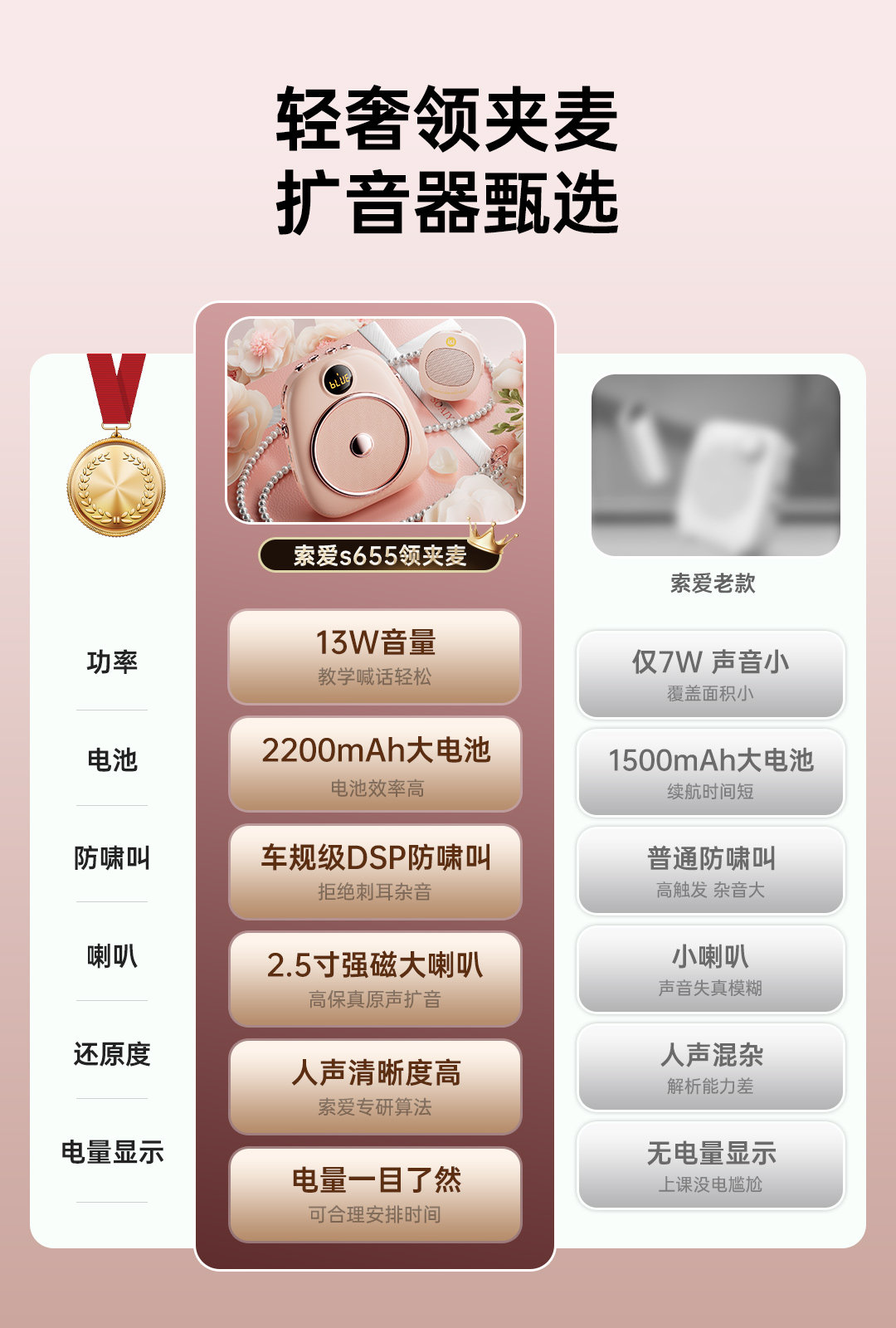 Sony Ericsson S655 Wireless Lavalier Amplifier for Teachers, Special Microphone for Lectures, Speaker