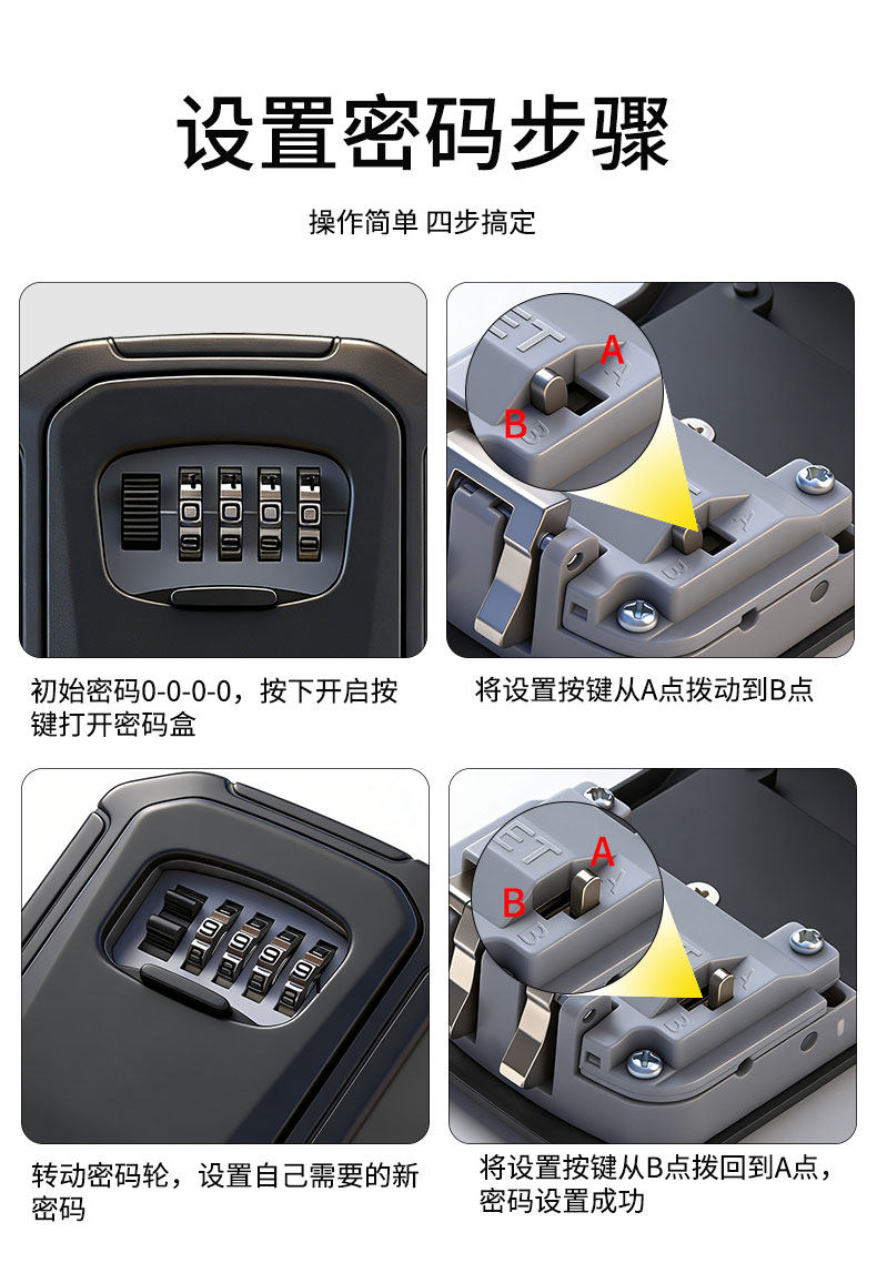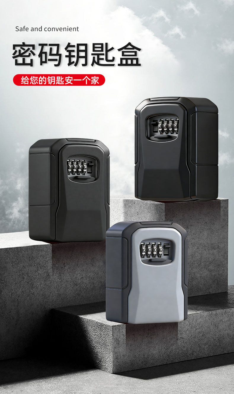 Password Key Box Metal Aluminum Alloy Outdoor Homestay Access Control Metal Lock Storage Box Decoration Key Box Password Lock
