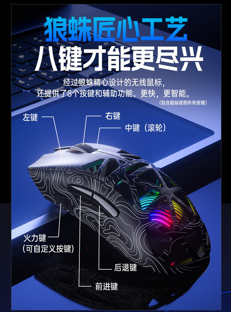 Wolf Spider Sc620 Wireless Bluetooth Three-Mode Mouse, Hollow Lightweight Gaming Ergonomic USB Mouse