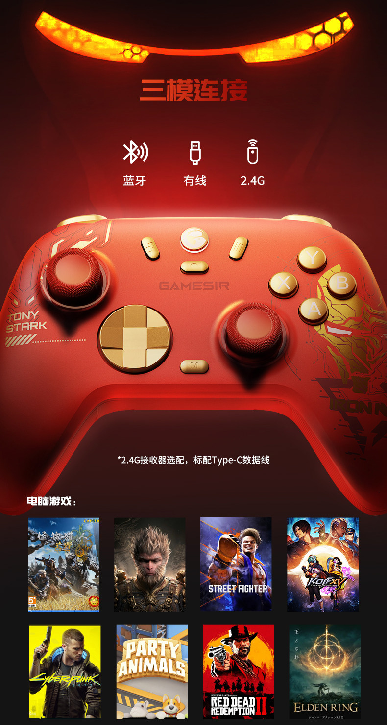 Peerless Little Chicken Rising Sun 2 Iron Man Collaboration Controller Marvel Licensed Wireless Game Pc Computer Steam Bluetooth Switch 2 Mobile Hollow Knight: Song of Silk Epic Two-Player Mode