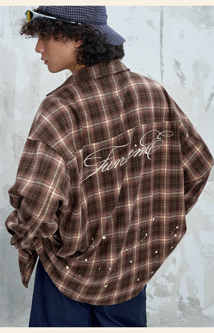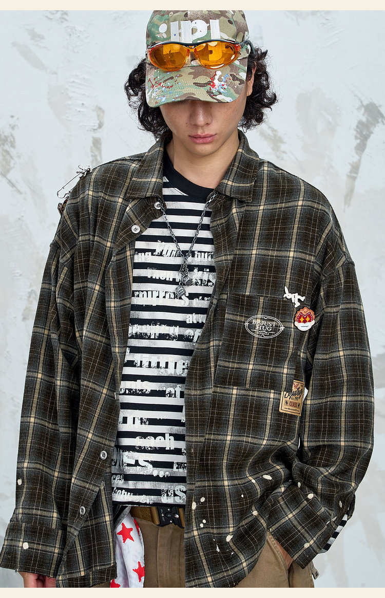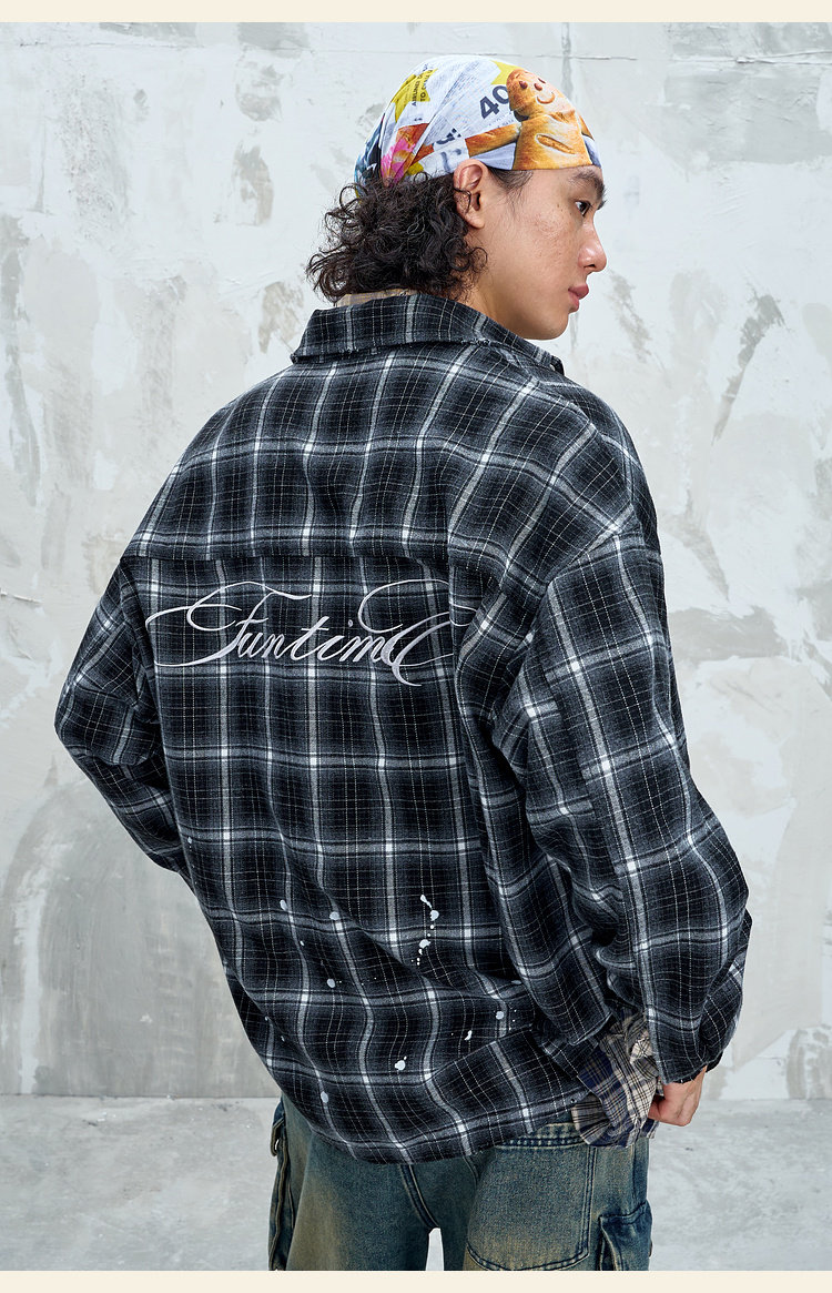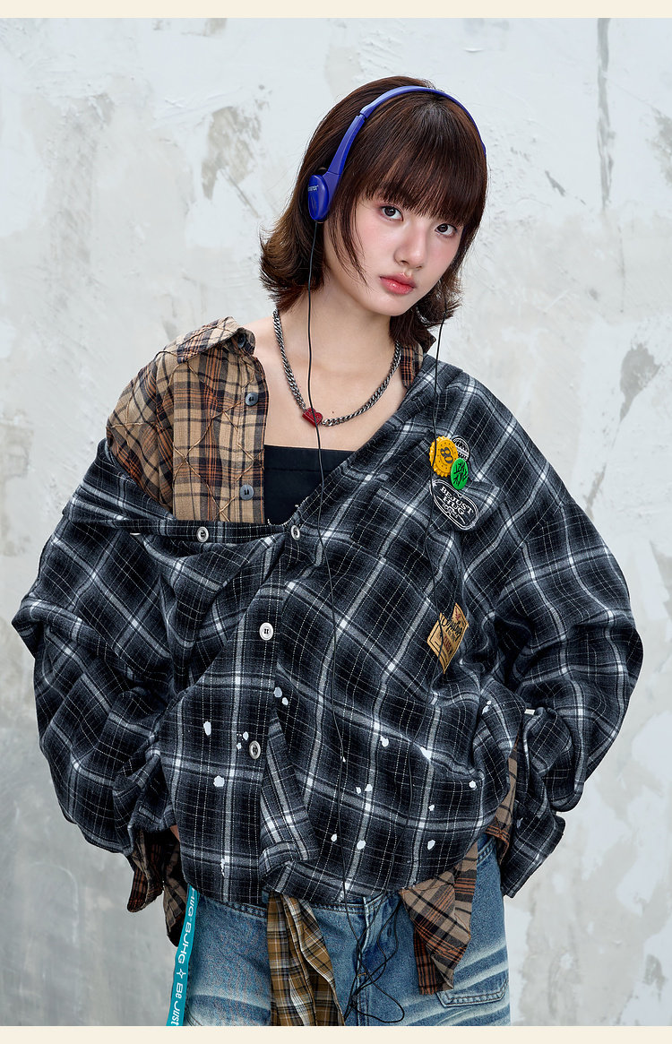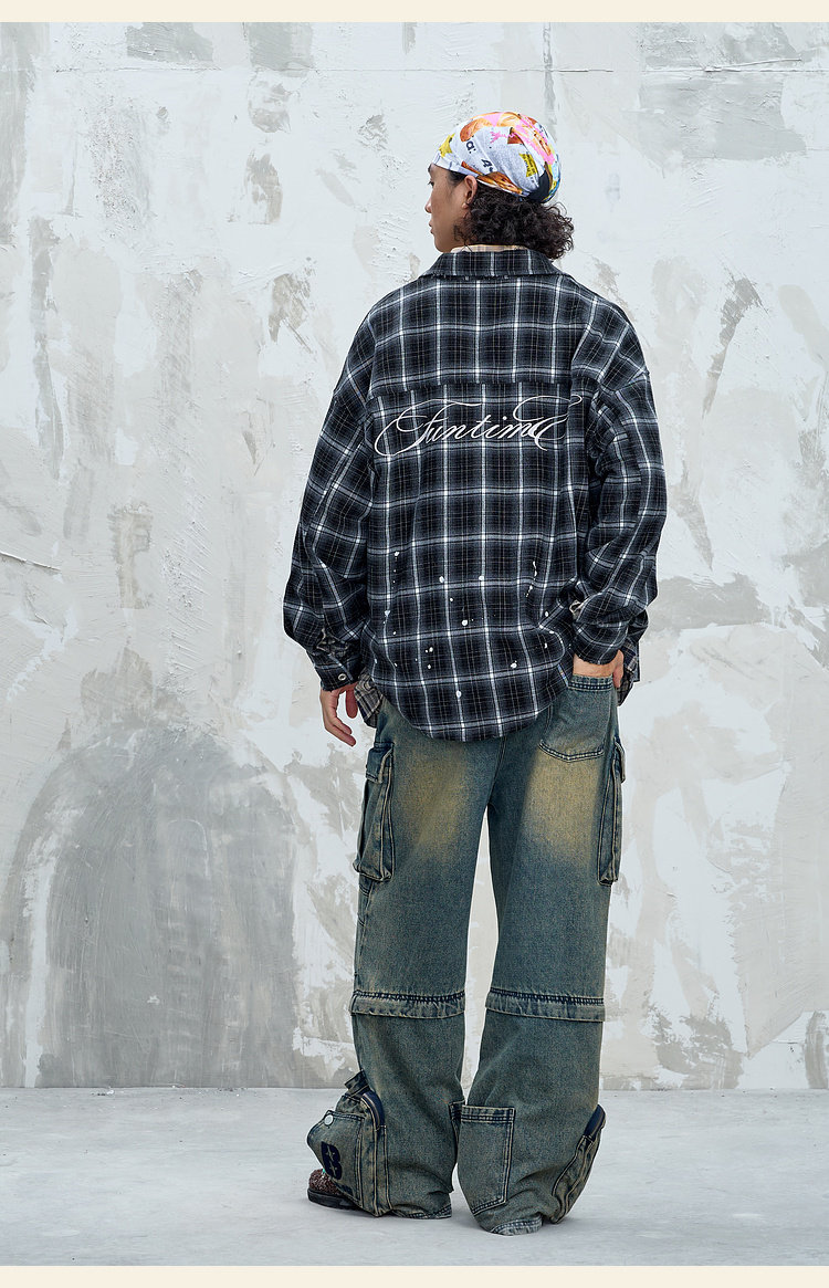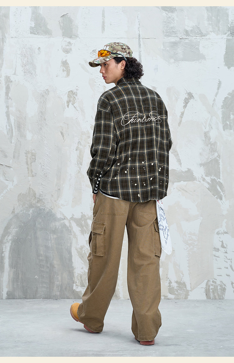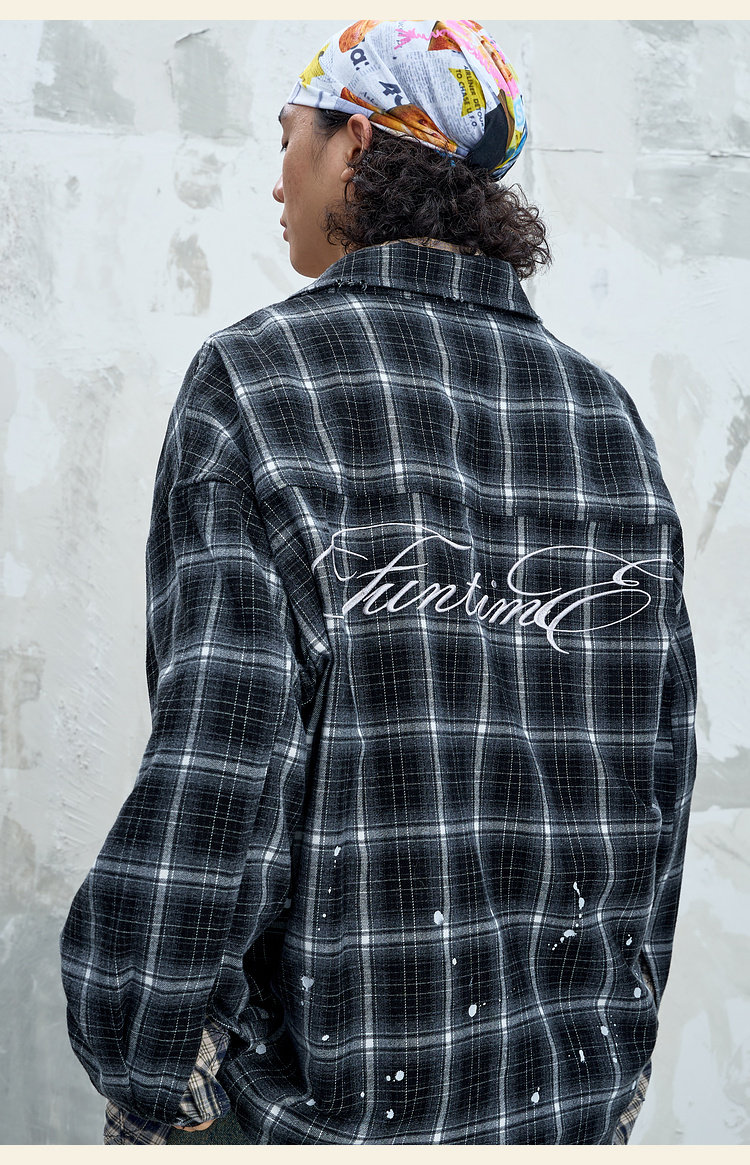 Bjhg Reckless Retro Plaid Shirt Jacket for Men, Autumn and Winter Trendy Brand Splatter Ink Loose Casual Shirt Jacket for Women