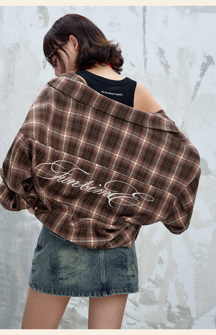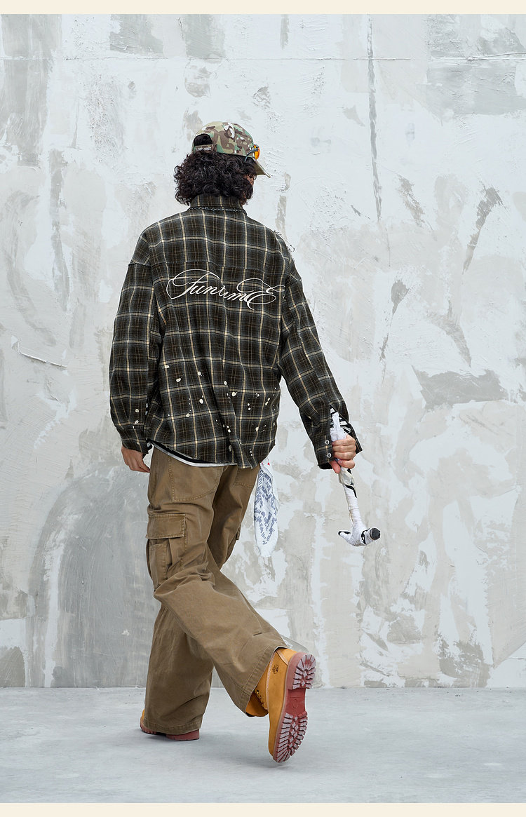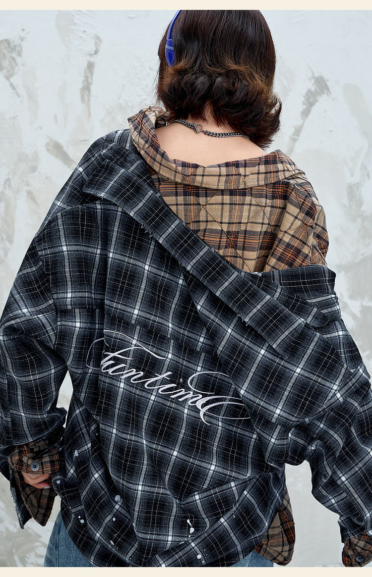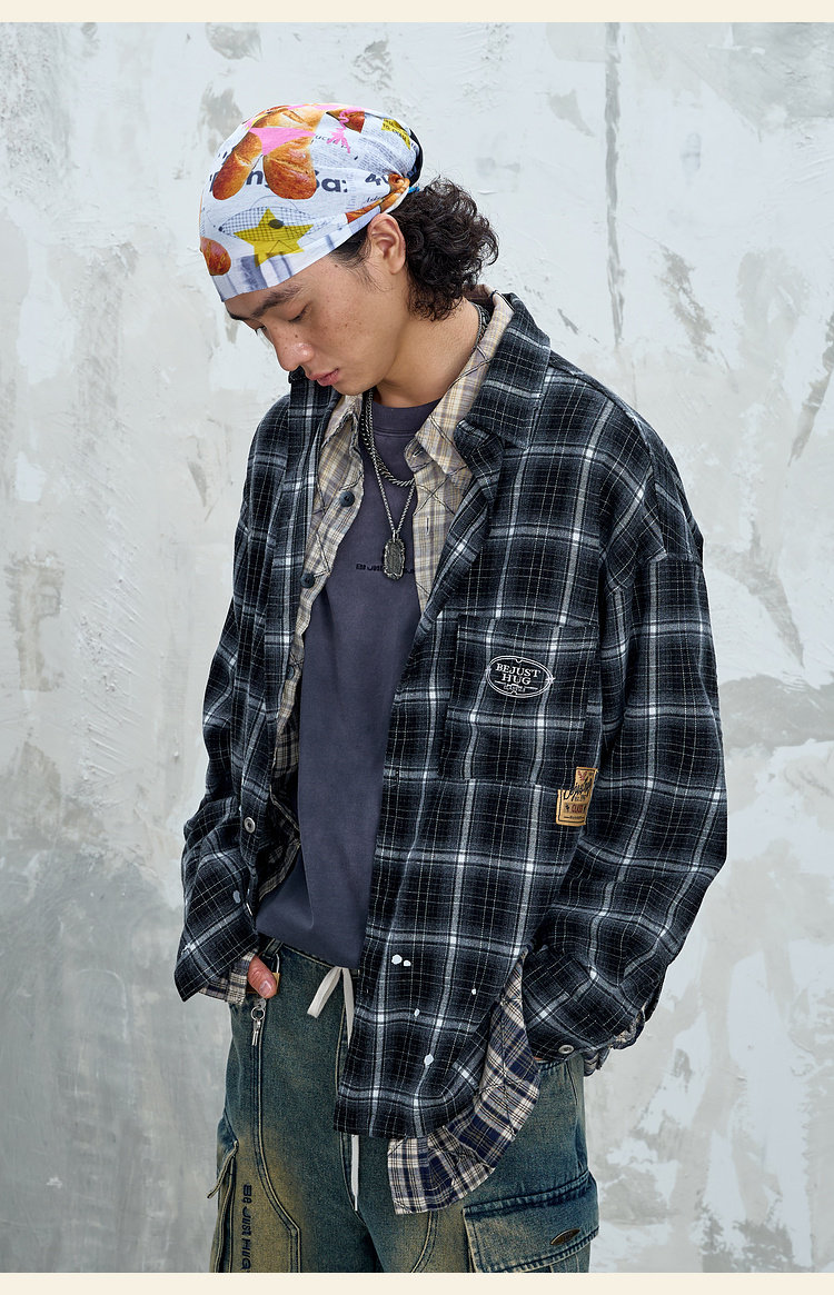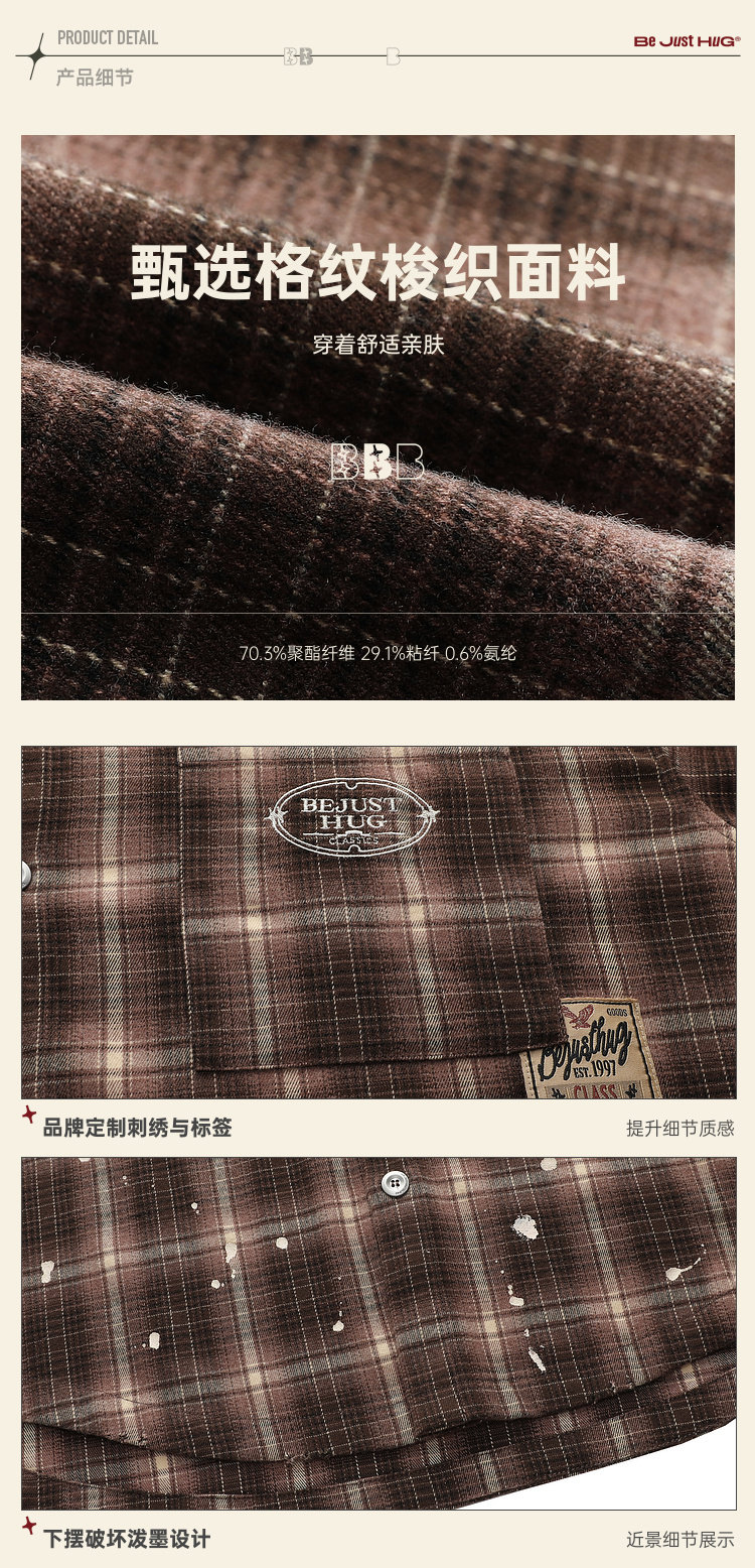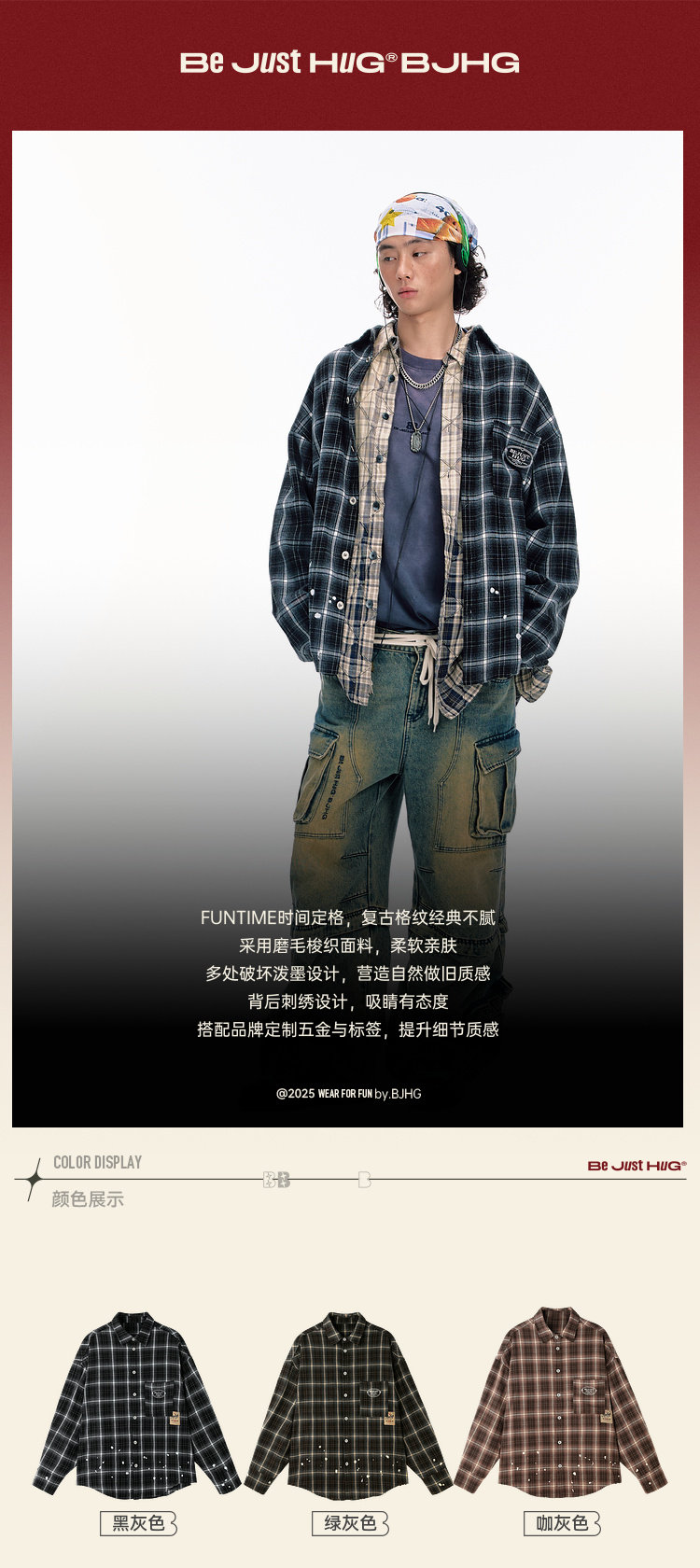 Bjhg Reckless Retro Plaid Shirt Jacket for Men, Autumn and Winter Trendy Brand Splatter Ink Loose Casual Shirt Jacket for Women