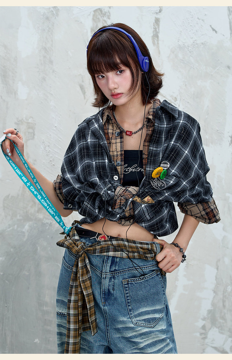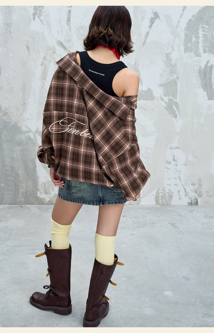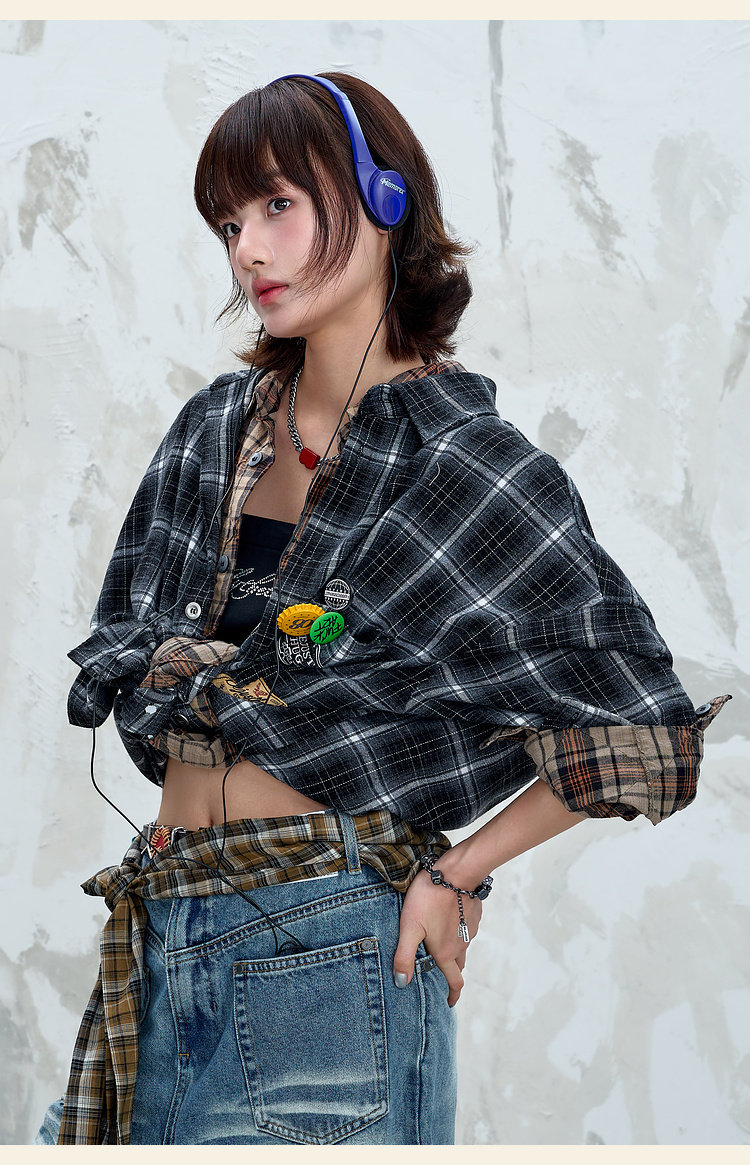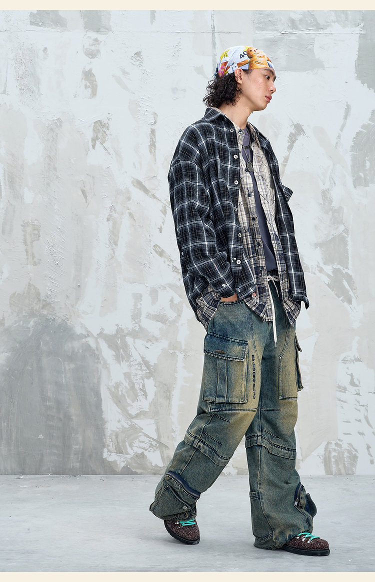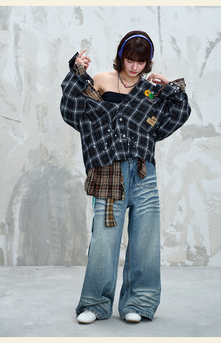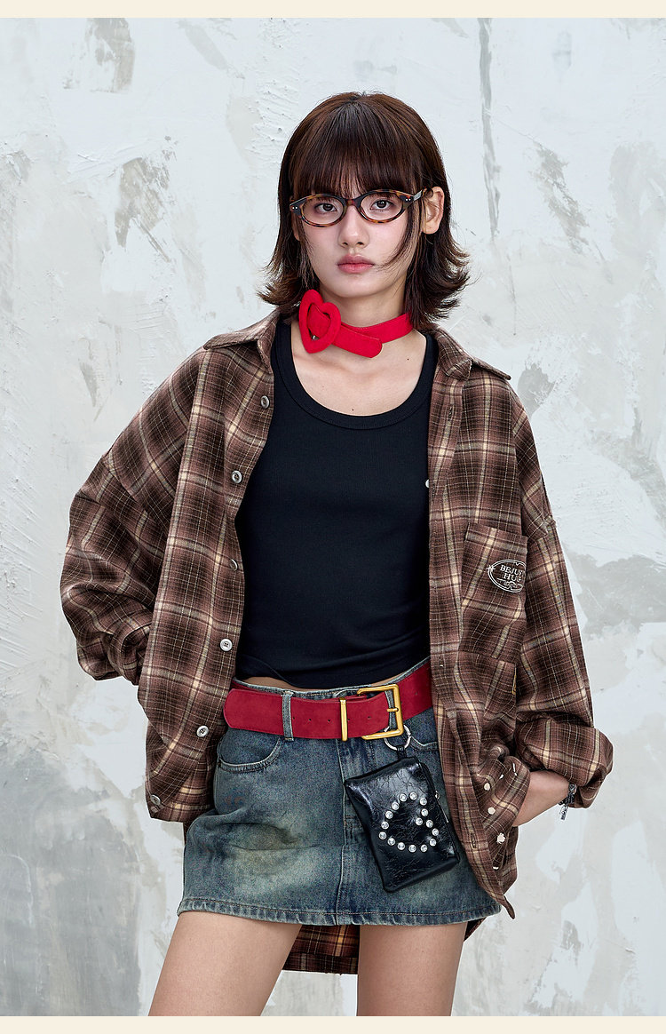Bjhg Reckless Retro Plaid Shirt Jacket for Men, Autumn and Winter Trendy Brand Splatter Ink Loose Casual Shirt Jacket for Women