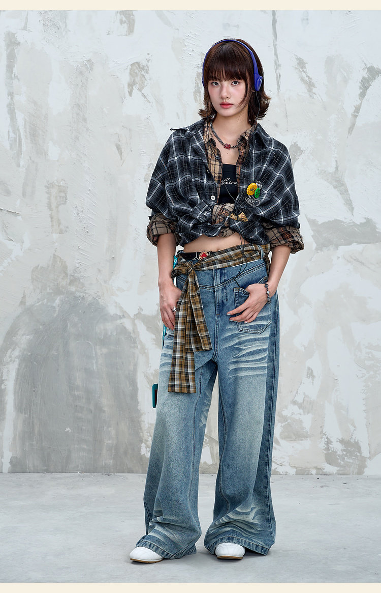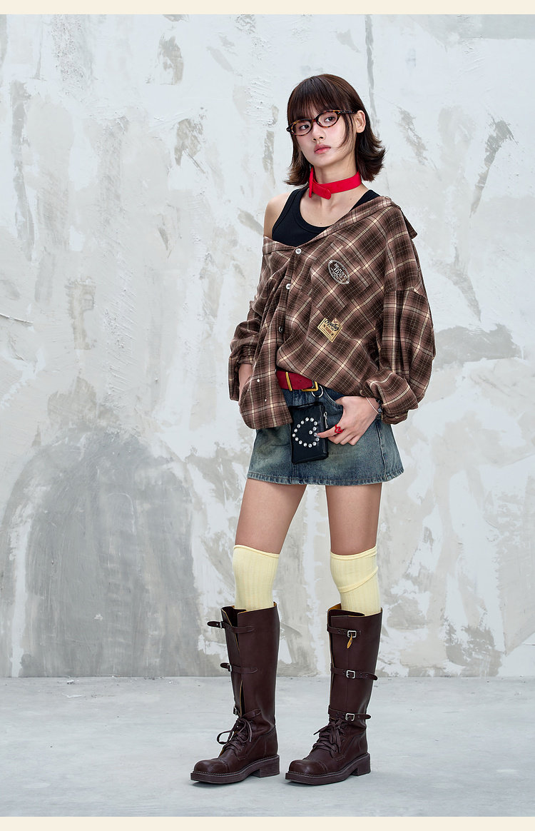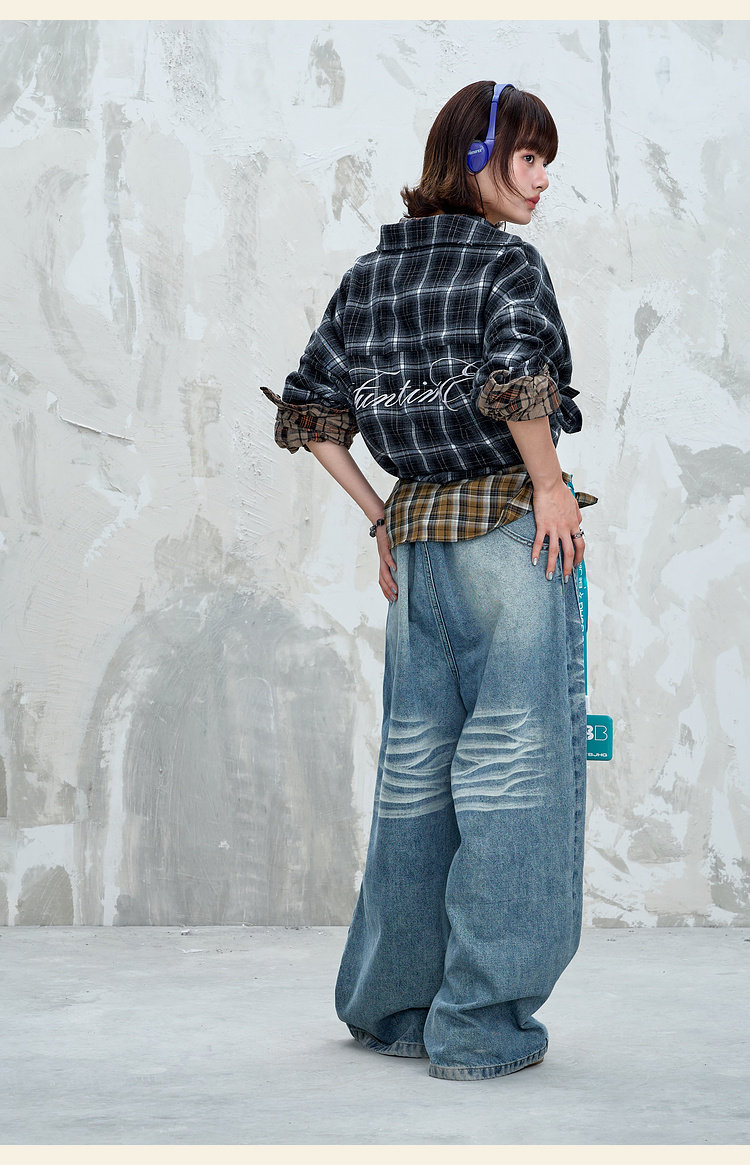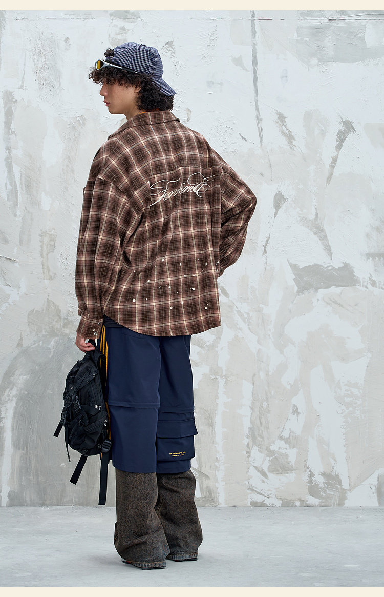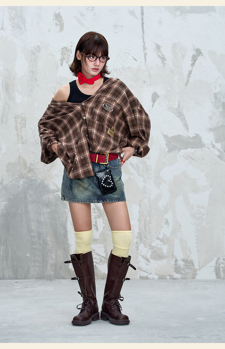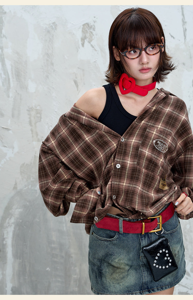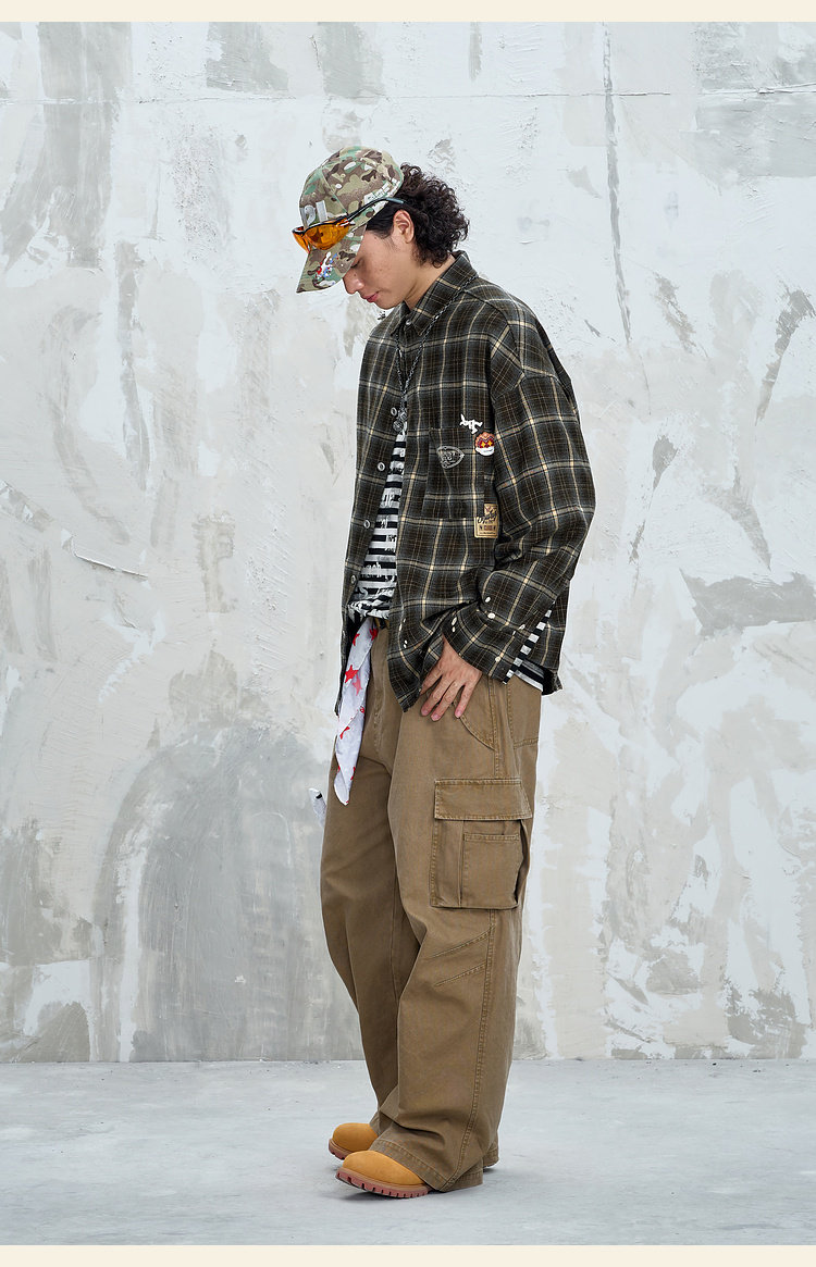 Bjhg Reckless Retro Plaid Shirt Jacket for Men, Autumn and Winter Trendy Brand Splatter Ink Loose Casual Shirt Jacket for Women
