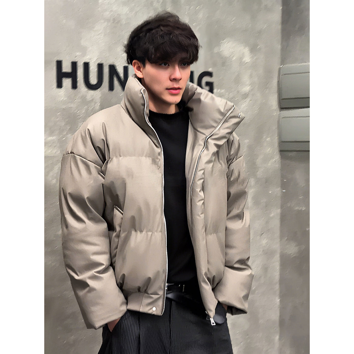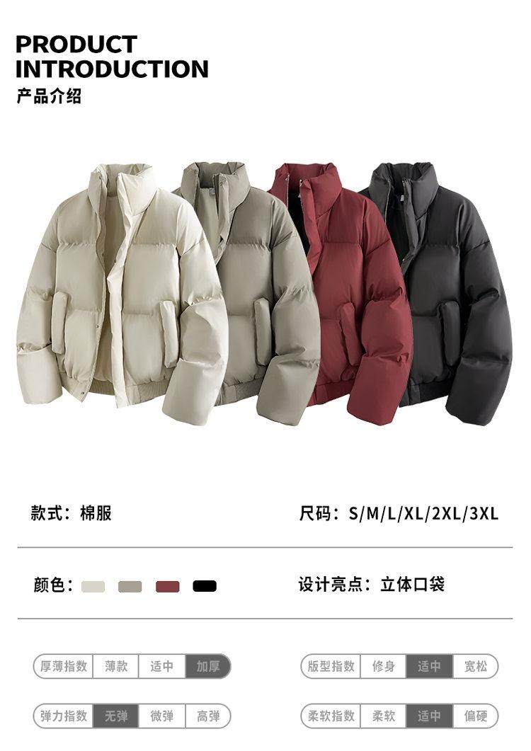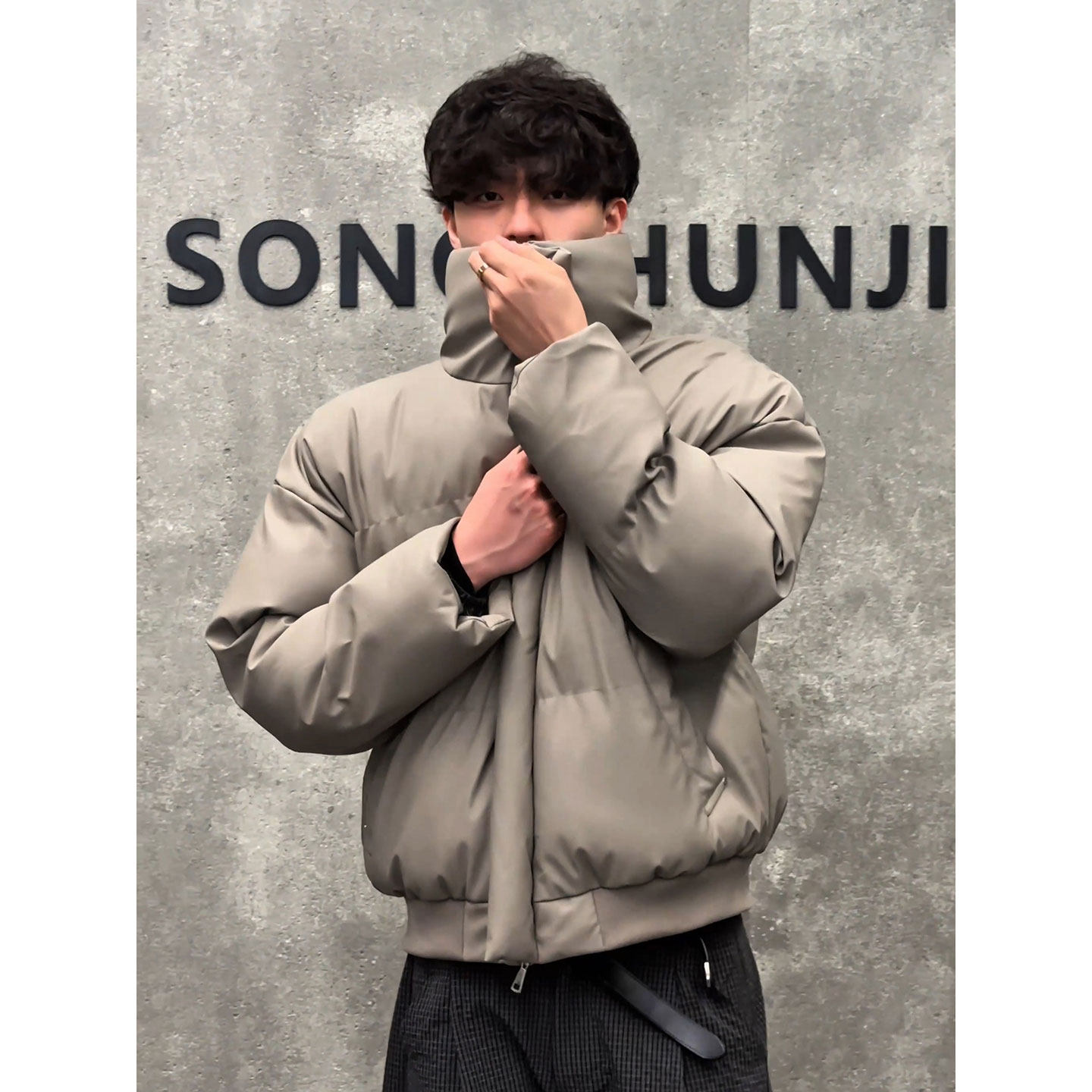 American Retro Pu Leather down Cotton Jacket for Men, Winter Stand-Up Collar Warm Coat, High-End Stylish Short Puffer Jacket