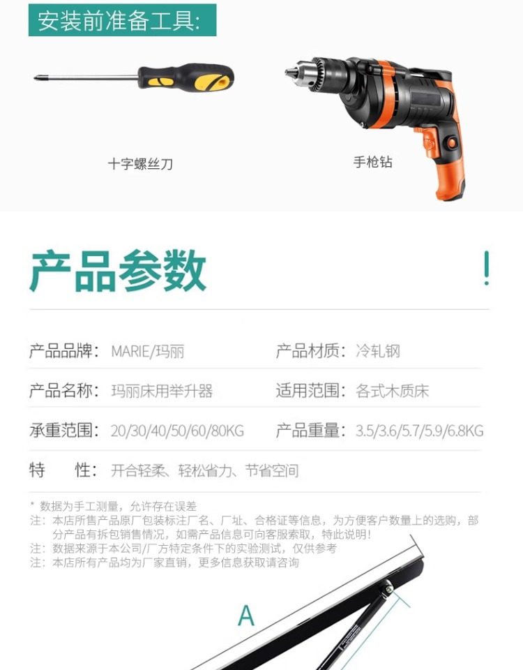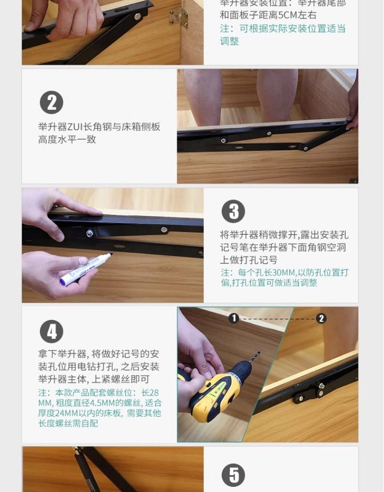 Hydraulic Support Rod for Bed, Pneumatic Rod for Folding Lift Frame, Tatami Gas Strut, Hydraulic Bed Support Rod, Bed Board Bracket