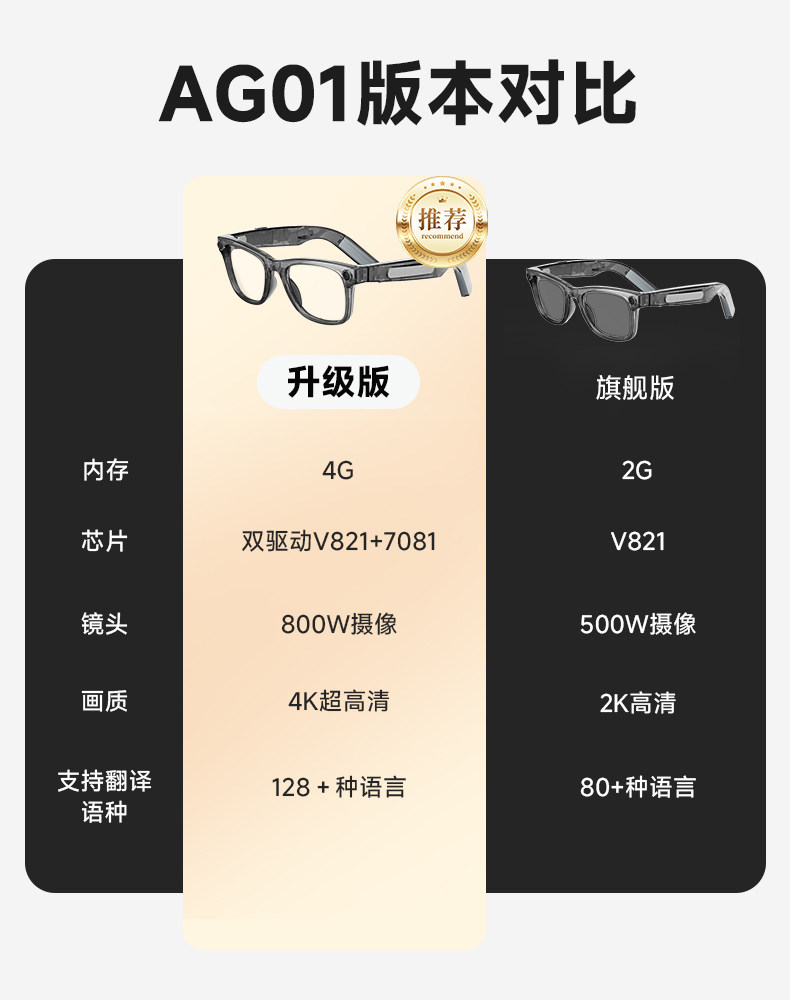 | Color Classification | Blu-Ray Model-Flagship Version [5 Million Pixels + 80+ Language Translations],Blu-Ray Model-Upgraded Version [8 Million Pixels + 120+ Language Translation] Comes with a Pair of Ear-Hook Bluetooth Headsets,Sunglasses Model-Flagship Version [5 Million Pixels + 80+ Language Translations],Sunglasses Model-Upgraded Version [8 Million Pixels + 120+ Language Translation] Free a Pair of Ear-Hanging Bluetooth Headsets |
