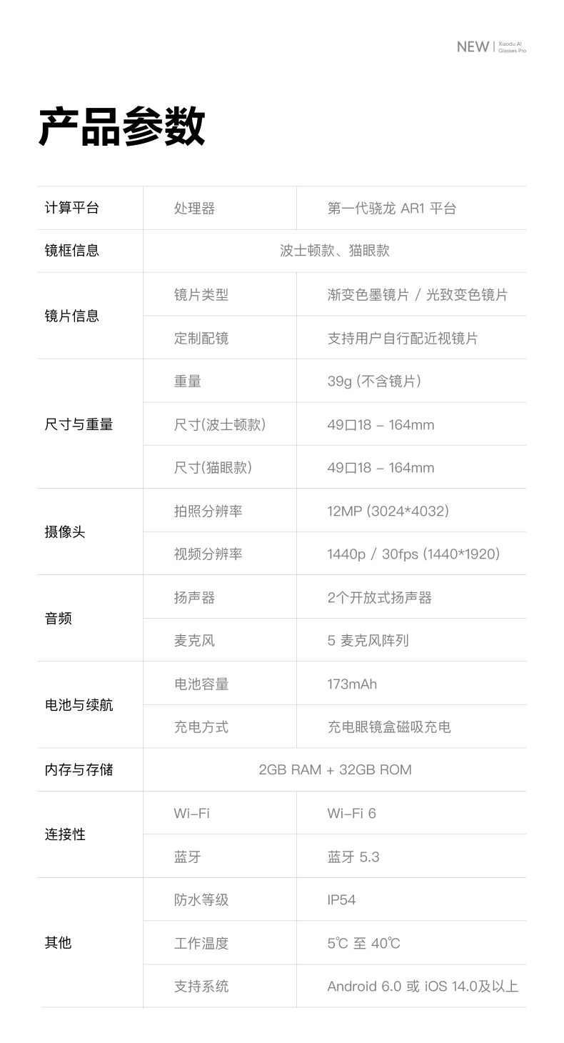 | Model | Xiaodu Smart Glasses |