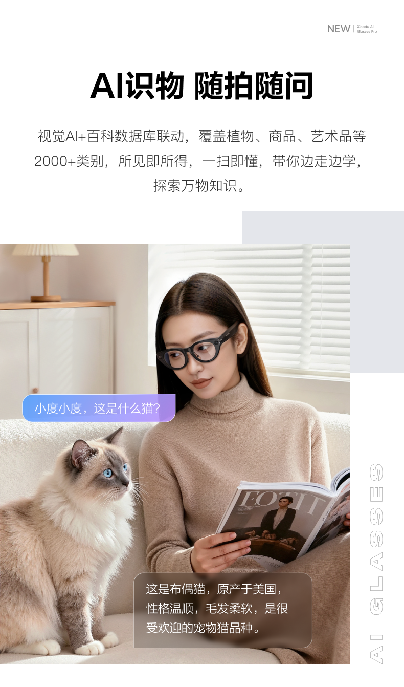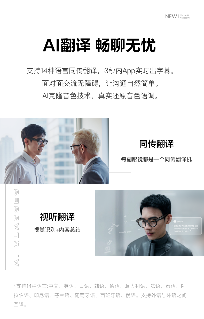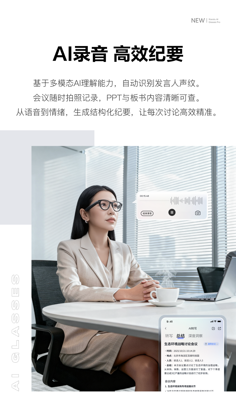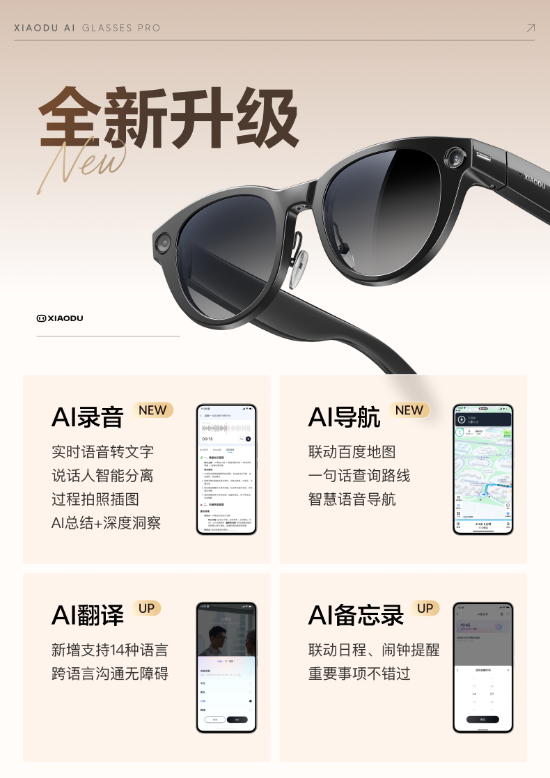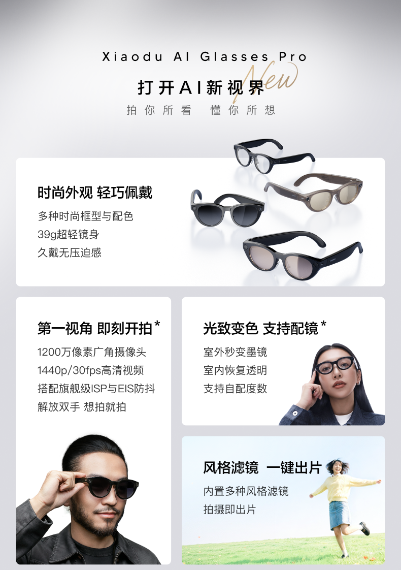 [Breaking News] Xiaodu Ai Glasses Pro: Photo-Taking, Translation, Memo-Taking, Ai Smart Glasses, Object Recognition, Video Recording, Bluetooth Wireless Connection, Rechargeable