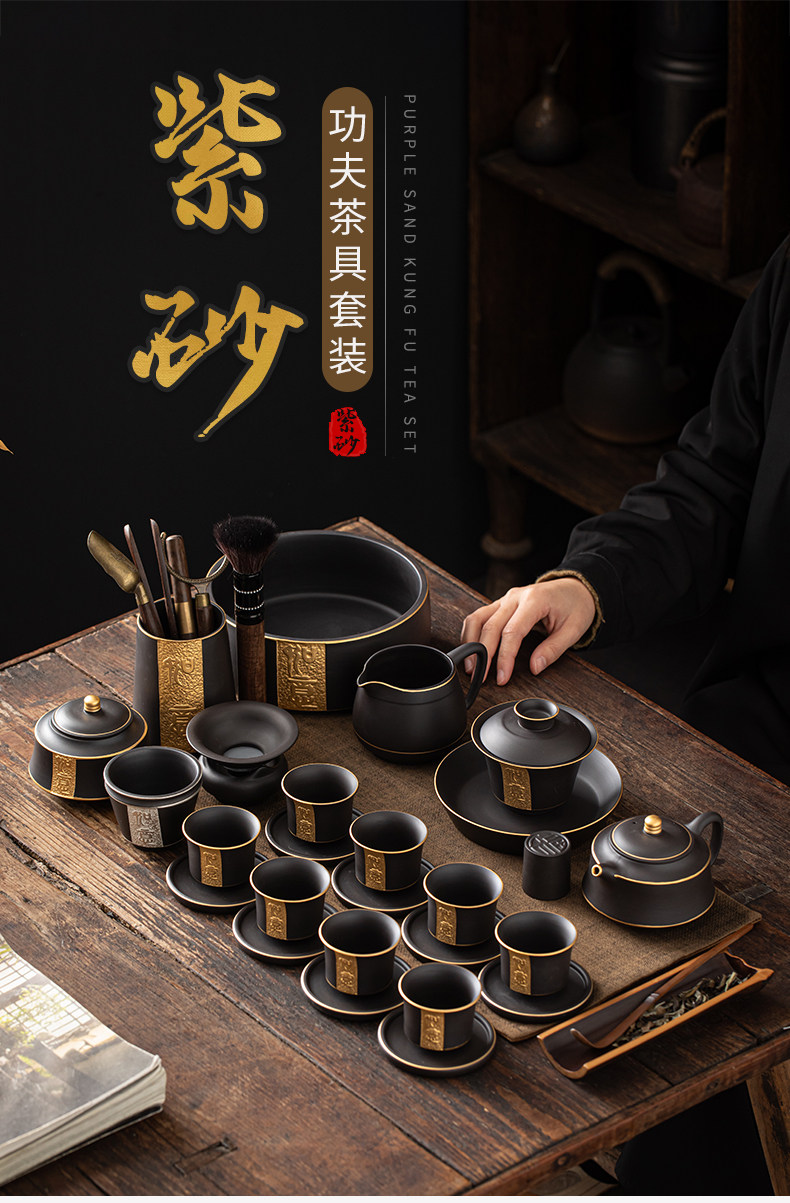 2025 New Model Gilt Purple Clay Tea Set, Chinese-Style Household Light Luxury High-End Original Mineral Teapot, Gaiwan, Tea Tray Gift Set