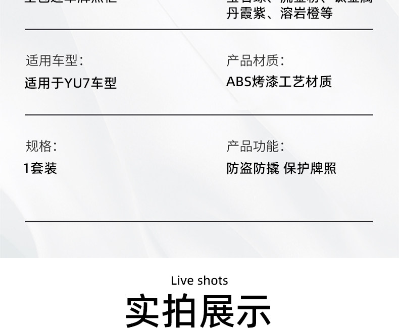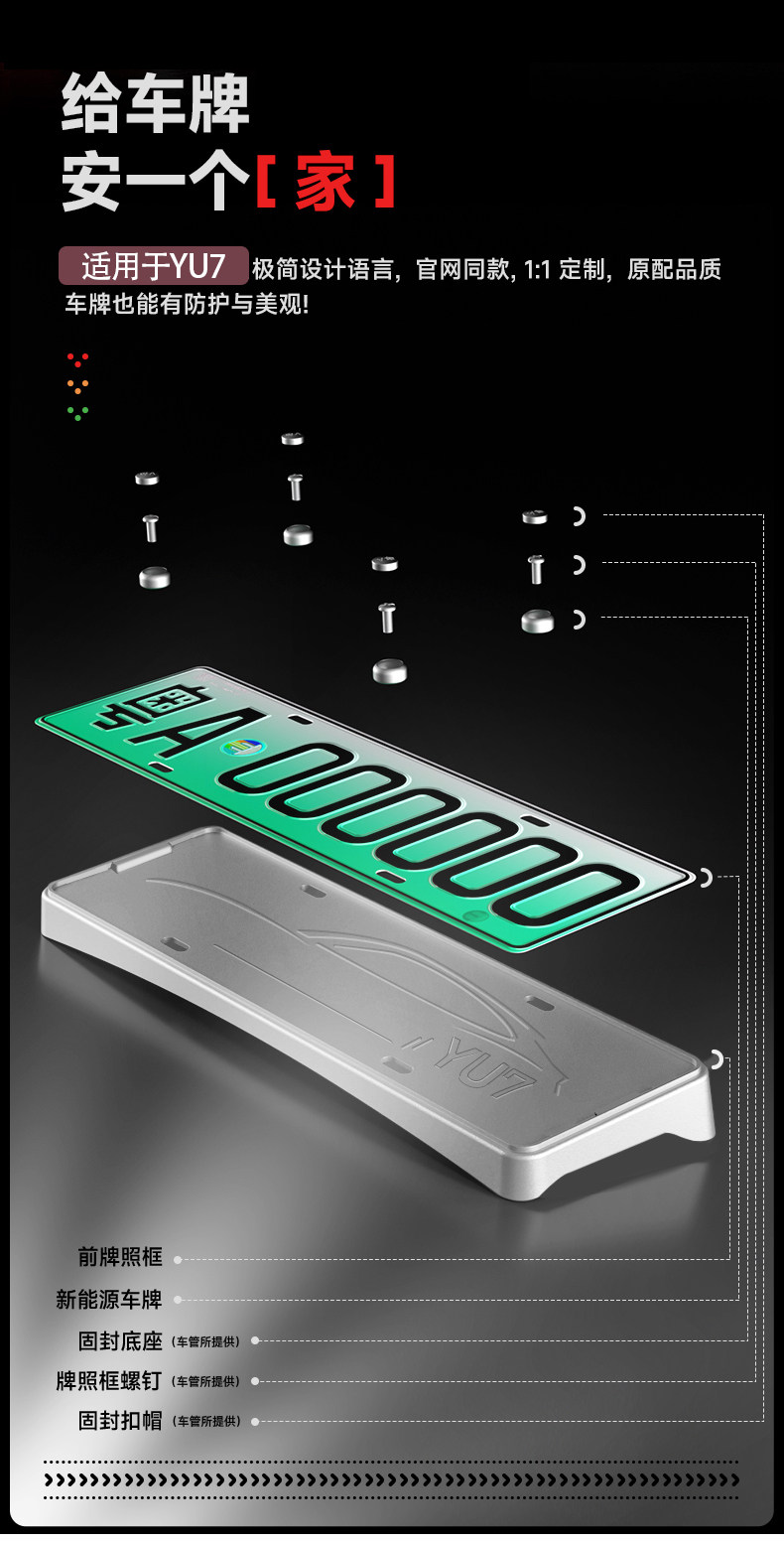 | Model | Suitable for Yu7 Full Edge Original Paint License Plate Frame |
