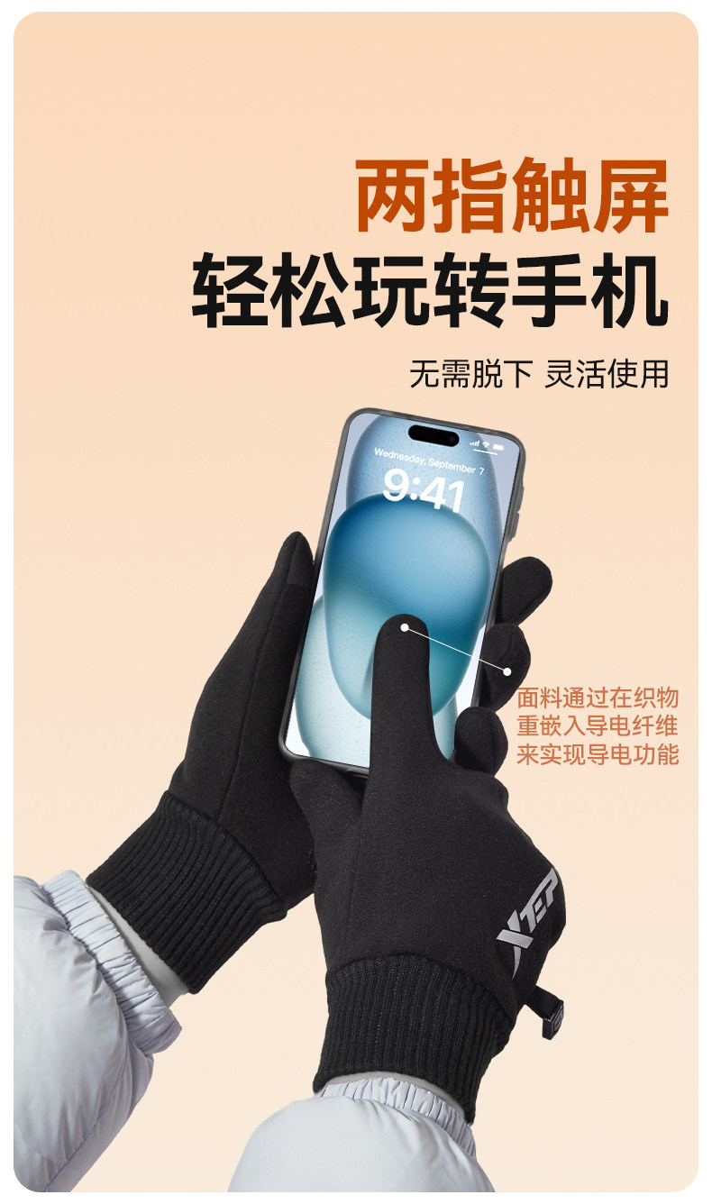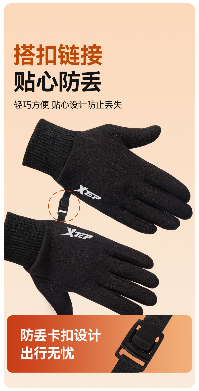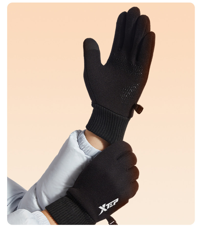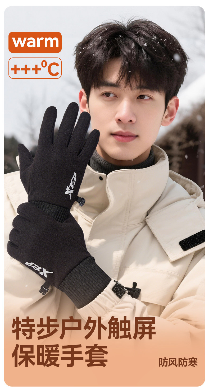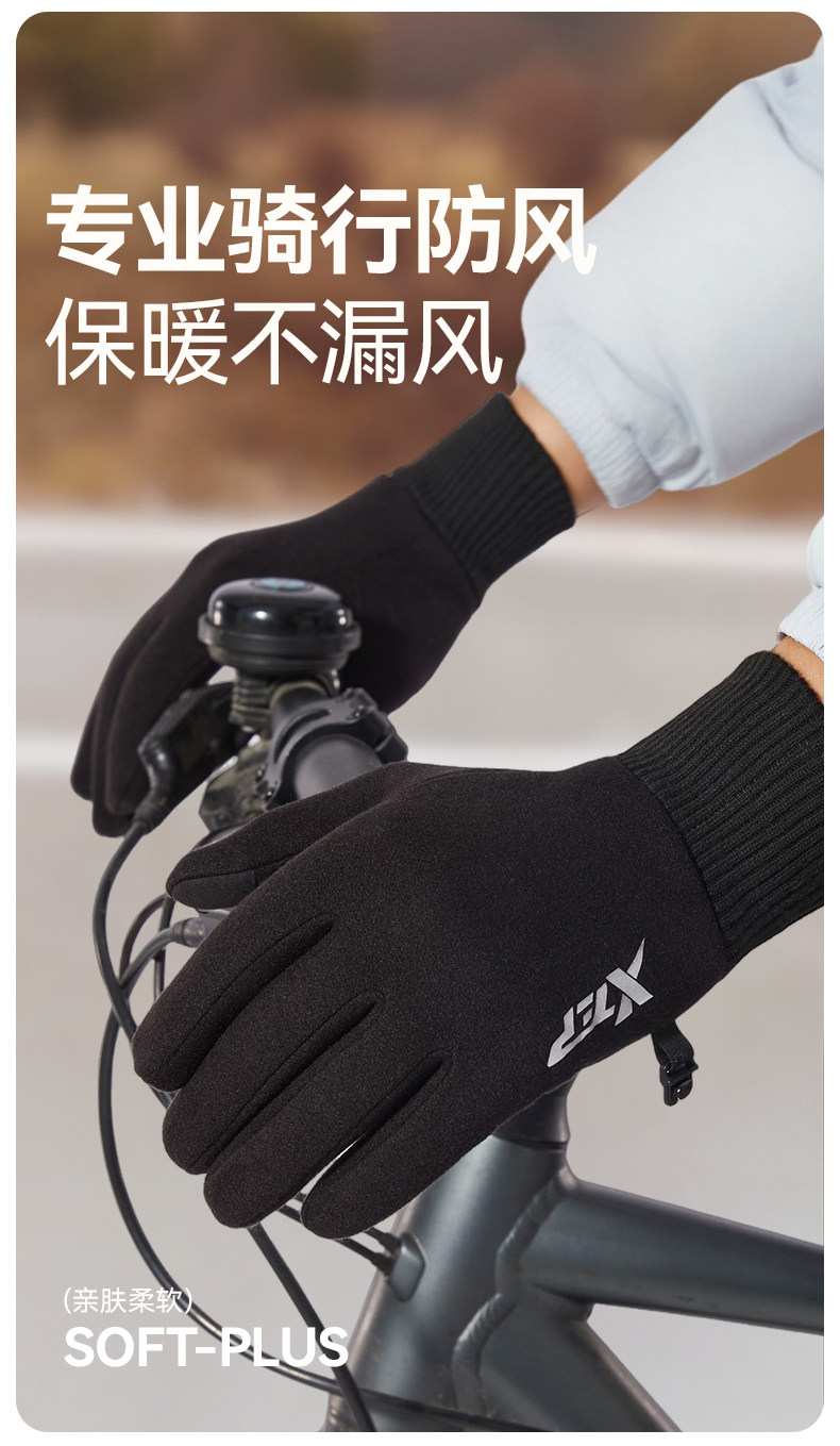 Xtep Warm Gloves for Men, Winter Cycling Fleece-Lined Motorcycle Electric Vehicle Windproof and Cold-Proof Touch Screen Cycling Gloves