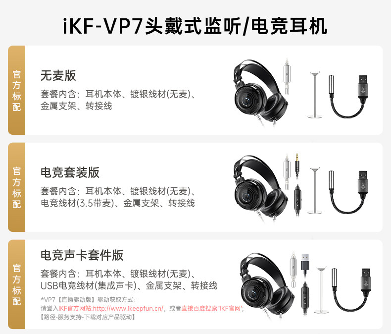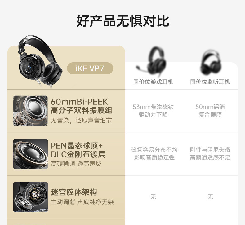Ikf Vp7 Over-Ear Large Dynamic Monitor Headphones Closed-Back High-Resolution Hifi Gaming Wired Computer