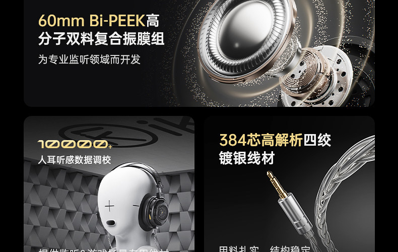 | Color Classification | Black Silver - High-Resolution Quad-Strand Silver-Plated Cable - No Microphone Version + 60mm High-Polymer Diaphragm - Lightweight and Comfortable Fit,Carbon Black - High-Resolution Quad-Strand Silver-Plated Cable - No Microphone Version + 60mm High-Polymer Diaphragm - Lightweight and Comfortable Fit,Black and Silver [Silver-Plated Wire + 3.5mm Microphone Wire] - Dual Use for Monitoring and Gaming + Multi-Device Compatibility + 60mm Polymer Diaphragm - Lightweight and Comfortable to Wear,Carbon Black [Silver-Plated Wire + 3.5mm Mic Cable] - Monitor & Gaming Grade + Multi-Device Compatible + 60mm High-Polymer Diaphragm - Lightweight & Comfortable Fit,Black Silver [Silver-Plated Wire + USB Driver with Microphone Cable] - Monitor & Gaming All-Scene + Hi-Fi High-Resolution Sound + 60mm High-Polymer Diaphragm - Lightweight & Comfortable Fit,Carbon Black [Silver-Plated Wire + USB Driver with Microphone] - Monitor & Gaming All-Scene + Hi-Fi High-Resolution Audio + 60mm High-Polymer Diaphragm - Lightweight & Comfortable Fit,Black and Silver [Kna Sound Card Co-Branded Listening Set Version] - Monitoring & Gaming Full Scene Upgrade + Hifi High-Resolution Loud Speaker + 60mm Polymer Diaphragm - Lightweight and Comfortable to Wear,Carbon Black [Kna Sound Card Co-Branded Listening Set Edition] - Upgrade for All Monitoring and Gaming Scenes + Hifi High-Resolution Loud Speaker + 60mm Polymer Diaphragm - Lightweight and Comfortable to Wear,Totem Edition [Kna Sound Card Co-Branded Listening Set Edition] - Upgraded Monitoring & Gaming Full Scene + Hifi High-Resolution Loud Speaker + 60mm Polymer Diaphragm - Lightweight and Comfortable to Wear |