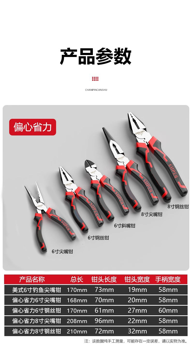 Needle-Nose Pliers 6inch 8inch Multi-Functional Electrician's Pliers Hardware Needle-Nose Pliers Sharp-Nose Pliers Household Pliers