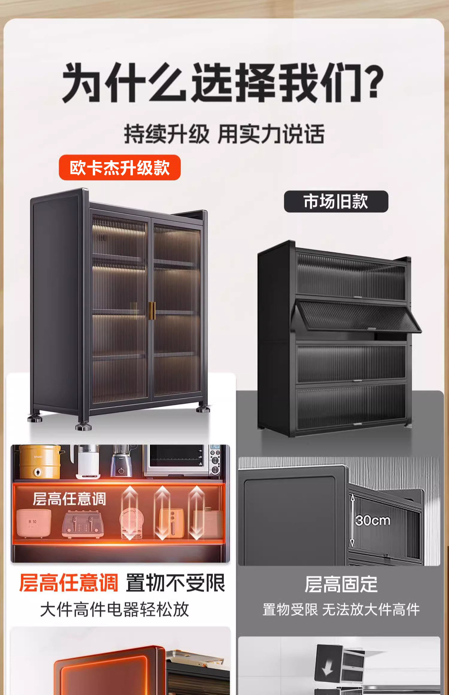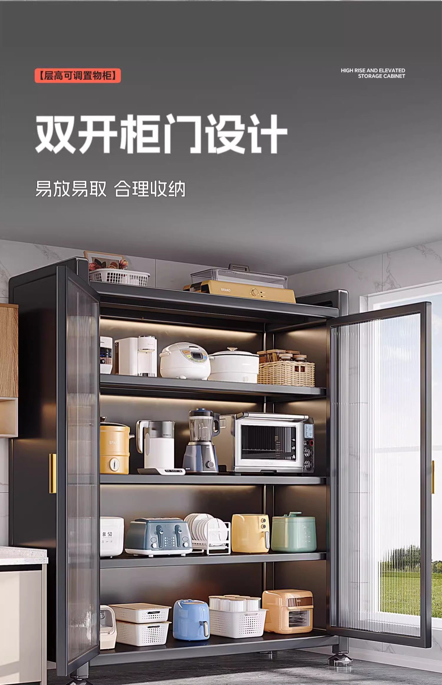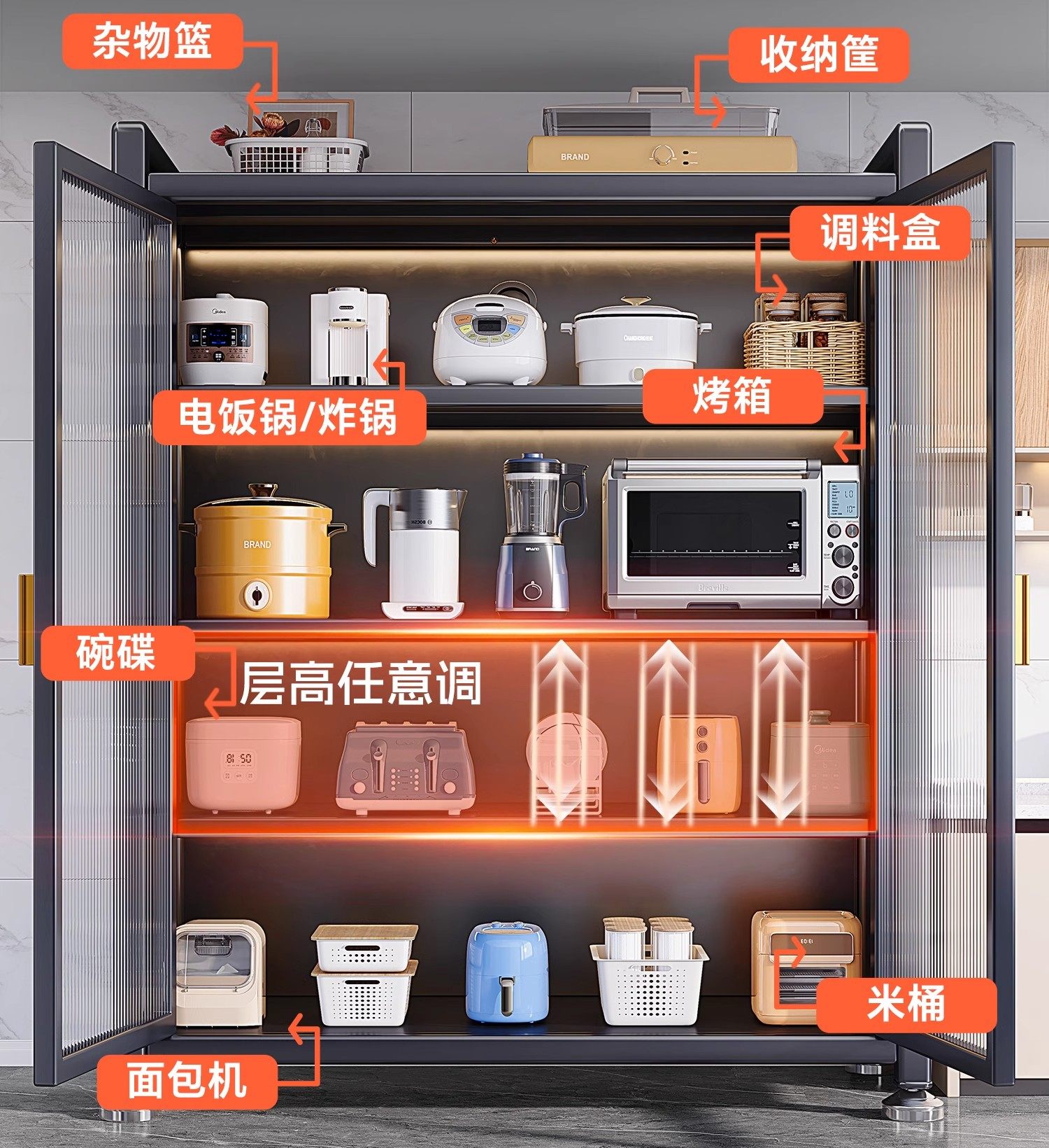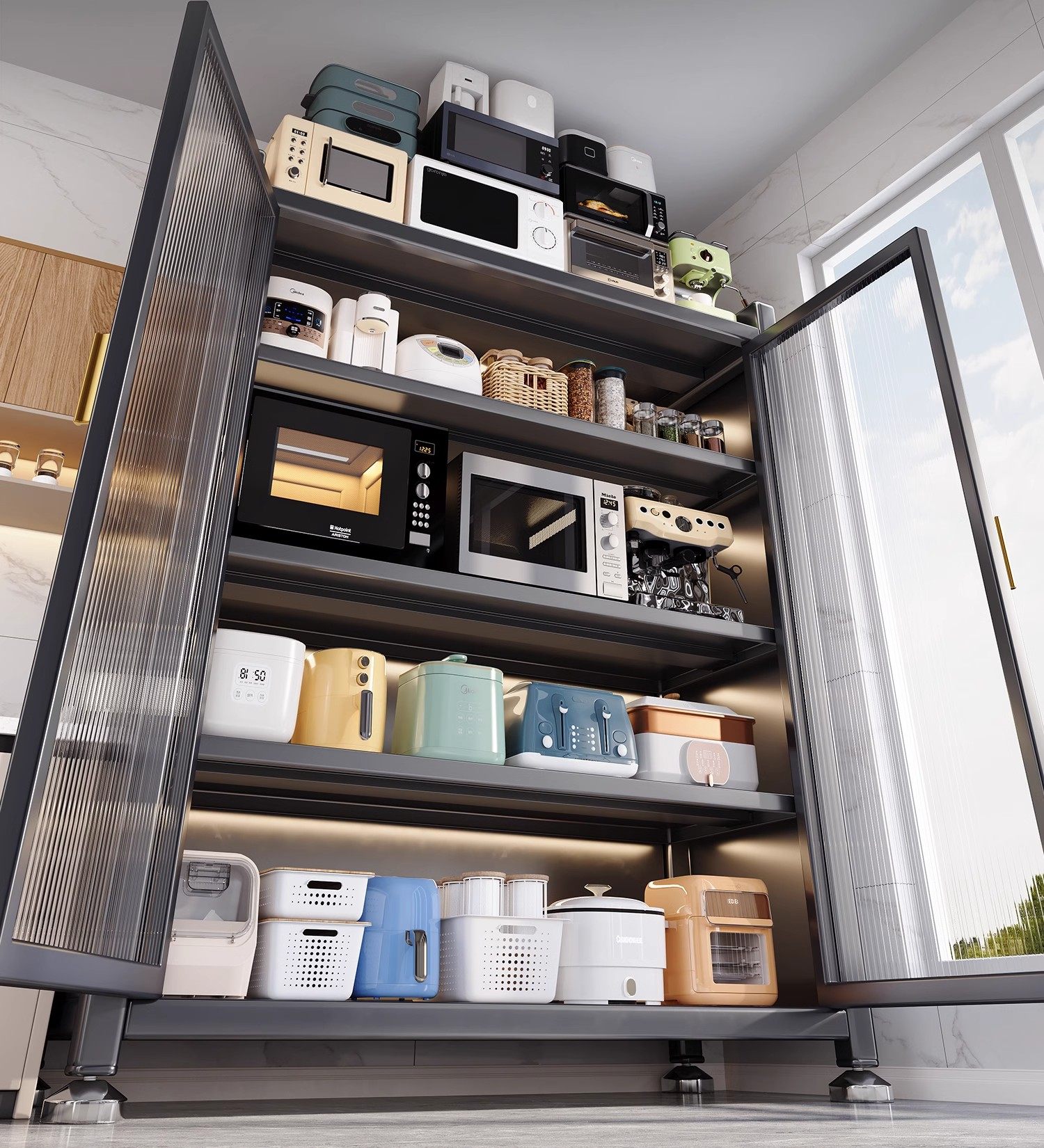 Kitchen Thickened Storage Rack, Floor-Standing Multi-Layer Microwave Oven, Household Cupboard, Storage Cabinet, Multi-Functional Storage Cabinet, Cupboard
