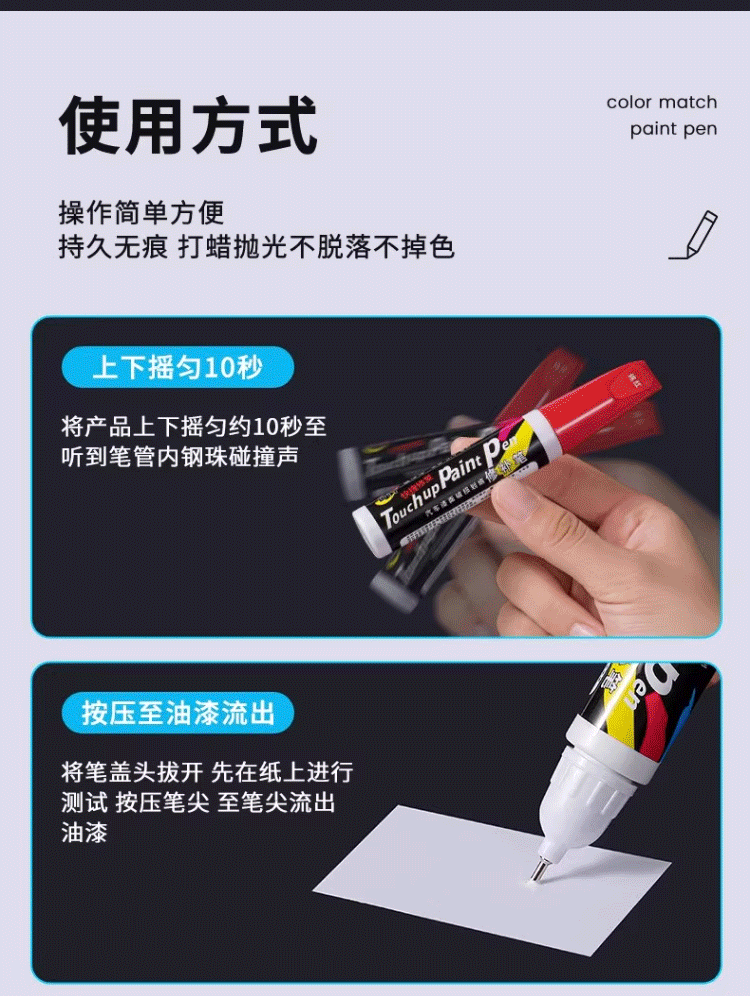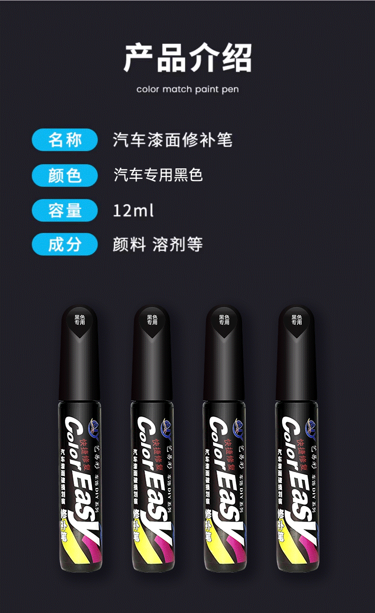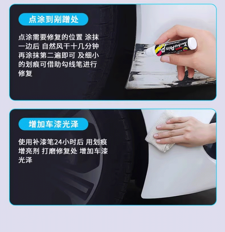 | Color Classification | [Special for Black Cars] Touch-Up Pen*1,[Special for Black Cars] Touch-Up Pen*2,[Special for Black Cars] Touch-Up Pen*1+Black Plastic Parts Renovation Agent*1 Free Sponge Wipe,[Special for Black Cars] Touch-Up Pen*1+Black Scratch Wax*1, Free Sponge and Towel,[Special for White Cars] Touch-Up Pen*1,[Special for White Cars] Touch-Up Pen*2,[Special for White Cars] Touch-Up Pen*1+Black Plastic Parts Renovation Agent*1 Free Sponge Wipe,【For White Cars Only】Touch-Up Paint Pen *1 + White Scratch Repair Wax *1. Includes Sponge Applicator and Cleaning Towel |