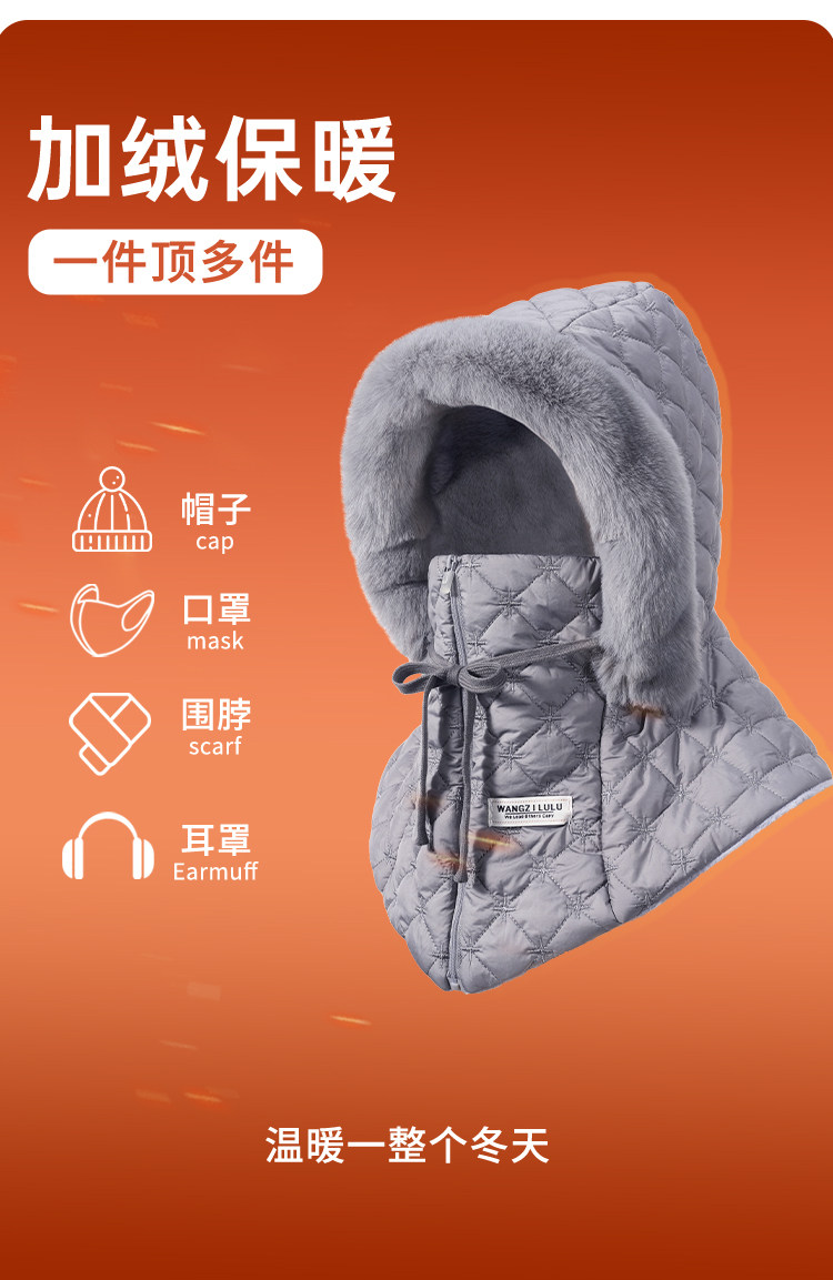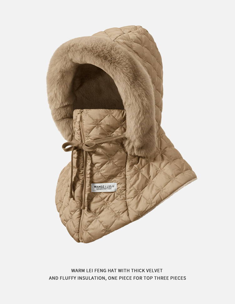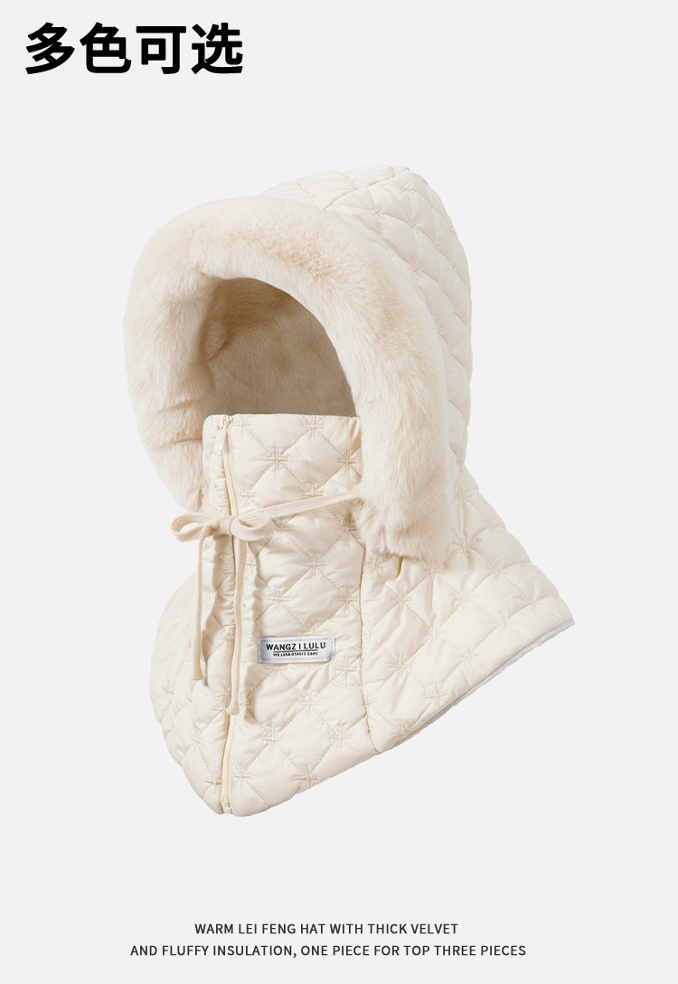 Women's Winter Hat 2025 Windproof Face Mask Hood Cycling Fleece-Lined Thick Warm Cold-Proof Winter Hat Men's Lei Feng Hat