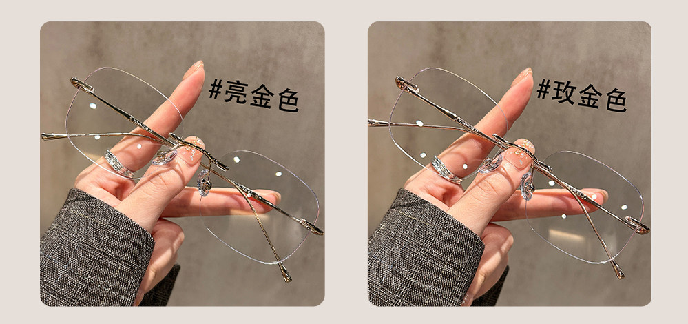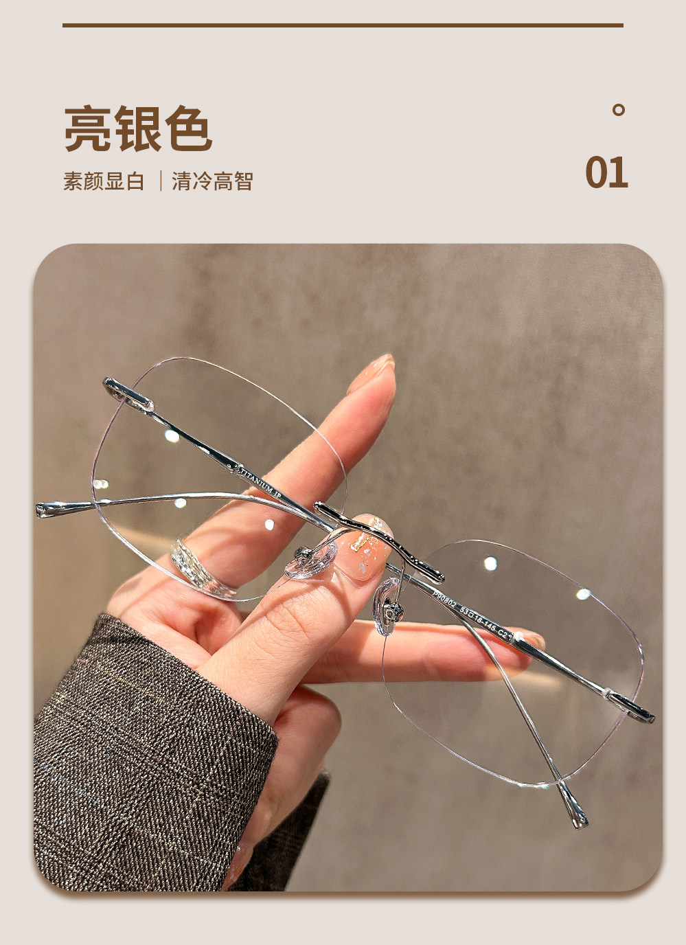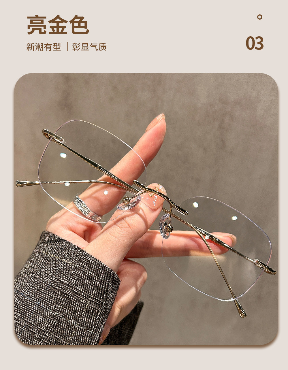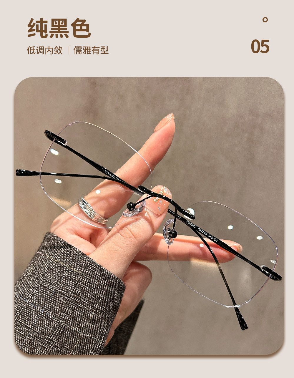 Allow Me to Shine: Zhao Lusi's Same Style Rimless Glasses for Women, Suitable for Prescription Lenses, Ultra-Light Titanium Frame, Anti-Blue Light Eyeglass Frame