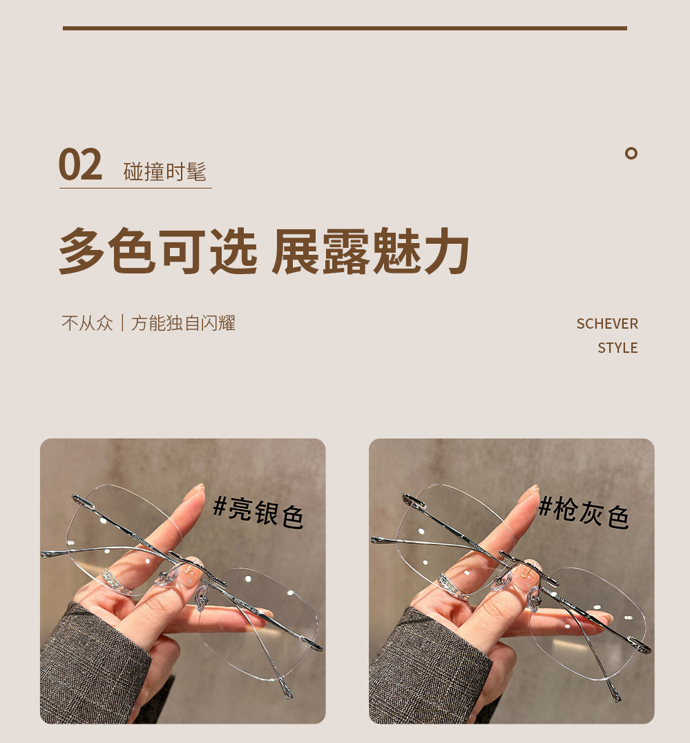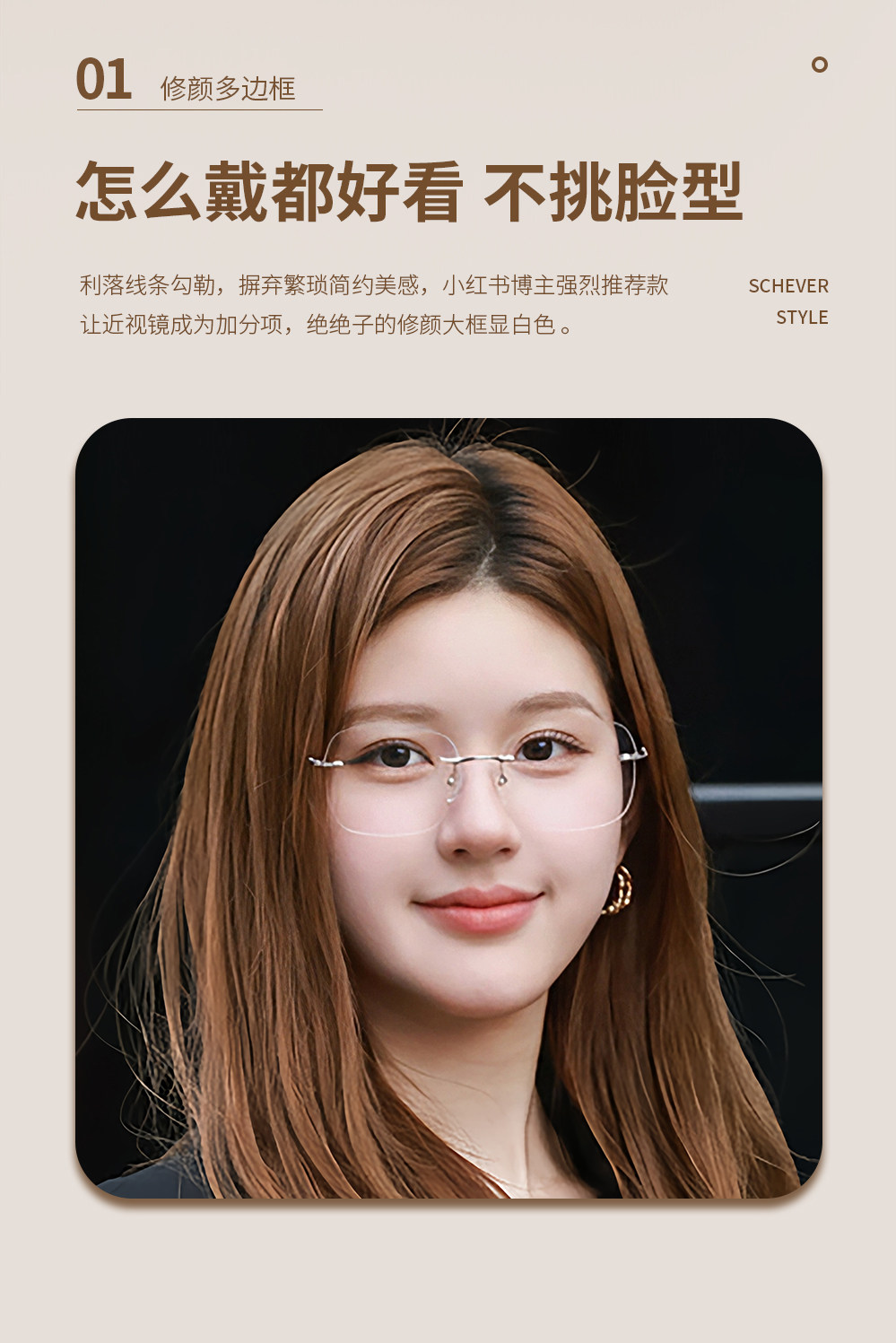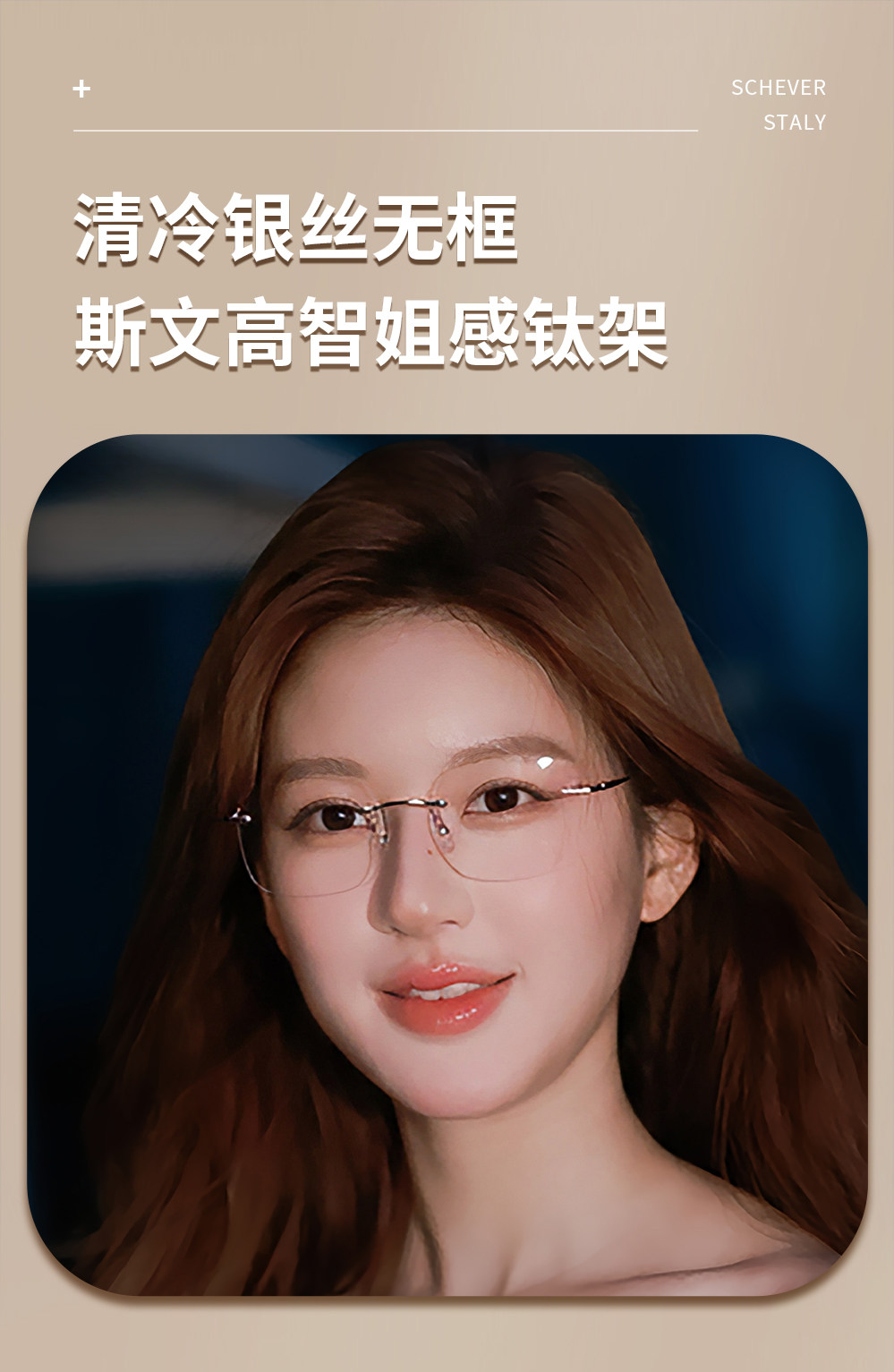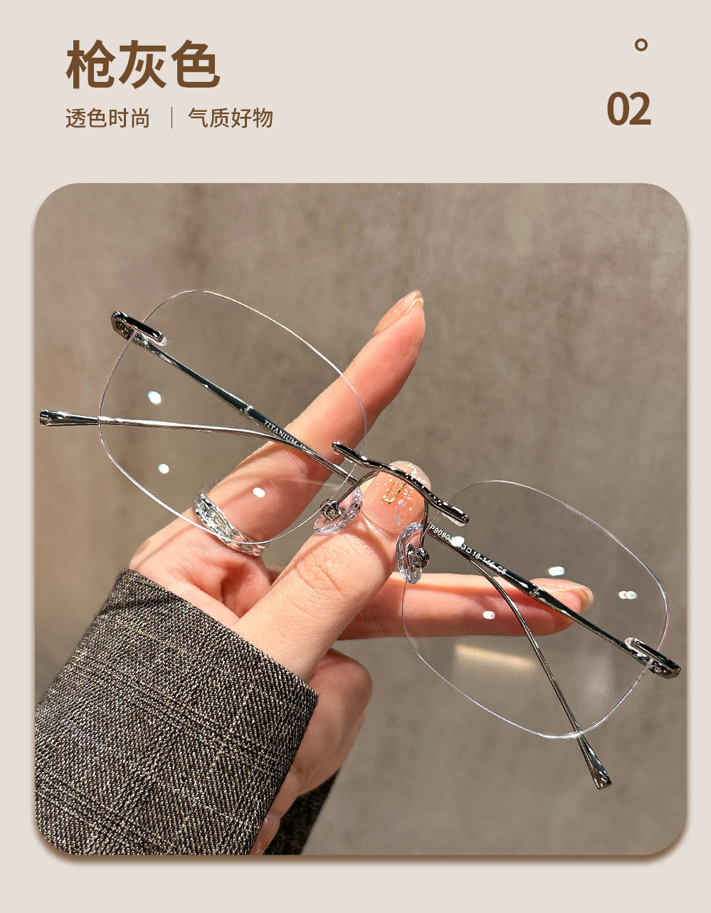Allow Me to Shine: Zhao Lusi's Same Style Rimless Glasses for Women, Suitable for Prescription Lenses, Ultra-Light Titanium Frame, Anti-Blue Light Eyeglass Frame