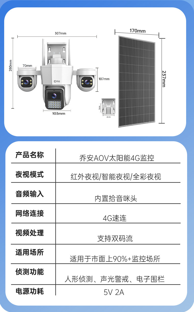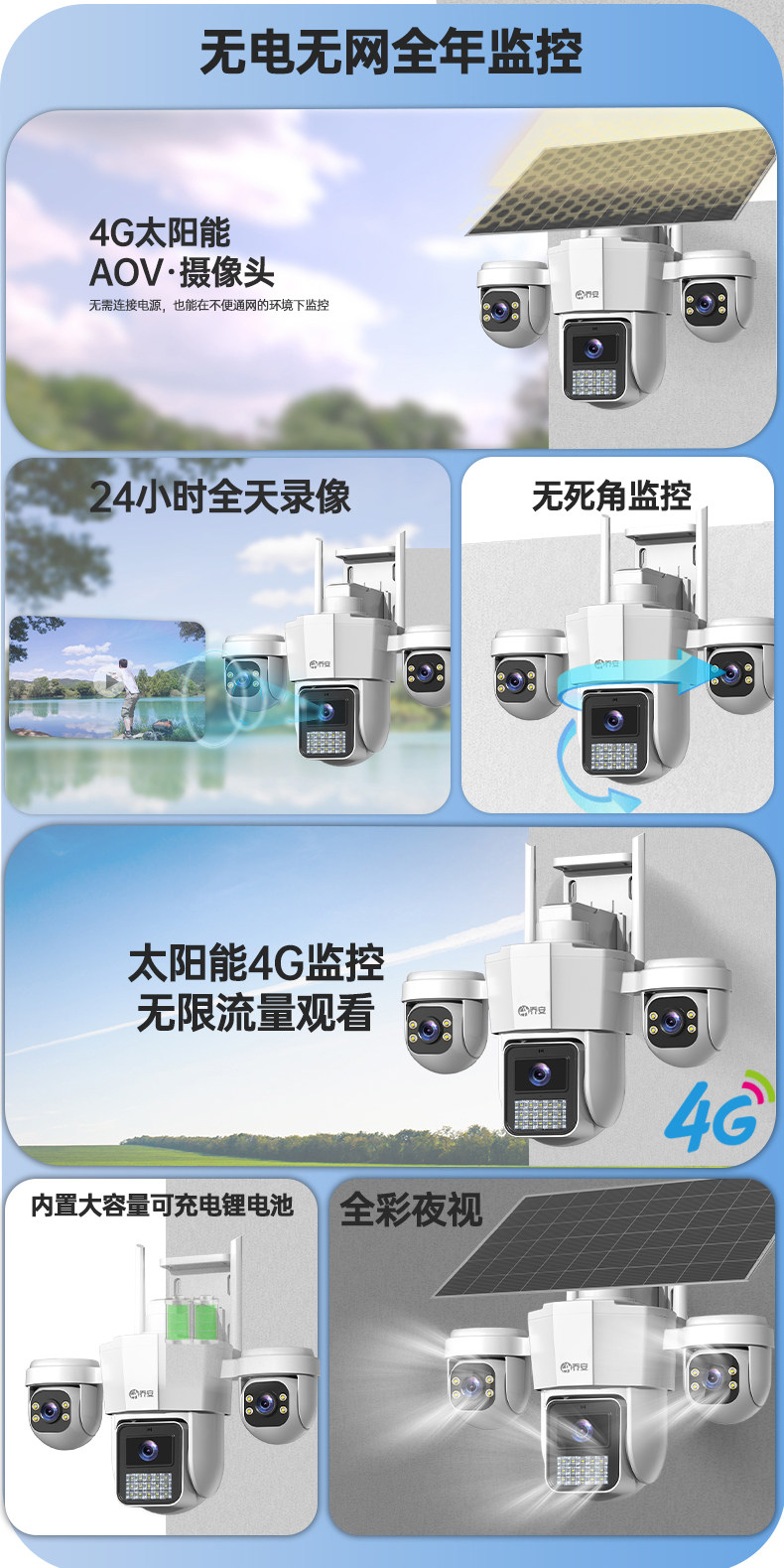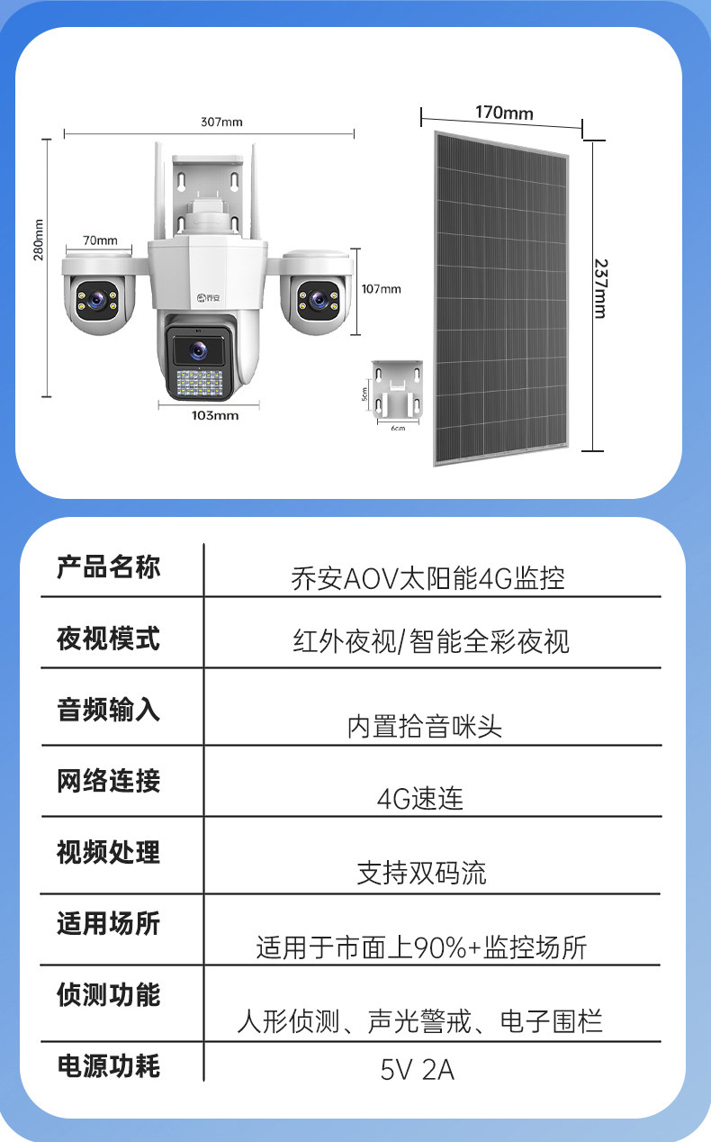 Qiaoan Aov Solar-Powered Surveillance High-Definition Outdoor 4g No-Electricity No-Internet Camera 360-Degree No Blind Spots Mobile Remote