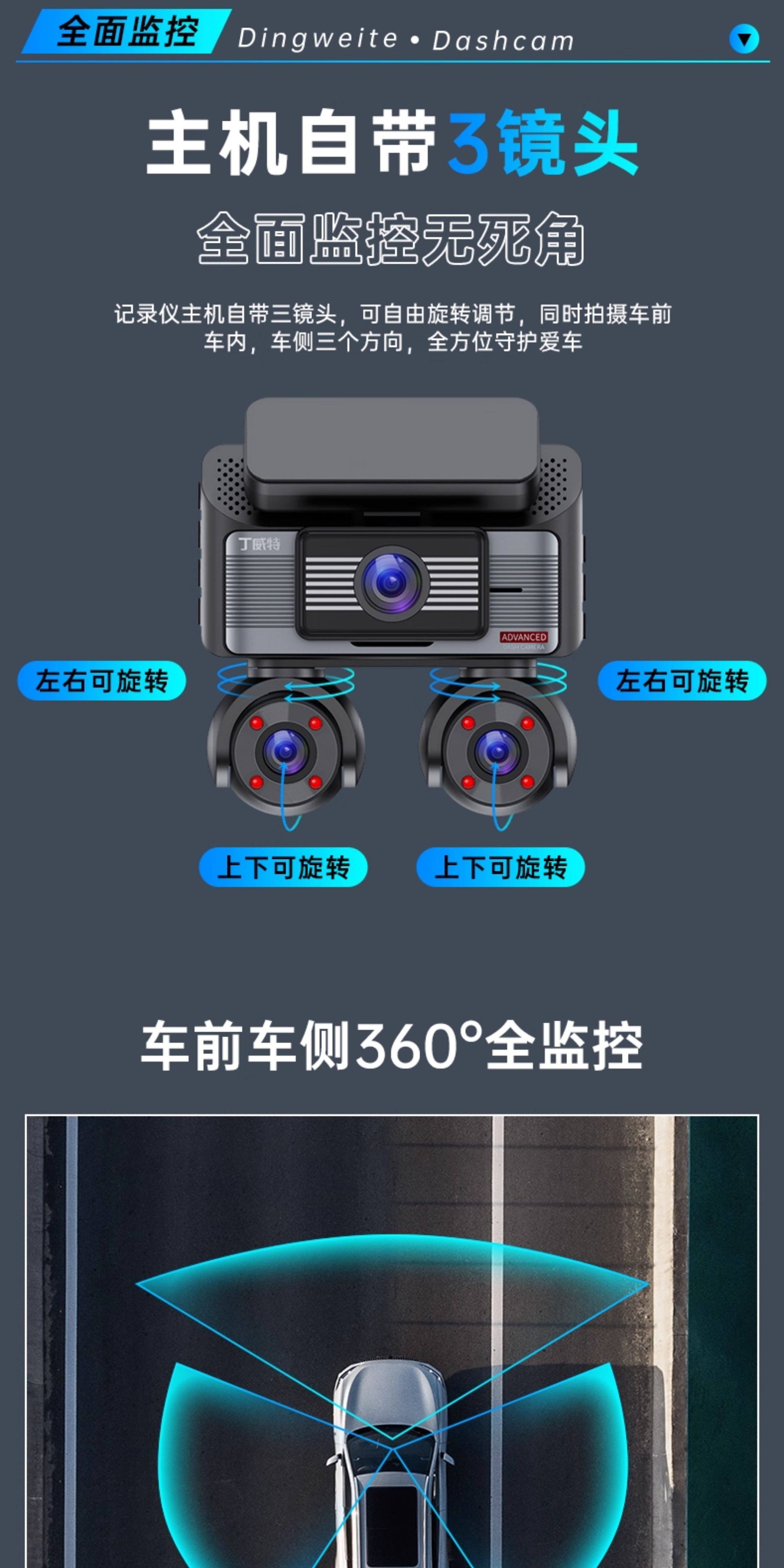 Dingweite 360-Degree Panoramic Driving Recorder Car-Mounted High-Definition 2026 New Model High-Definition Parking Monitoring