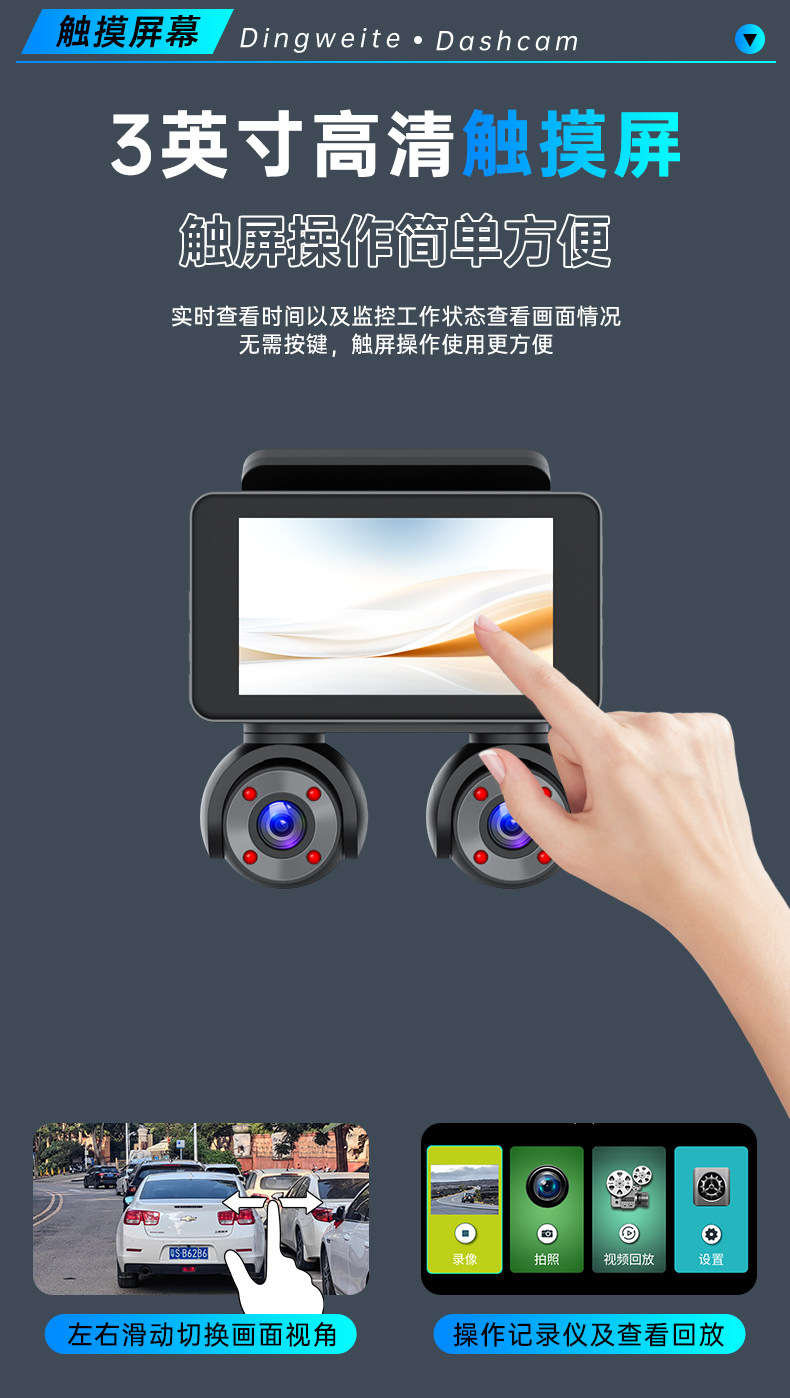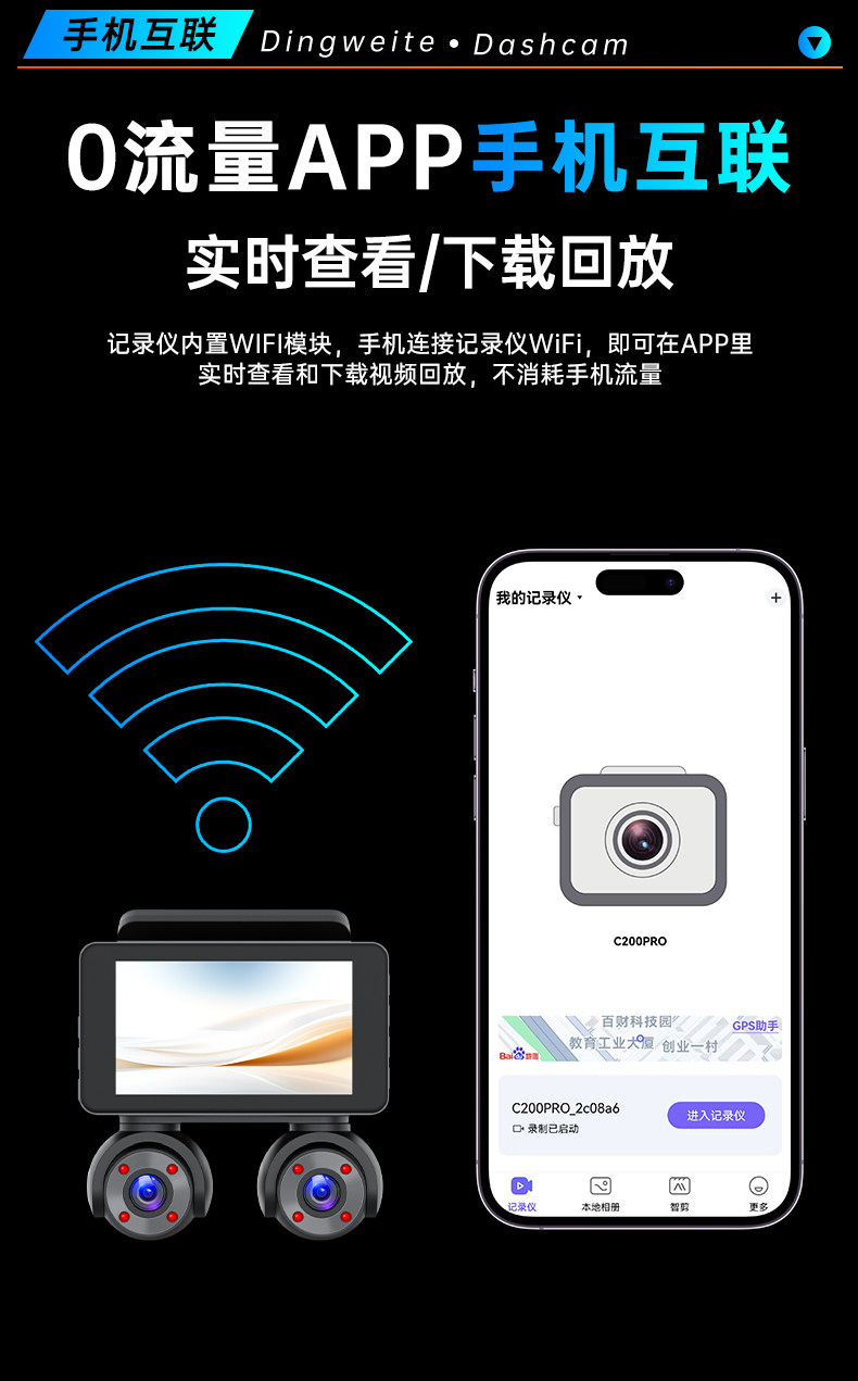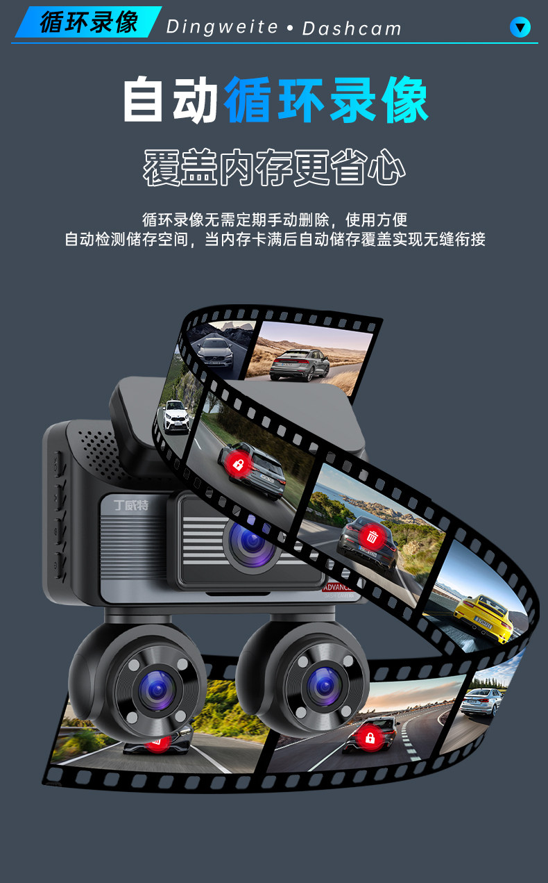 | Function | Enhanced Night Vision,Loop Recording,Reversing Image,Positioning,Night Vision Fill Light,Motion Detection,Parking Monitoring,Before and after Recording,Short Video Sharing,Collision Sensing |