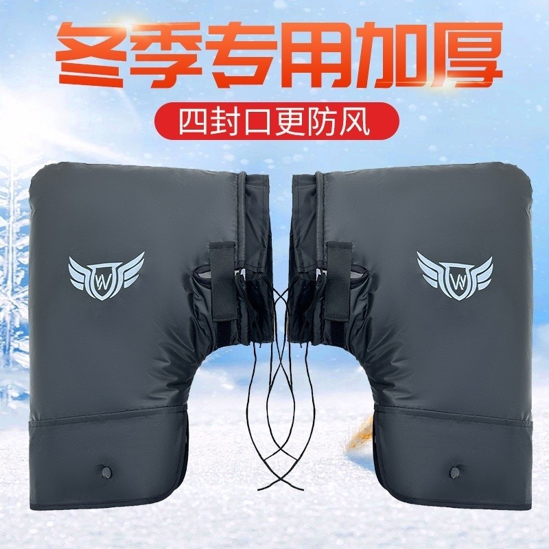 Electric Scooter Handlebar Covers, Winter Fleece-Lined, Thickened, Fully Enclosed, Waterproof, Windproof, Battery Scooter Handguards, Cotton Gloves, Warm
