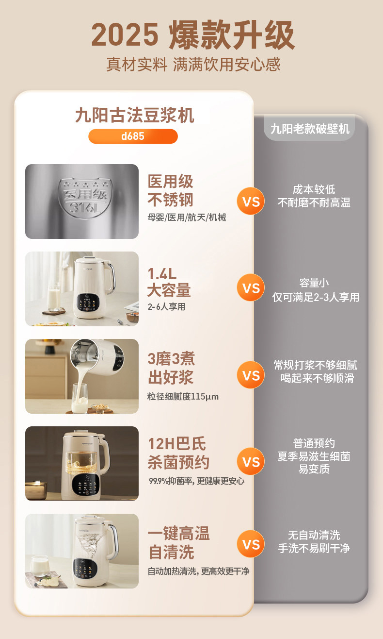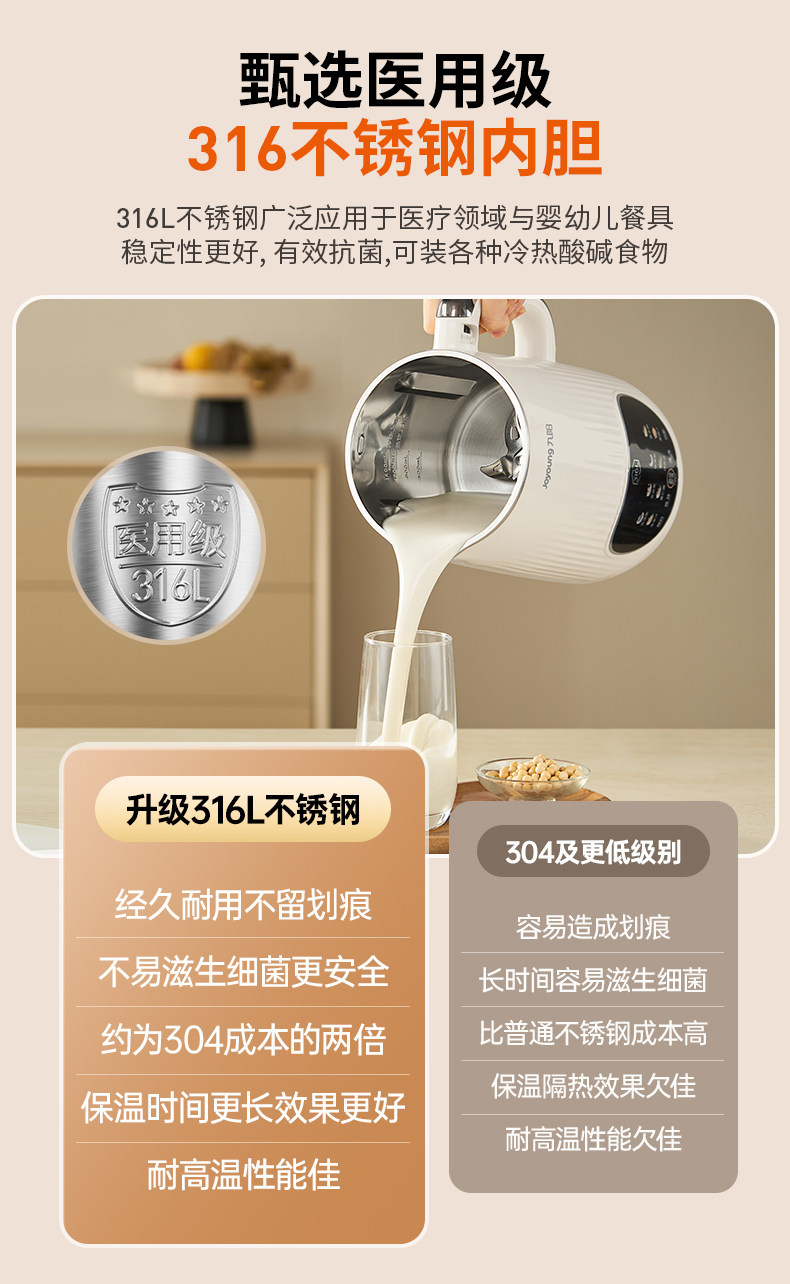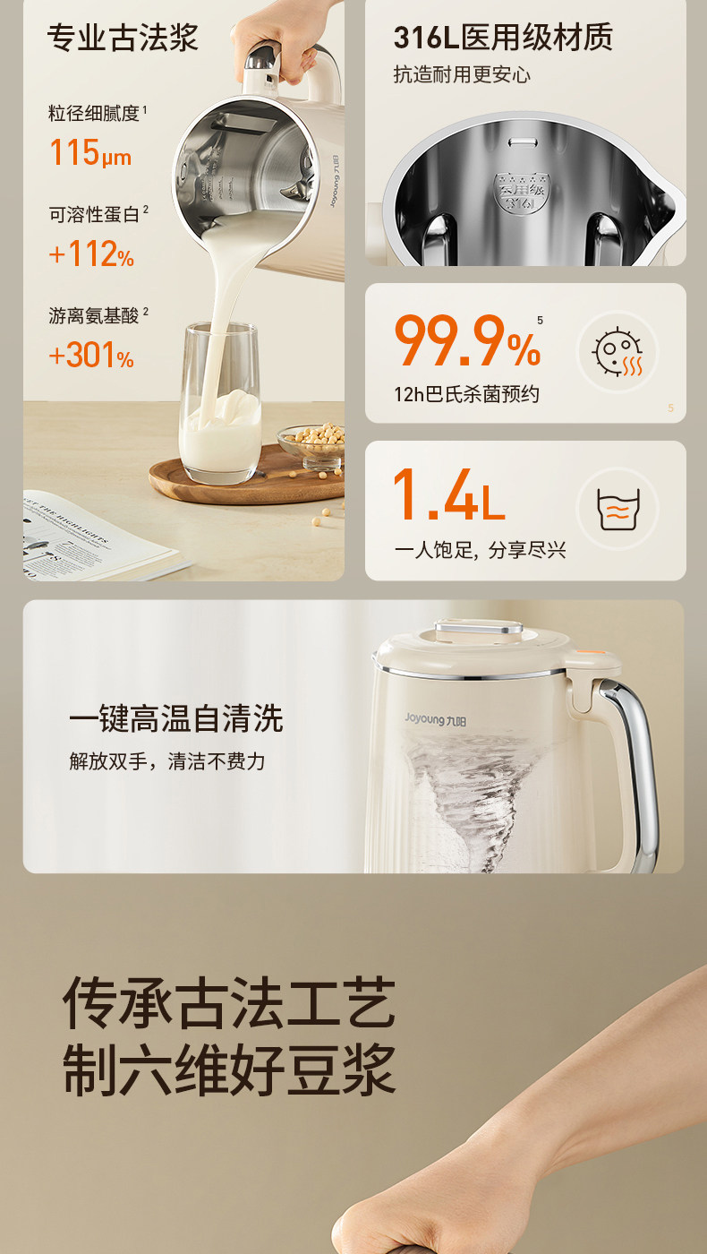 Joyoung Soy Milk Maker for Home Use, No Hand Washing Required, Quiet, Large Capacity, 2025 New Model, Blender Official official store Genuine Product