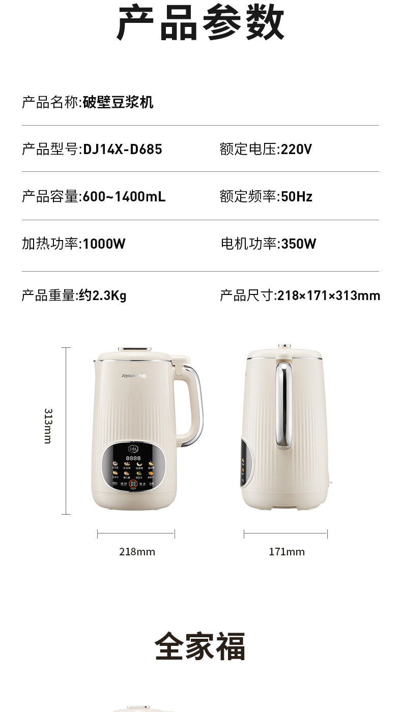 | Joyoung Soybean Milk Maker Model | DJ14X-D685 |