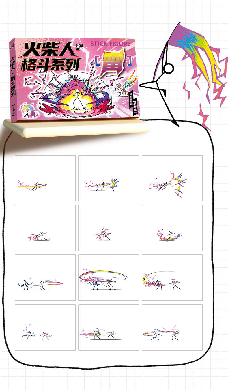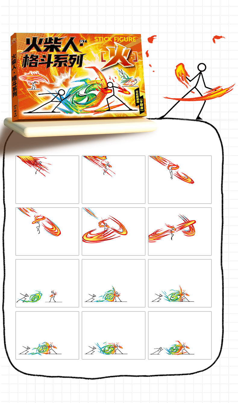 Matchstick Figure Fighting Flip Book Comic Strip Cartoon Line Drawing Children's Pen Control Learning Drawing Tutorial Book Simple Drawing Sketchbook Boys' Hand-Drawn Tracing Book Kindergarten Special Coloring Drawing Book