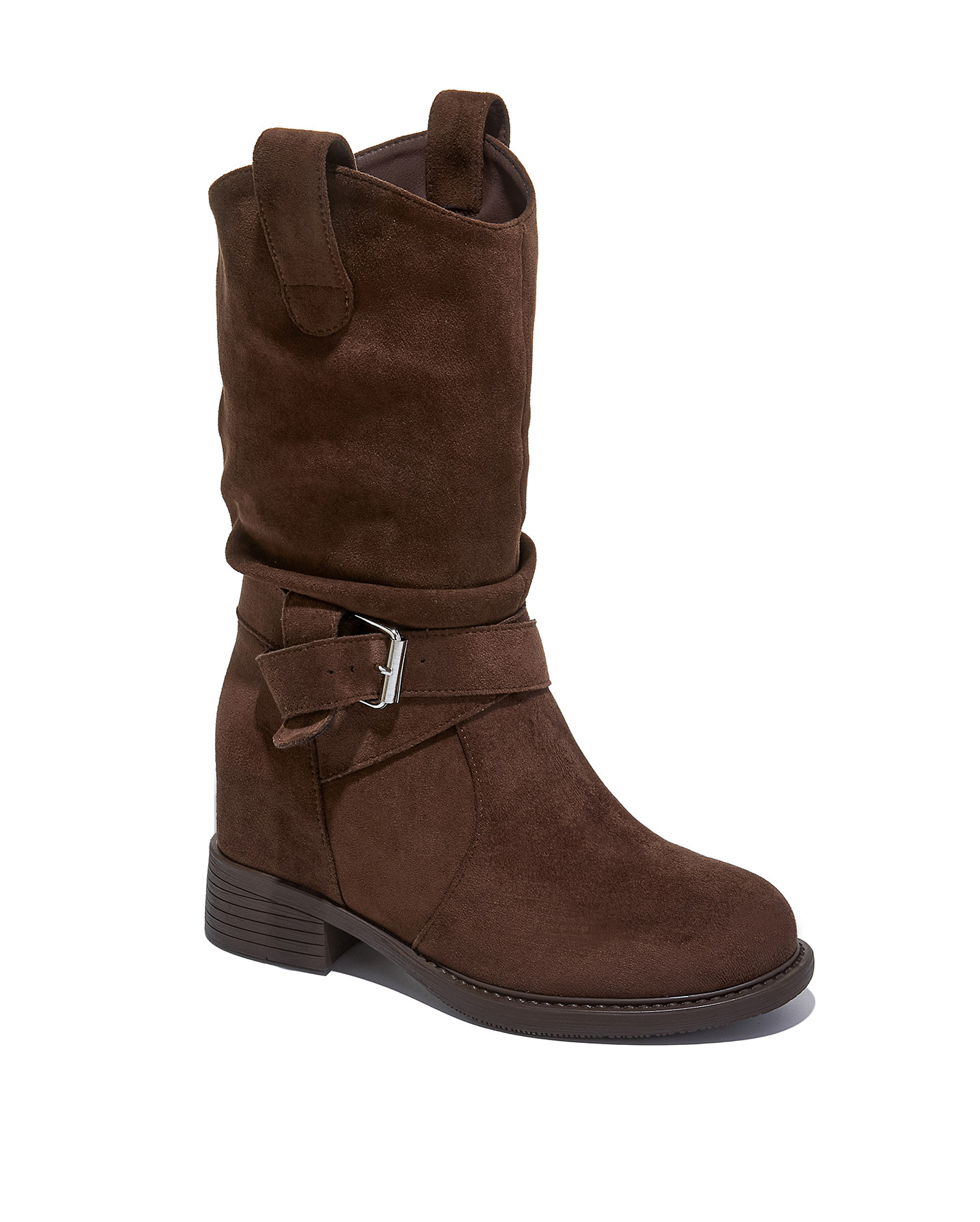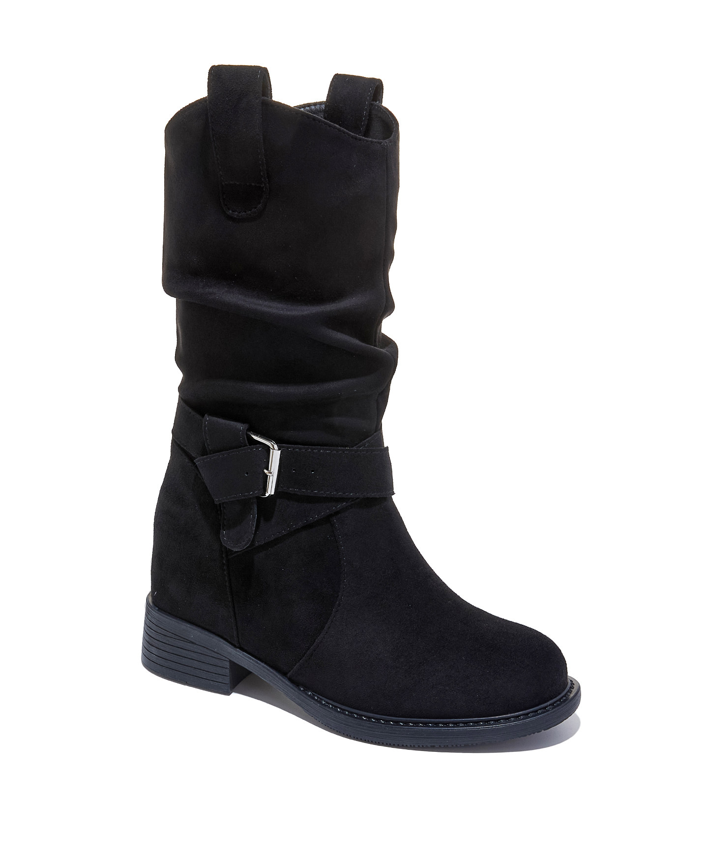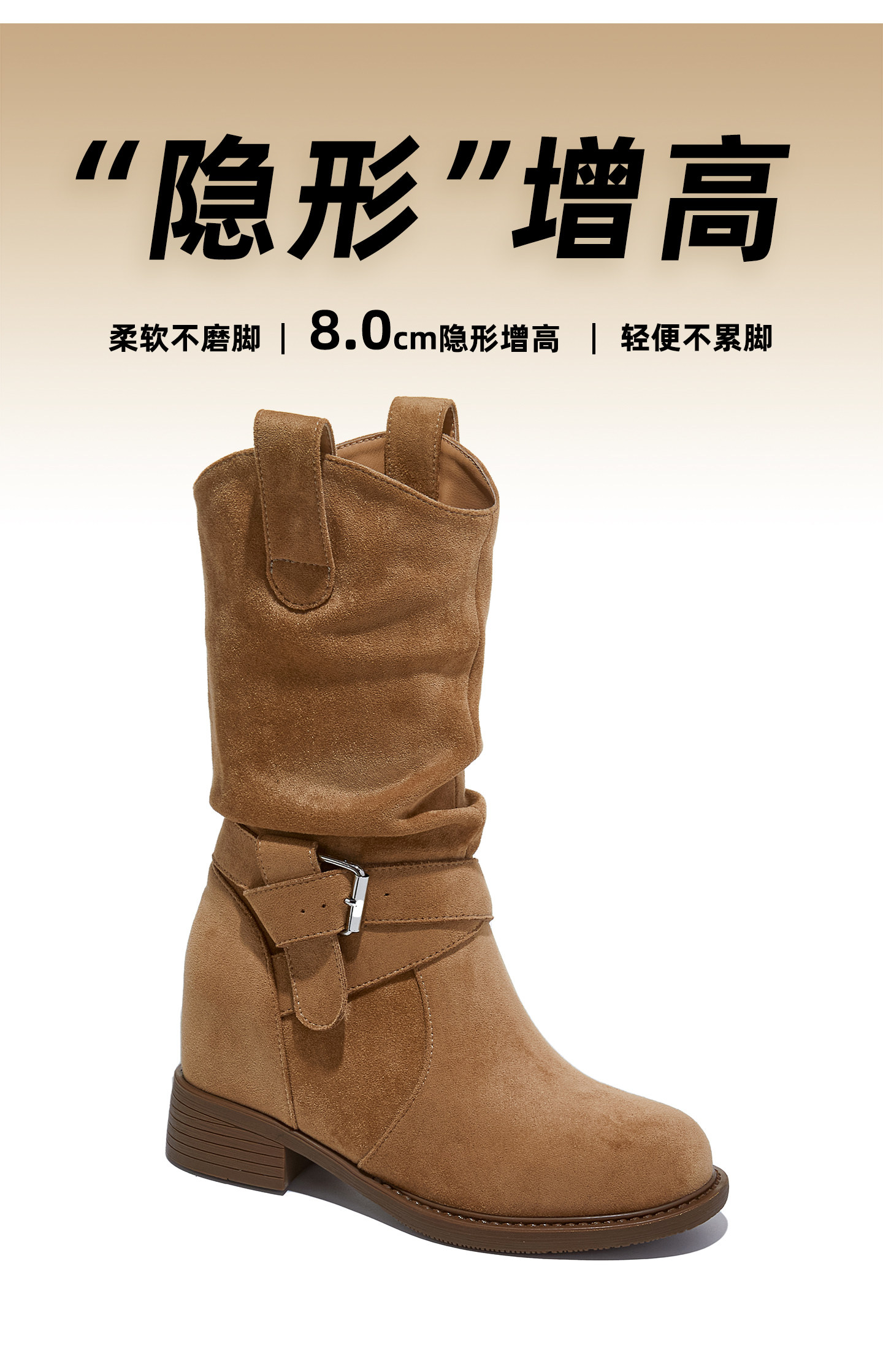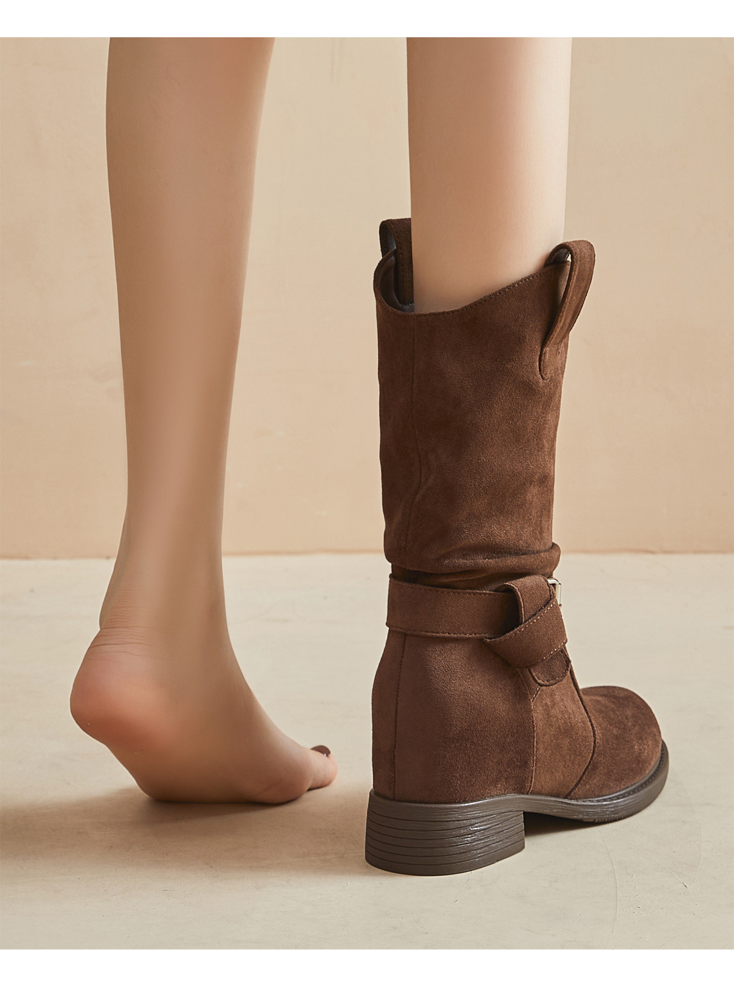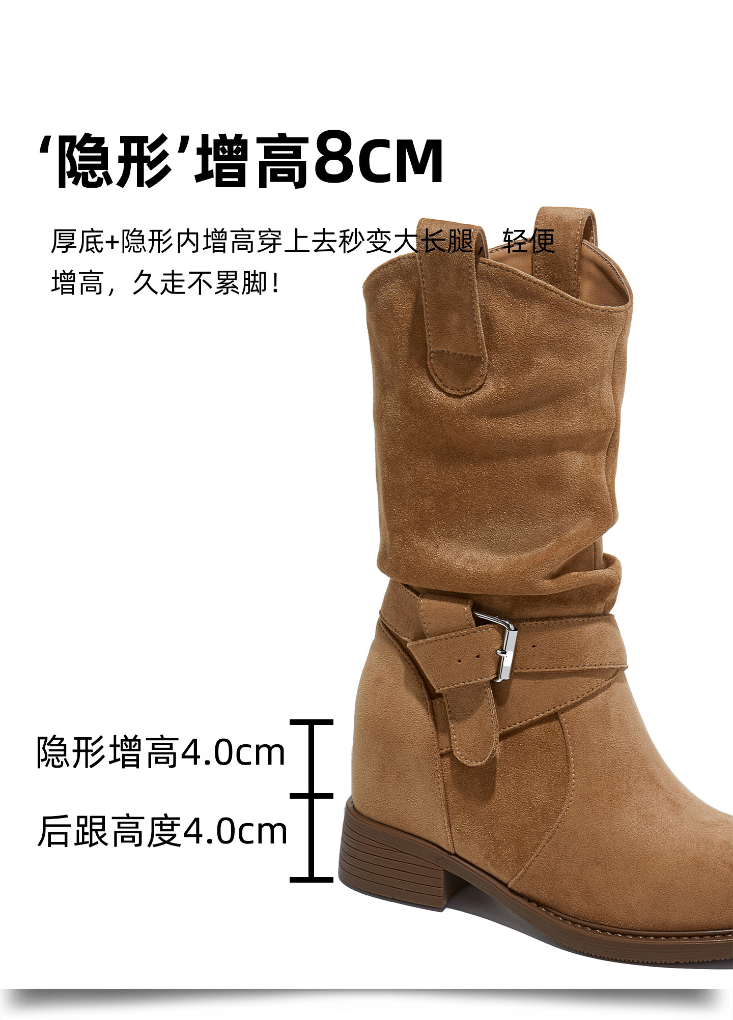 British Style Martin Boots for Women 2025 Autumn and Winter New Mid-Calf Suede Slouch Boots 8cm Thick-Soled Height-Increasing Women's Boots